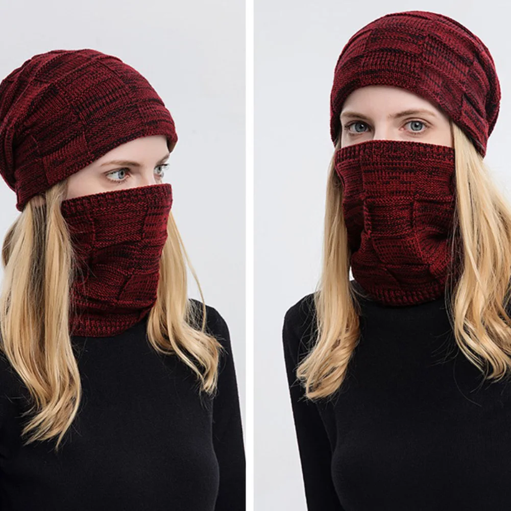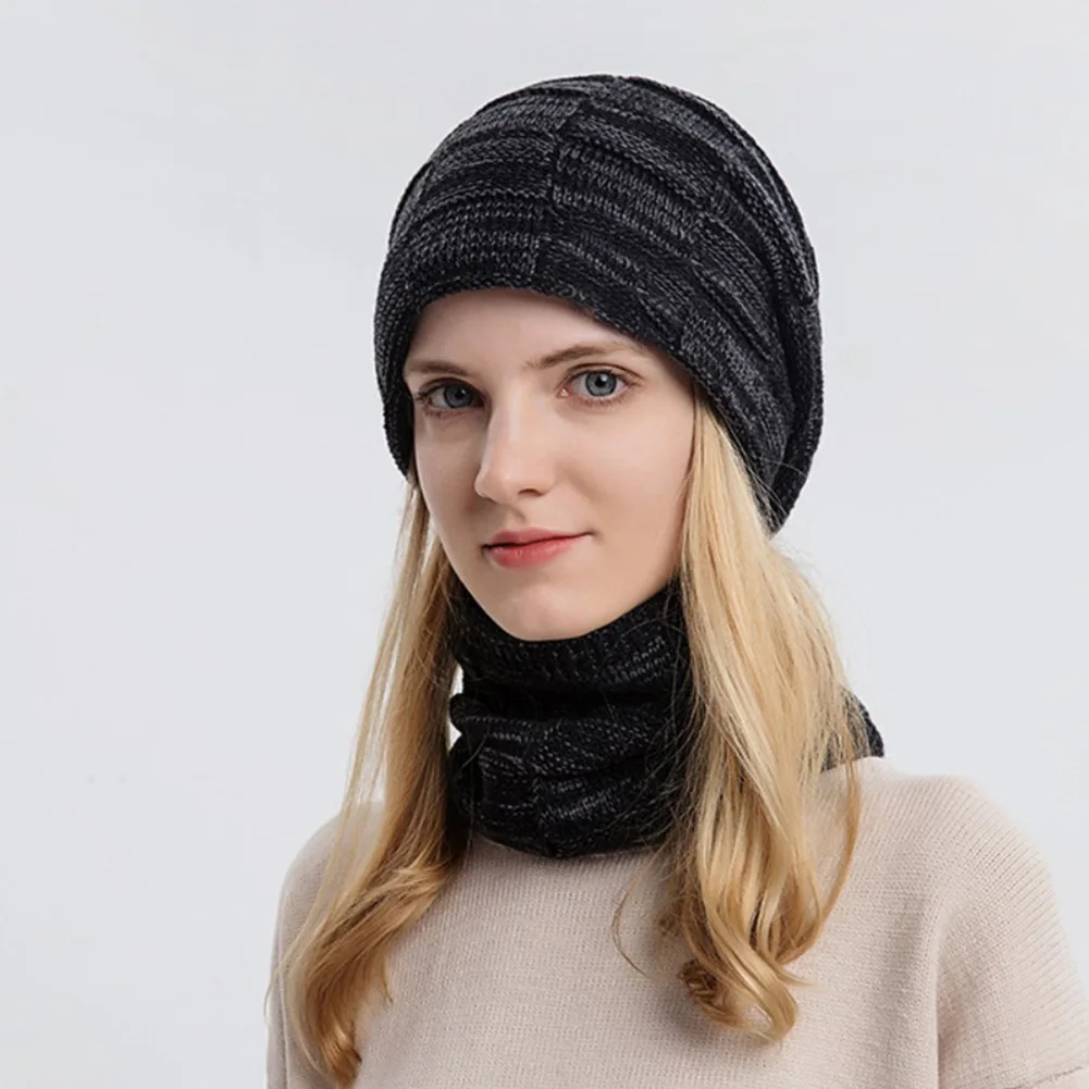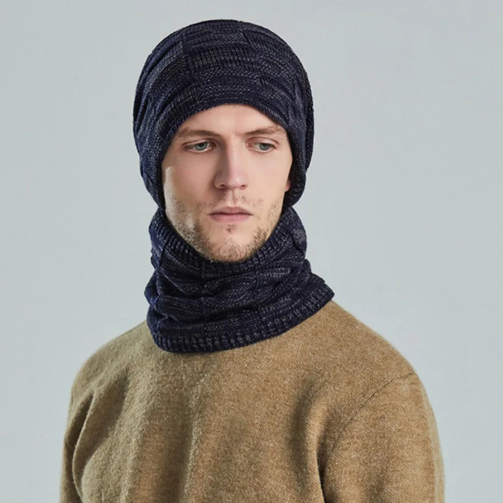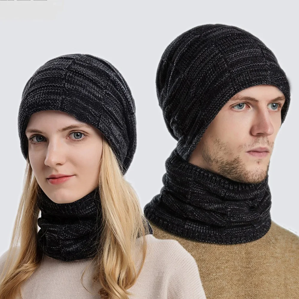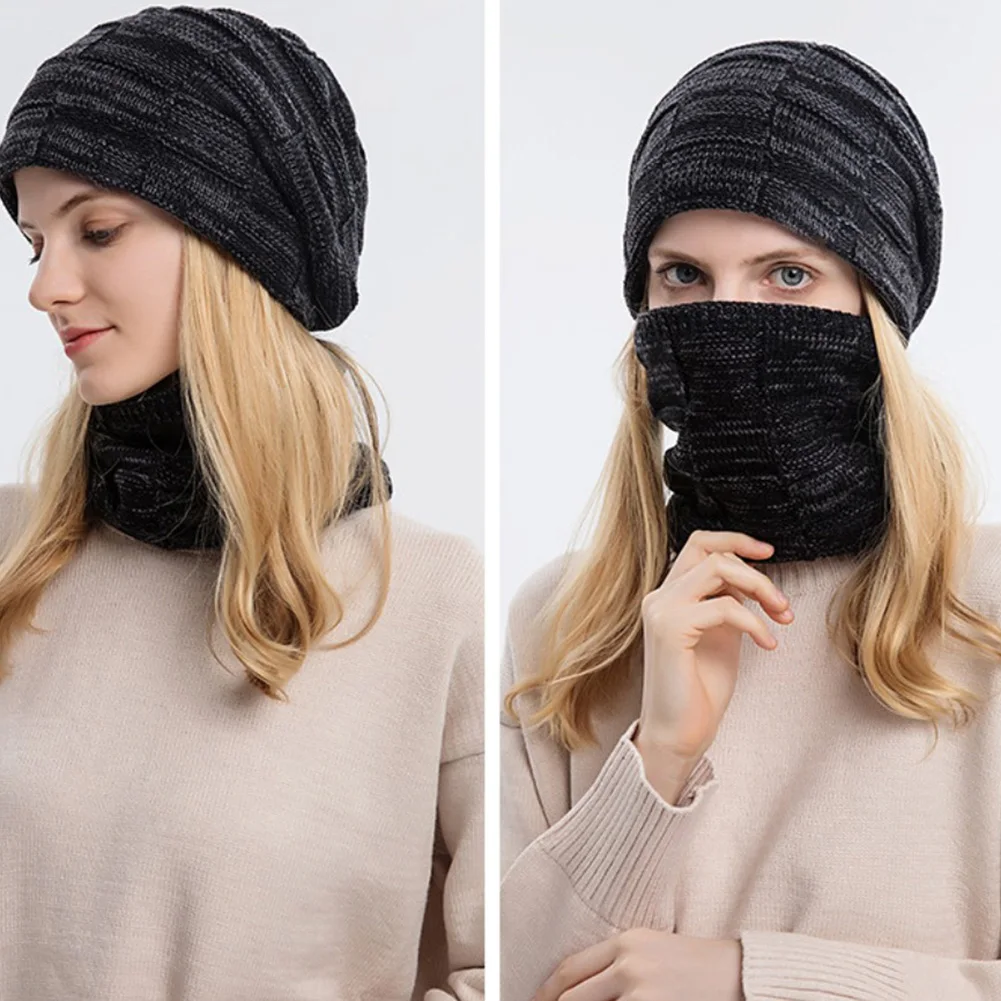 Зимний комплект из 2 предметов: шапка и шарф для мужчин и женщин, Вязаная Шапка-бини, шейный шарф, зимний теплый однотонный комплект с воротником в виде черепа, аксессуары