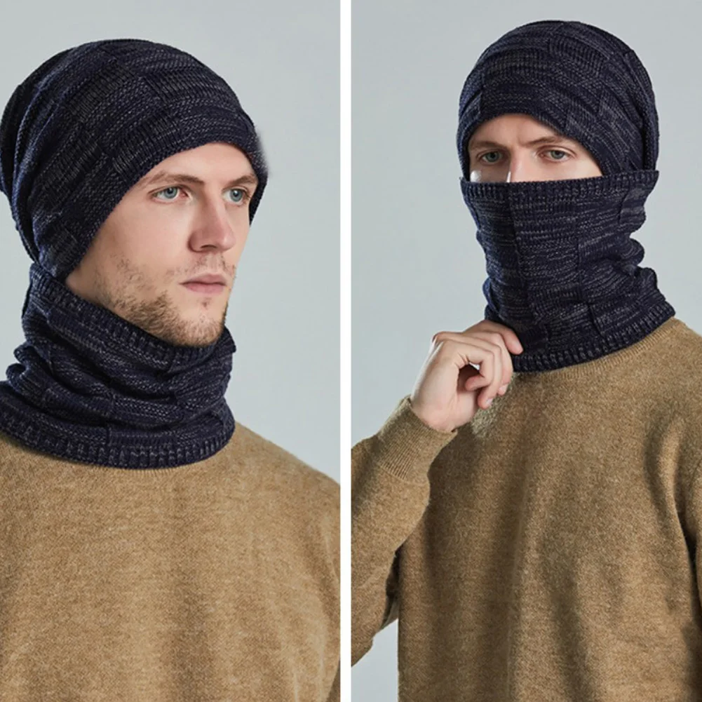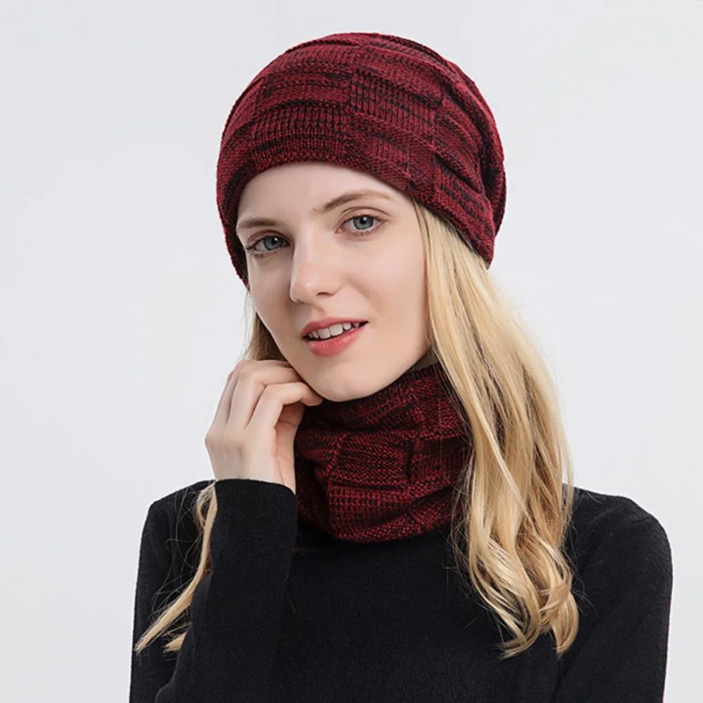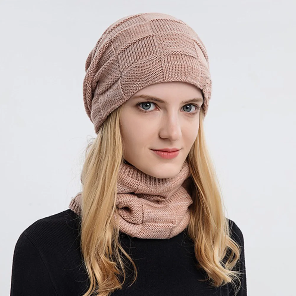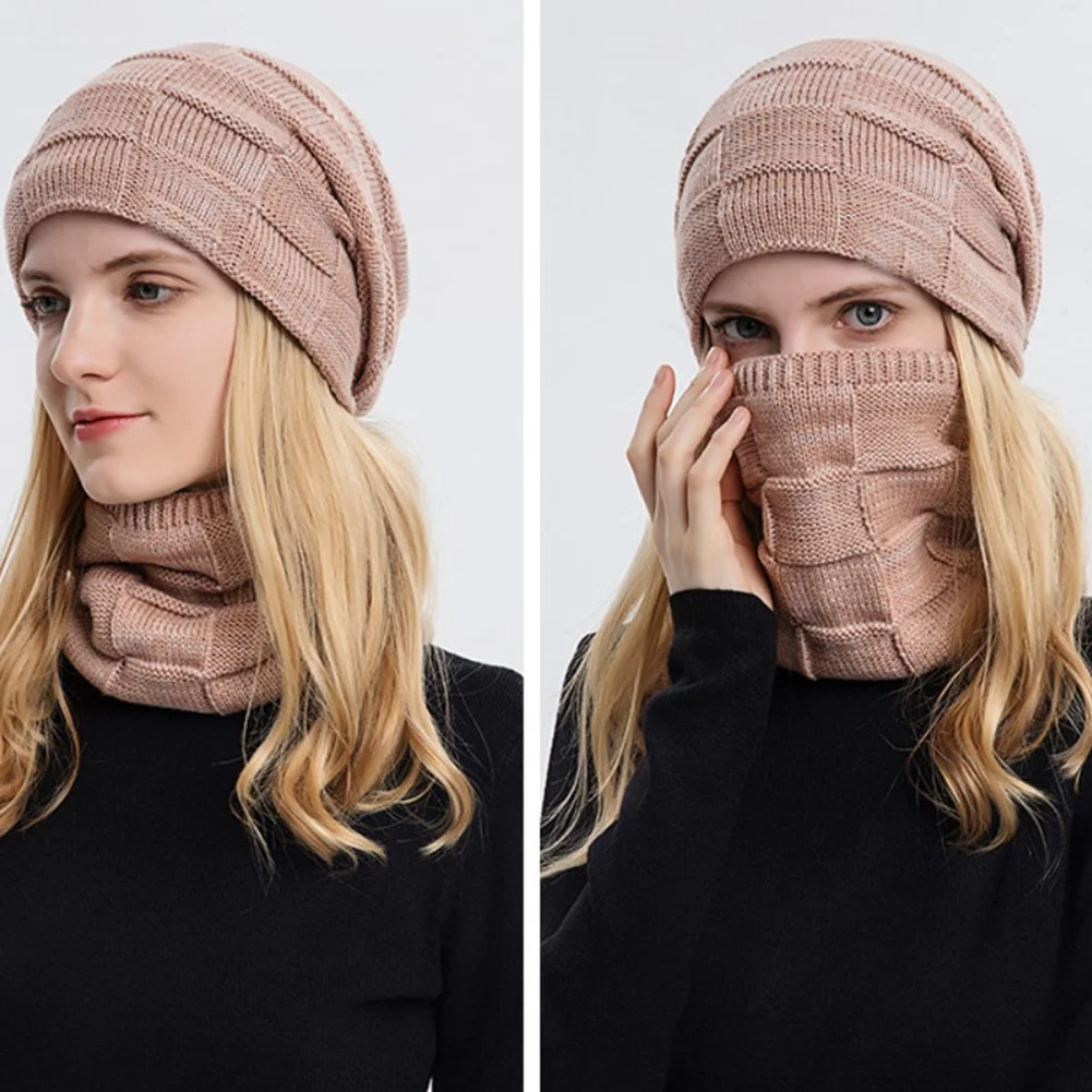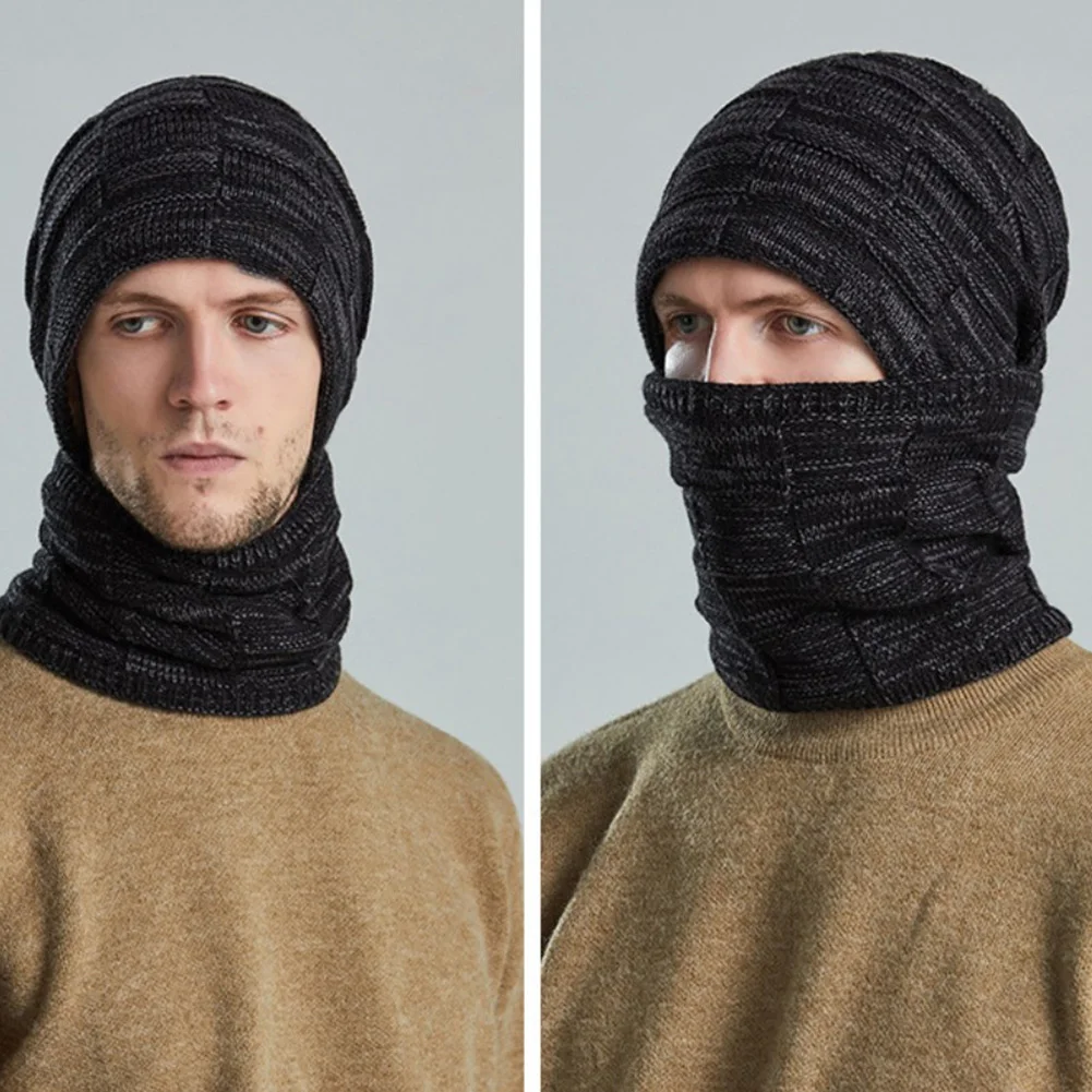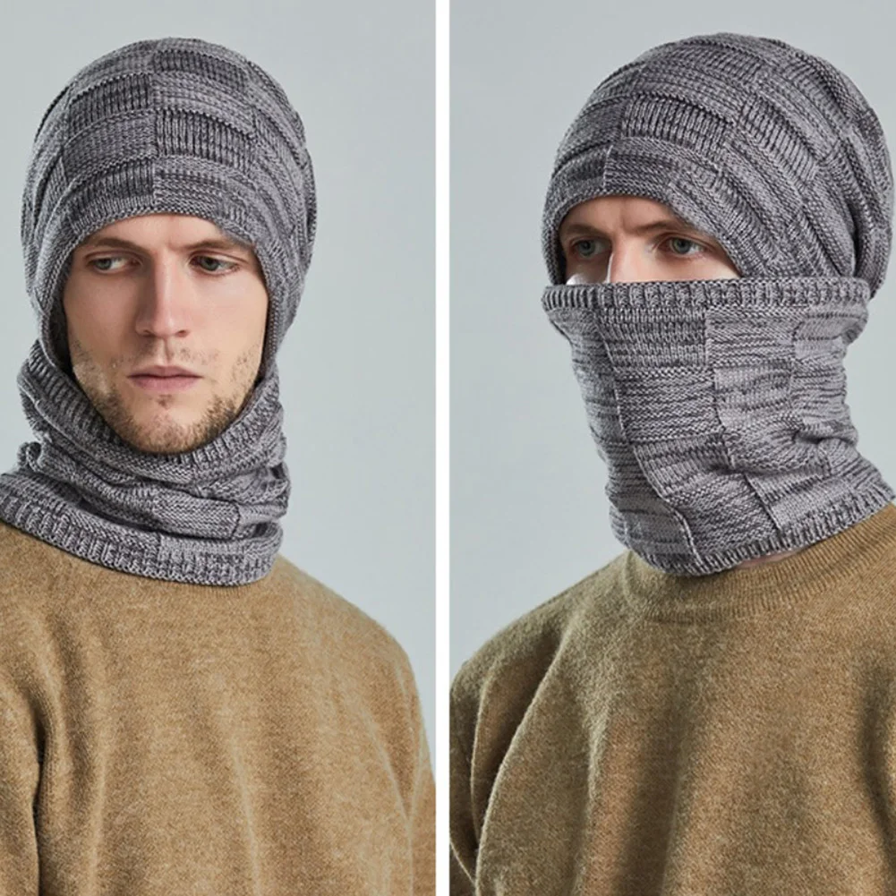 Зимний комплект из 2 предметов: шапка и шарф для мужчин и женщин, Вязаная Шапка-бини, шейный шарф, зимний теплый однотонный комплект с воротником в виде черепа, аксессуары