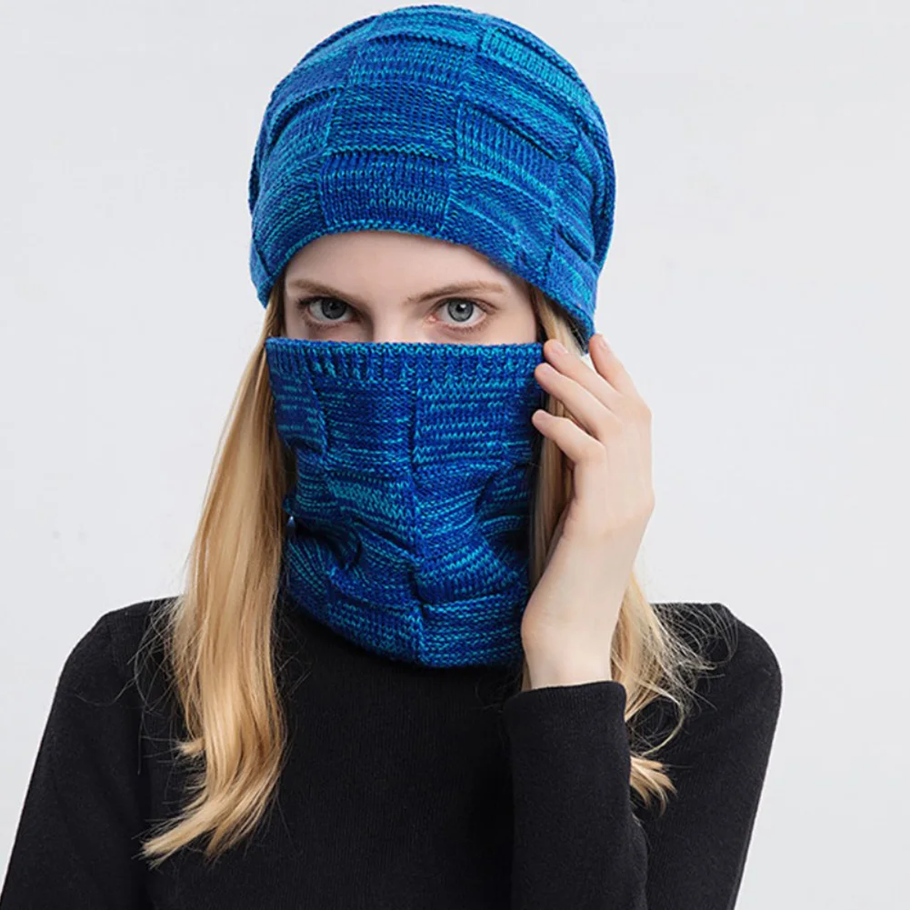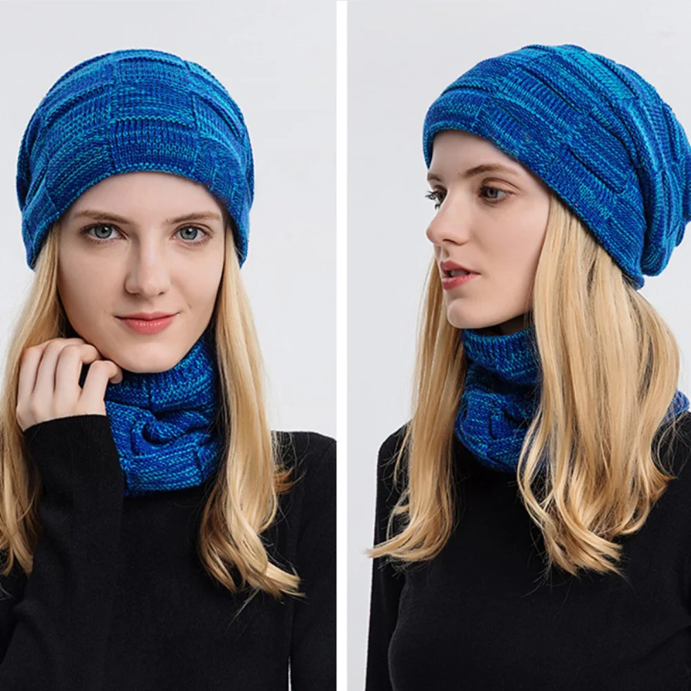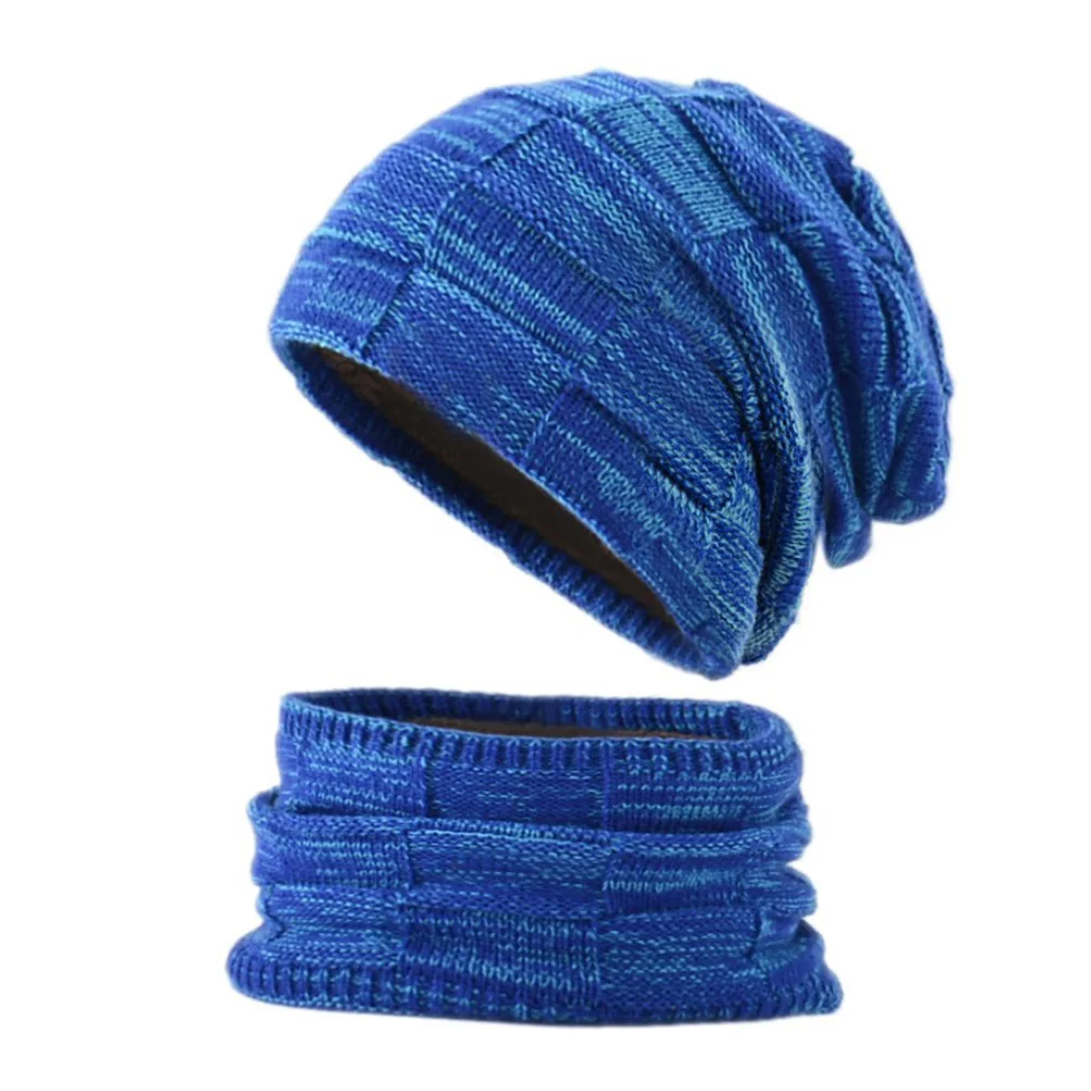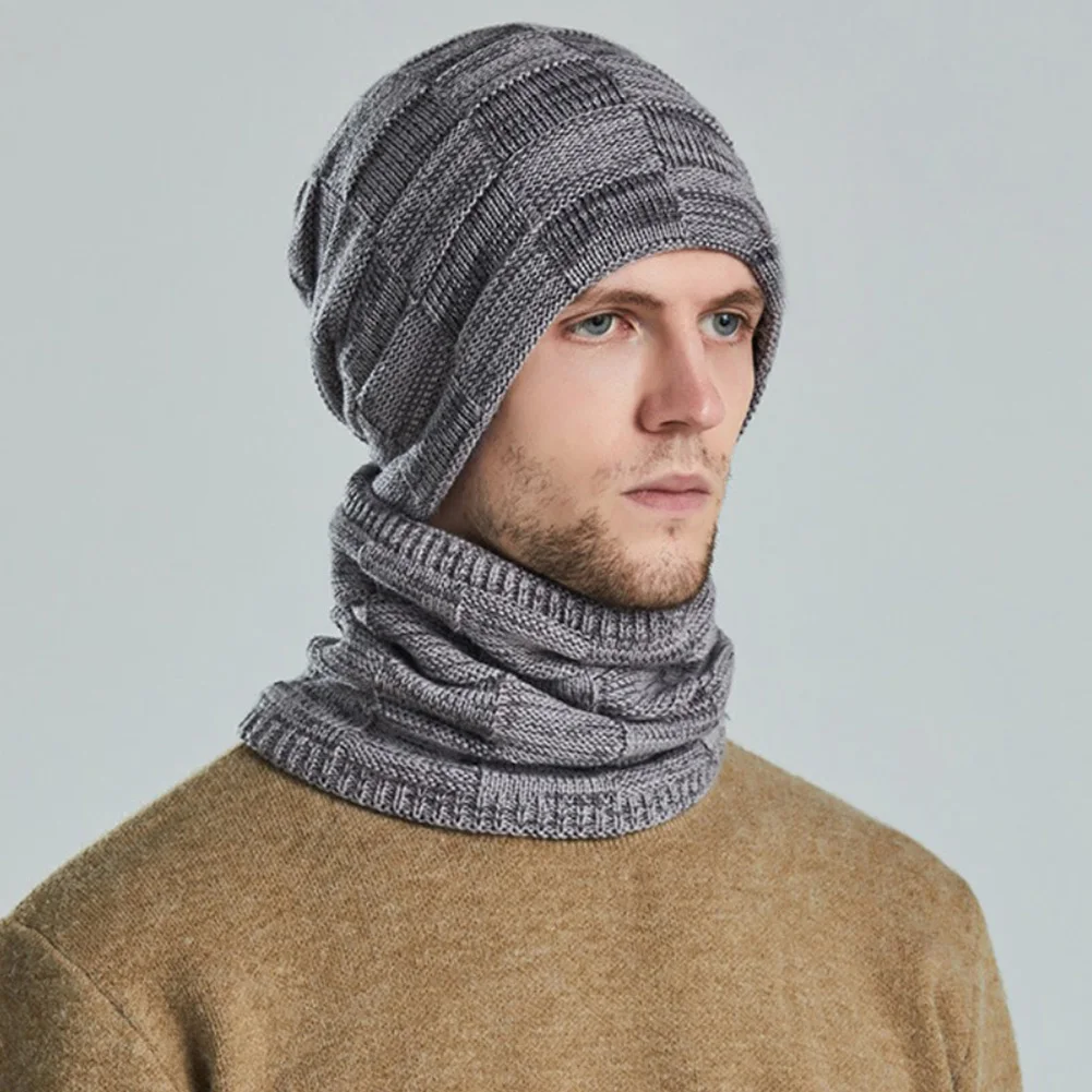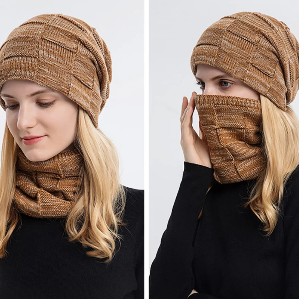 Зимний комплект из 2 предметов: шапка и шарф для мужчин и женщин, Вязаная Шапка-бини, шейный шарф, зимний теплый однотонный комплект с воротником в виде черепа, аксессуары