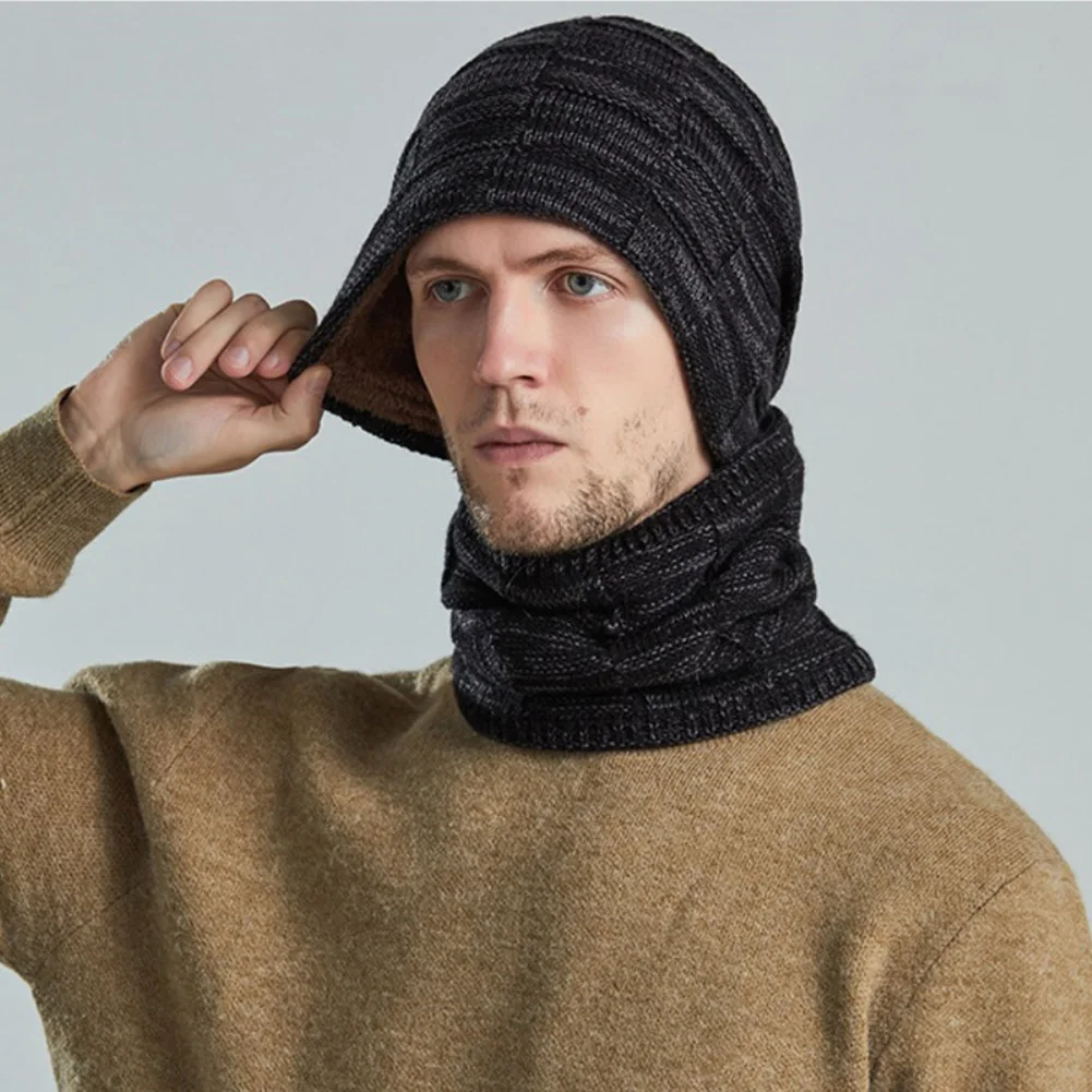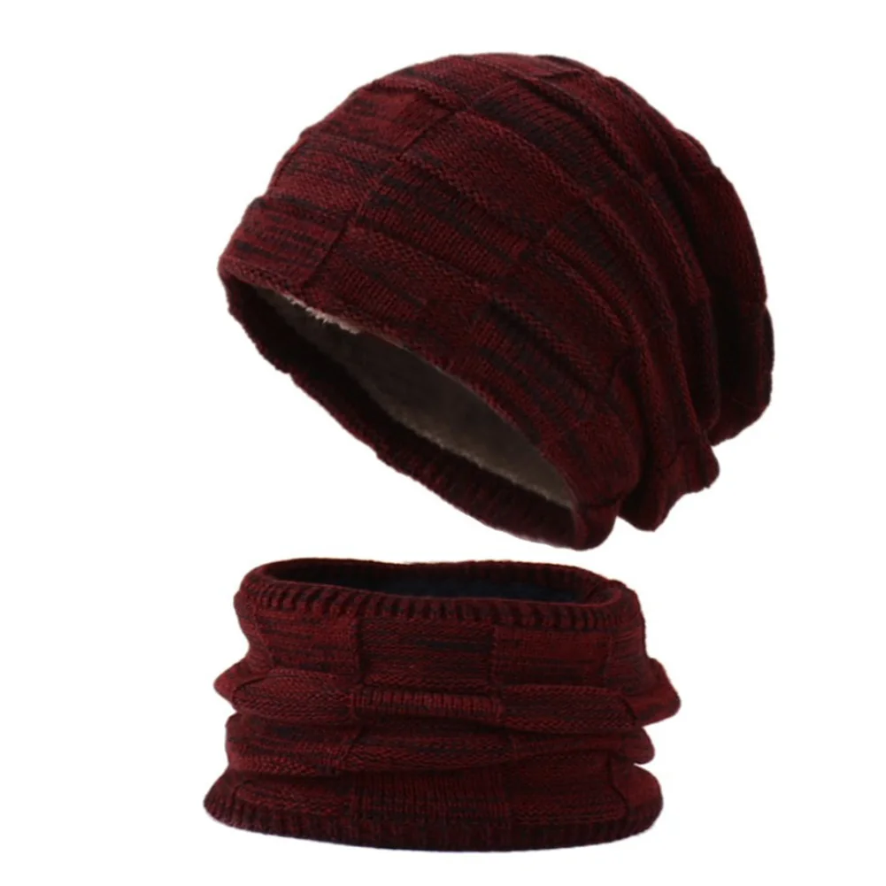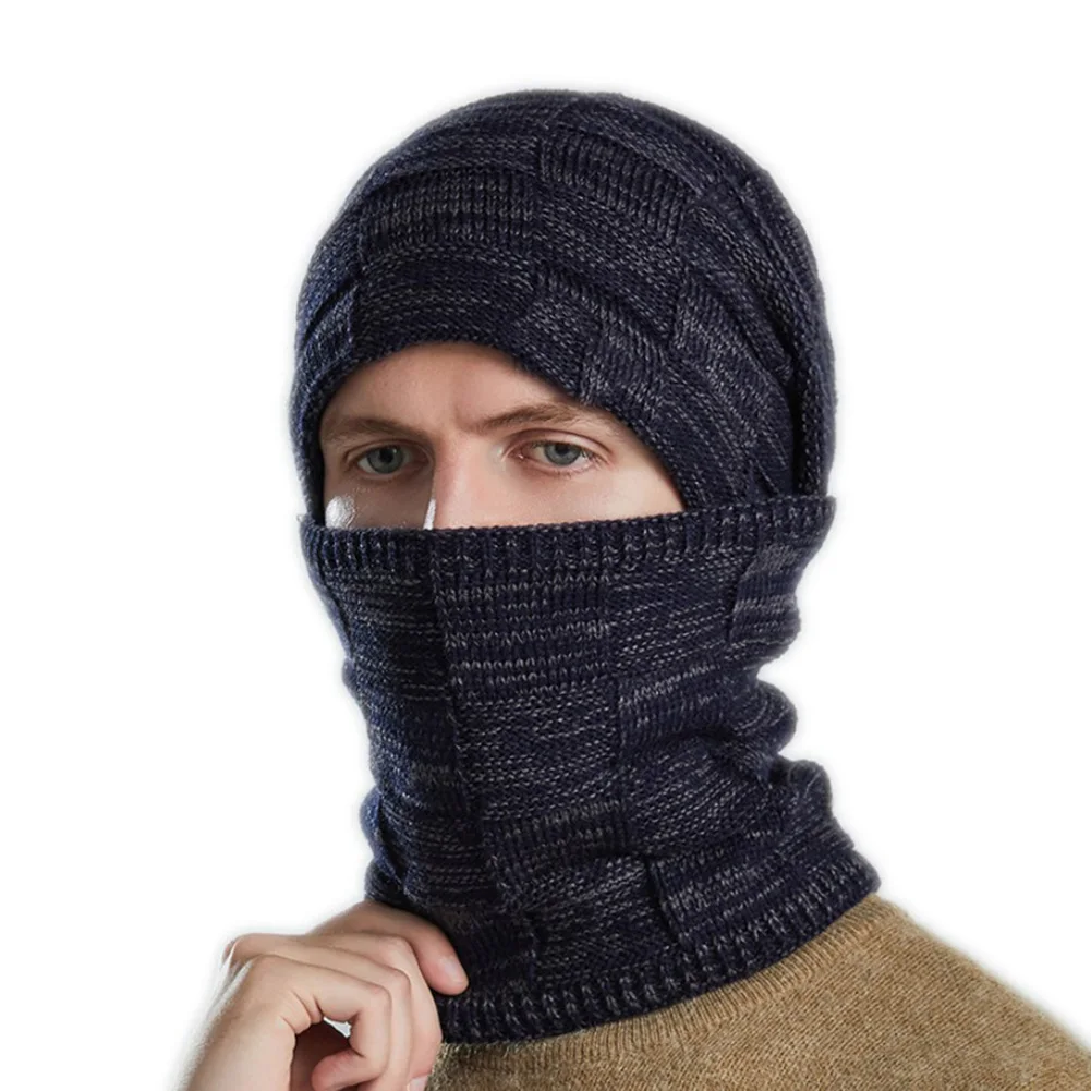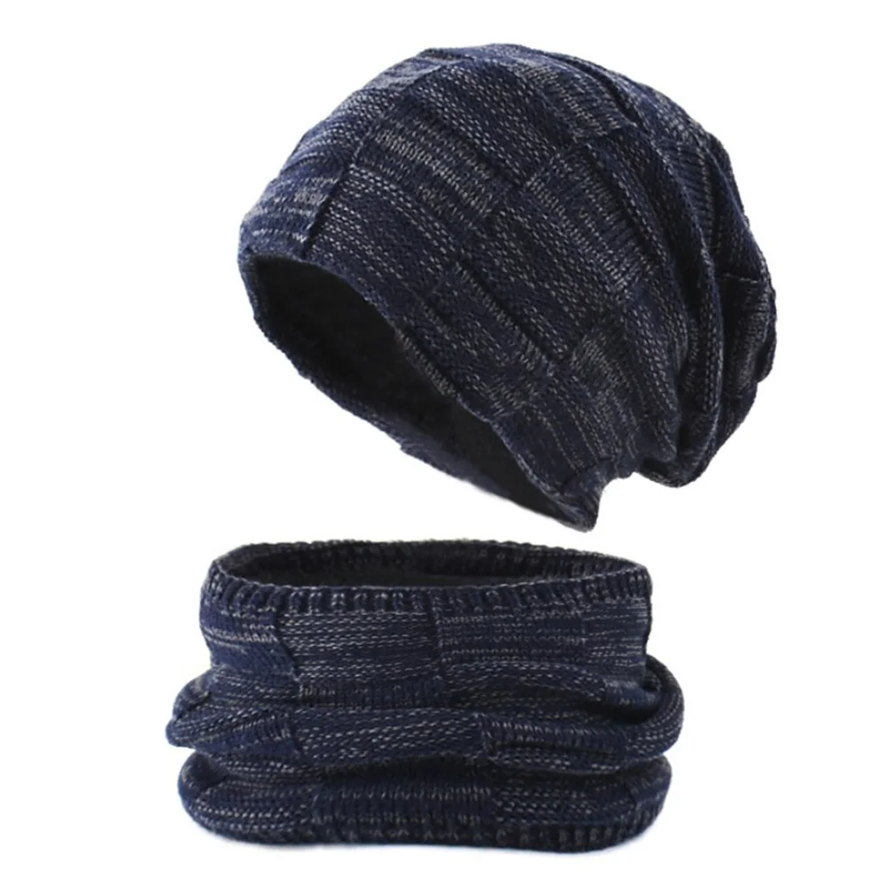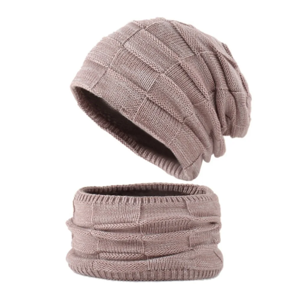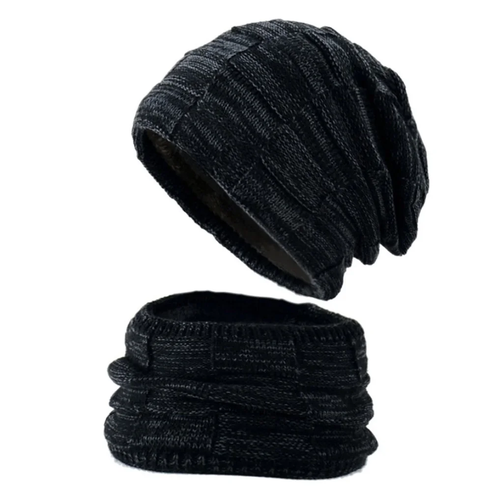 Зимний комплект из 2 предметов: шапка и шарф для мужчин и женщин, Вязаная Шапка-бини, шейный шарф, зимний теплый однотонный комплект с воротником в виде черепа, аксессуары