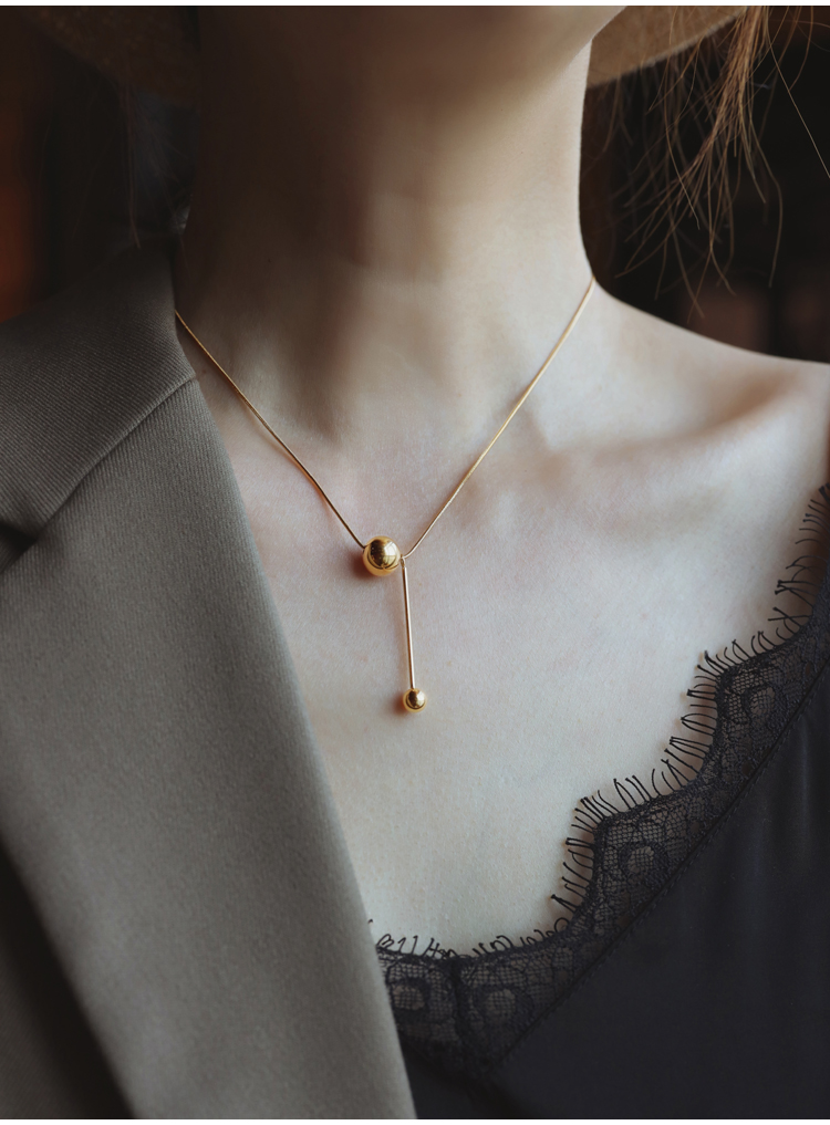 Material: Titanium steel gold plated, not easy to fade and allergic Size: Necklace length: 40CM, large ball: diameter 1.2cm, small ball: diameter 0.6cm