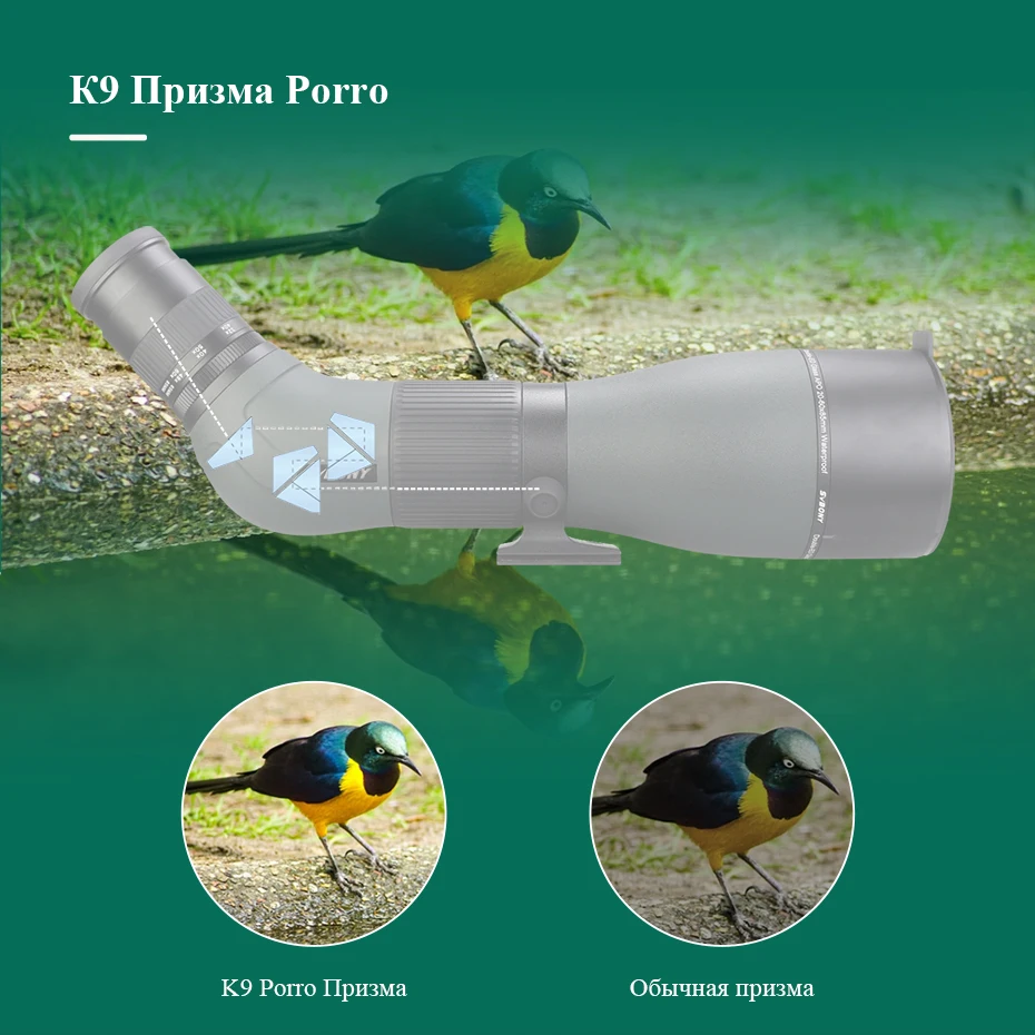 Благодаря призме K9 Porro прицел обеспечивает более высокое качество изображения и меньшие потери света, что дает вам гораздо более четкое 3D-изображение, чем у других, а также обеспечивает гораздо большее поле зрения.