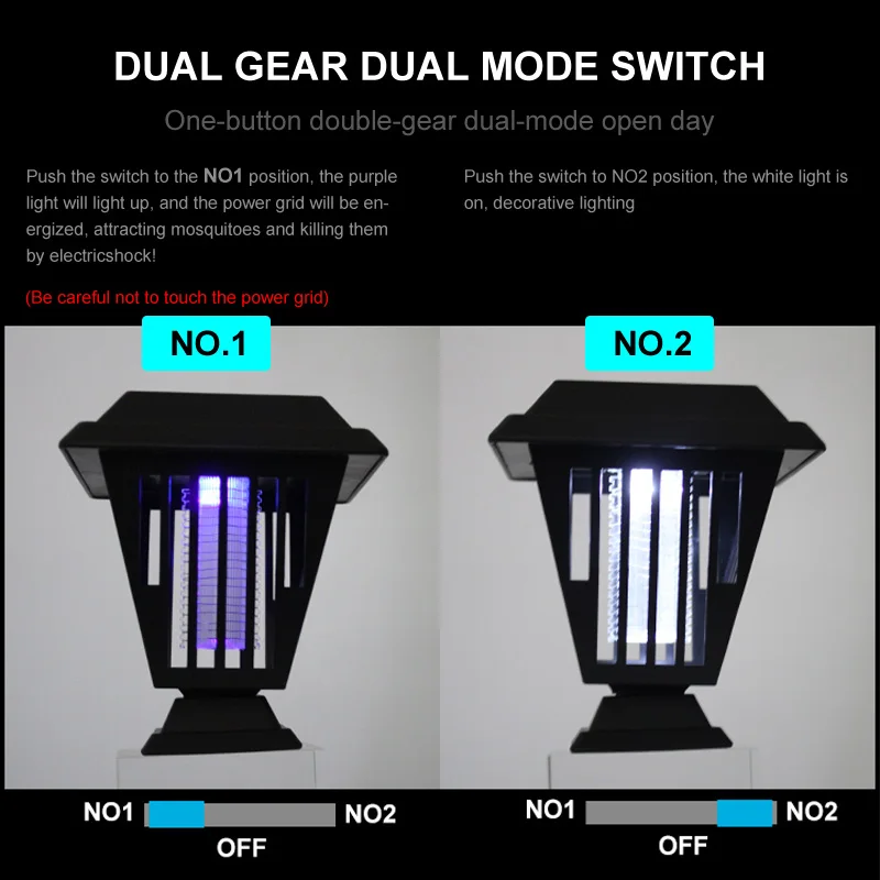1. 2 в 1 светильник: солнечный вредитель убийца светодиодный светильник имеет два вида светильник s, белый и фиолетовый. Фиолетовая лампа может эффективно убить летающих насекомых, а убийца комаров может защитить вашу семью от раздражающих комаров и укусов насекомых. Яркий белый свет украшения в ночное время.