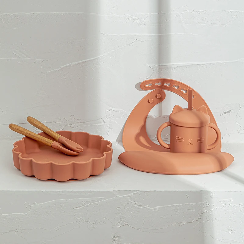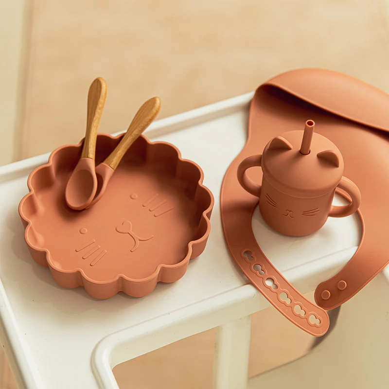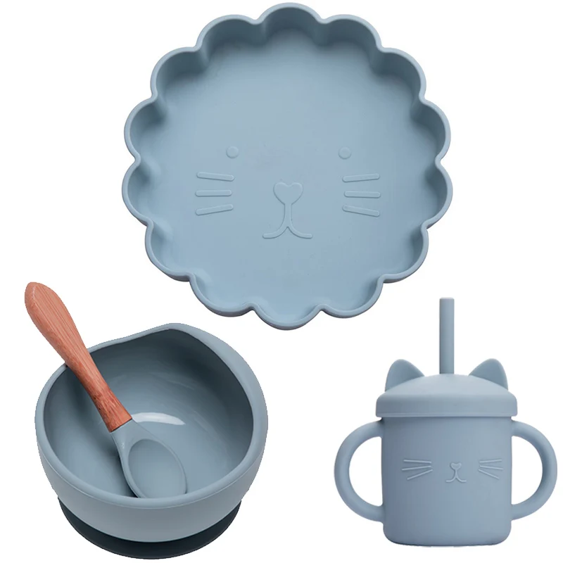 4 шт., силиконовые наборы посуды для кормления, Детские тарелки с изображением Льва, детские силиконовые чаши, BPA, Бесплатная пищевая посуда для малышей