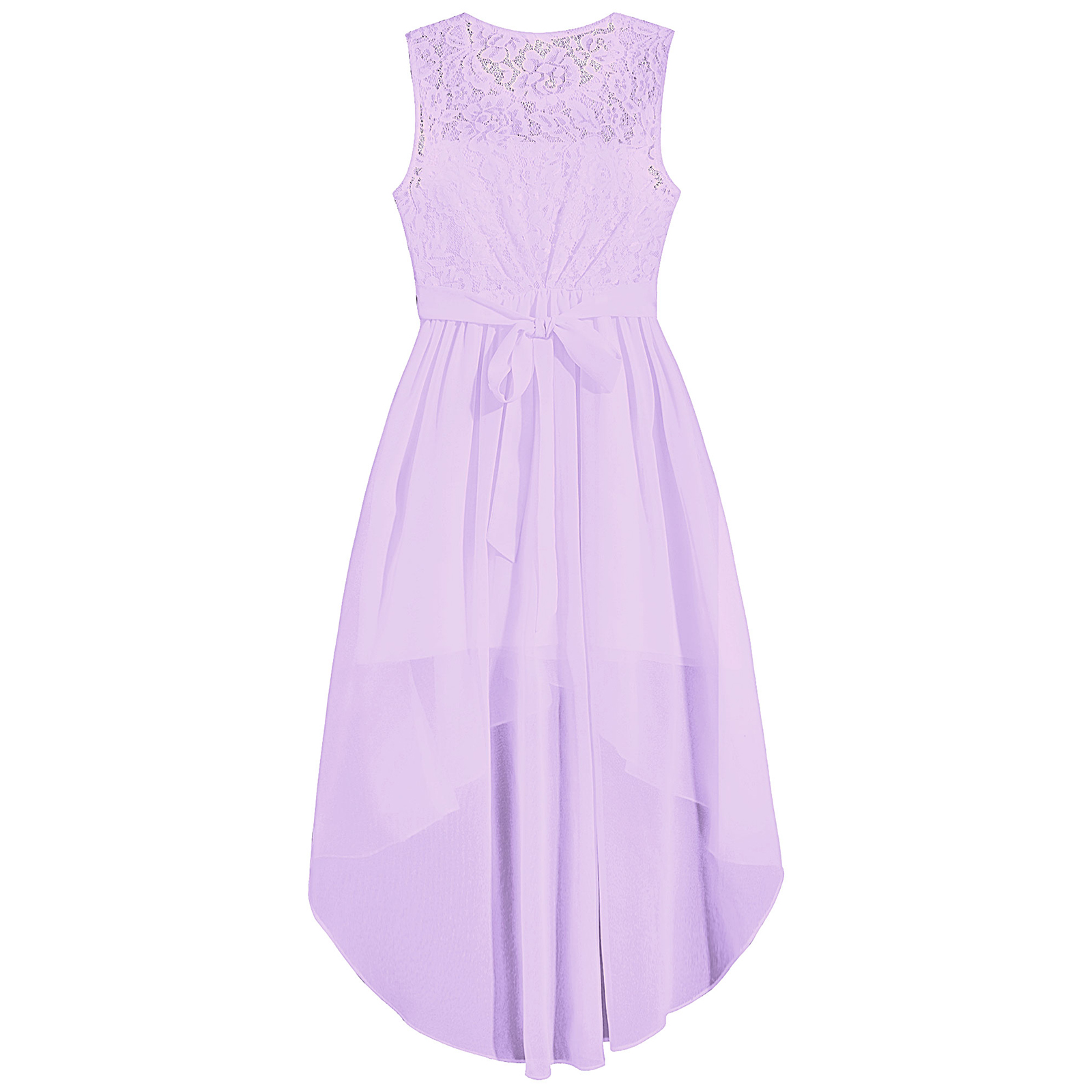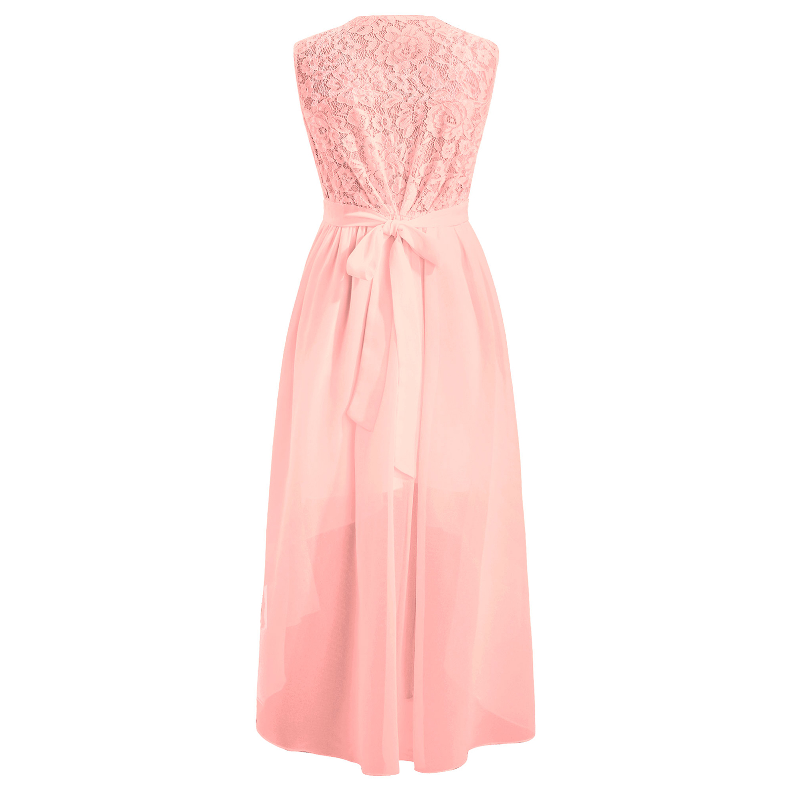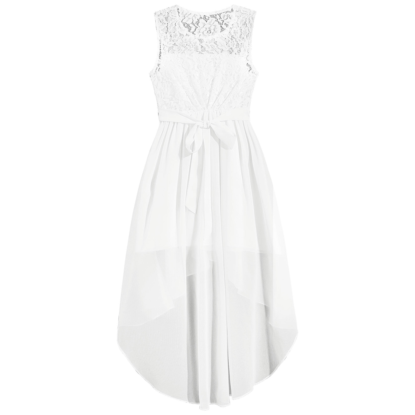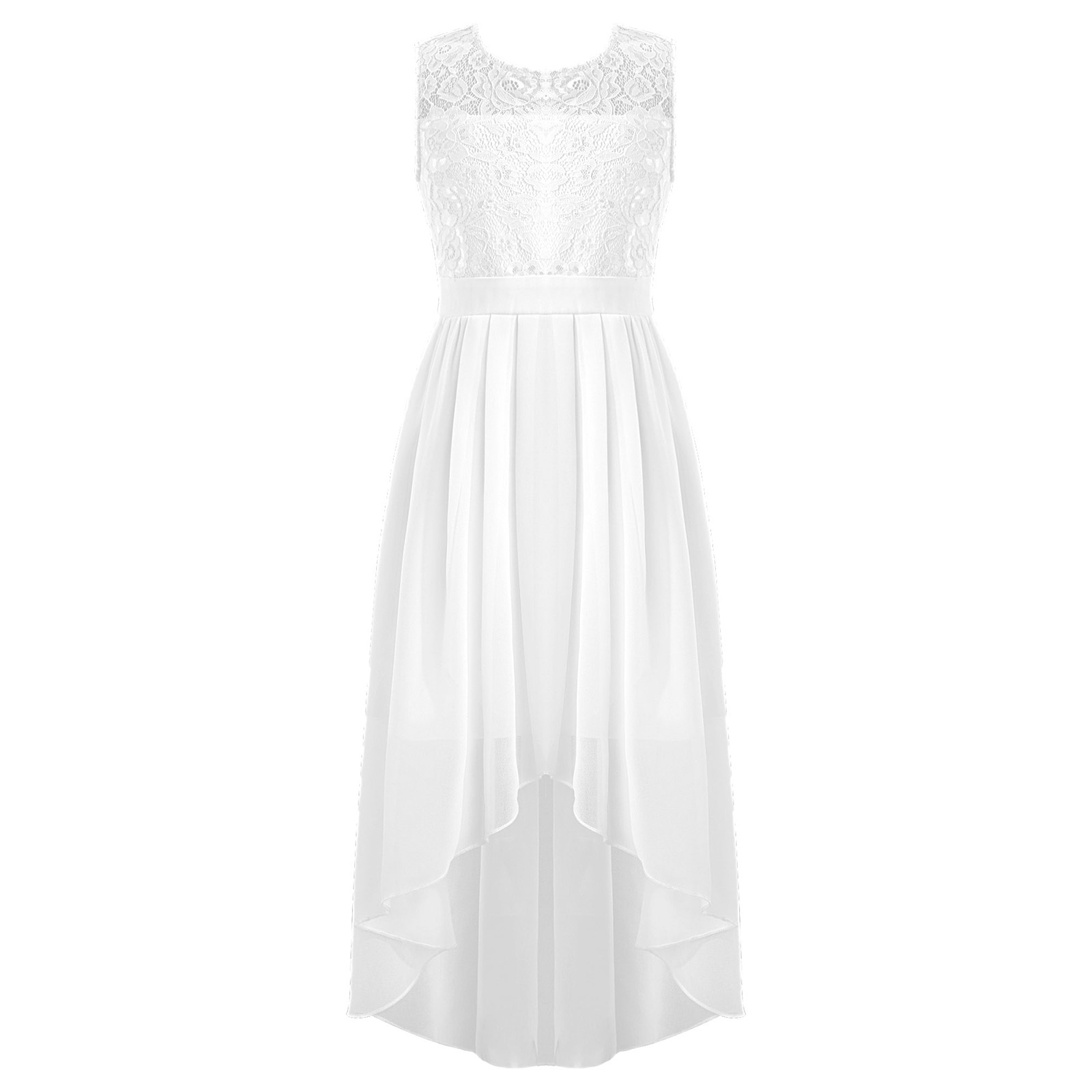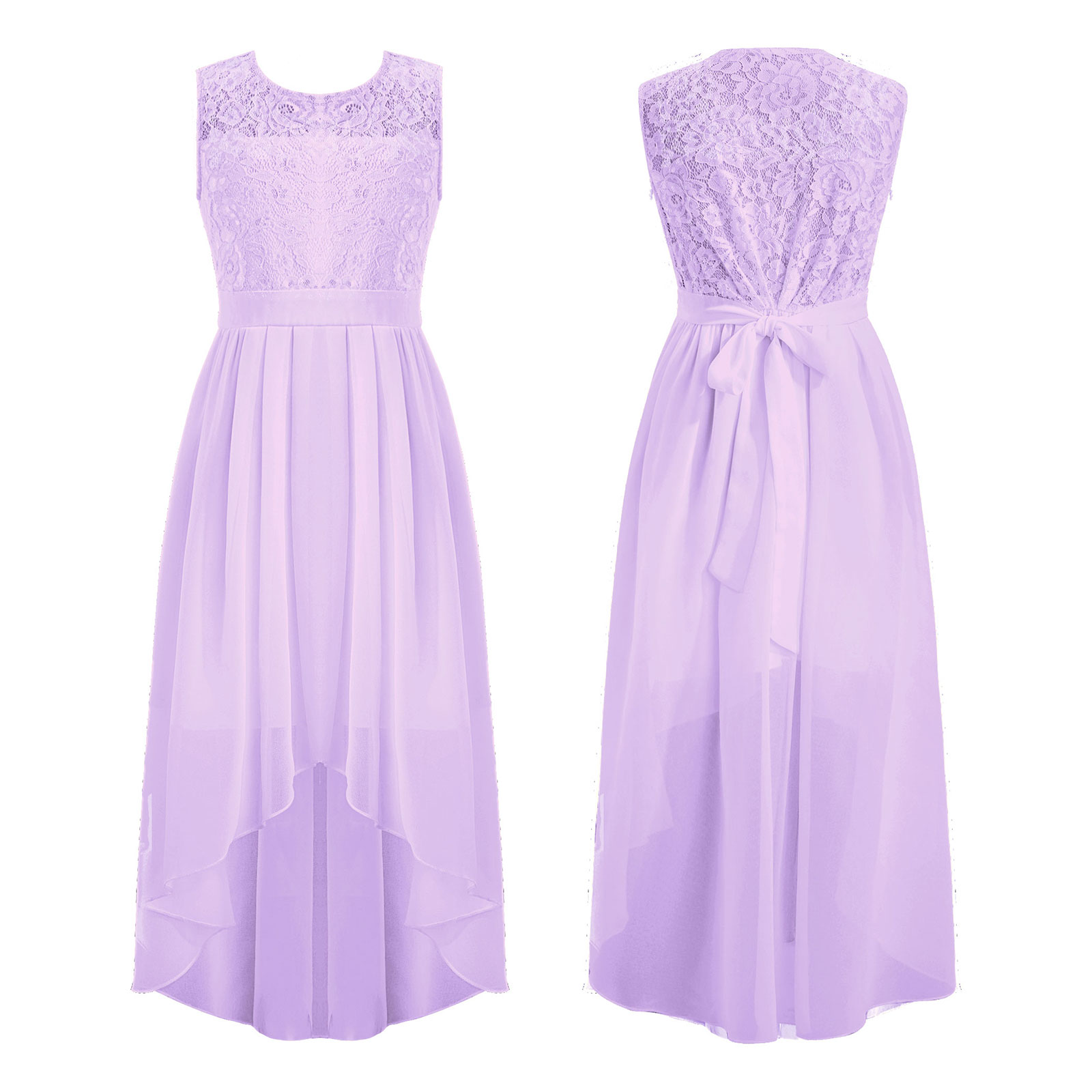 Детское элегантное кружевное шифоновое платье с цветочным рисунком для девочек; Асимметричное платье без рукавов с круглым вырезом и низким подолом для свадьбы, дня рождения.