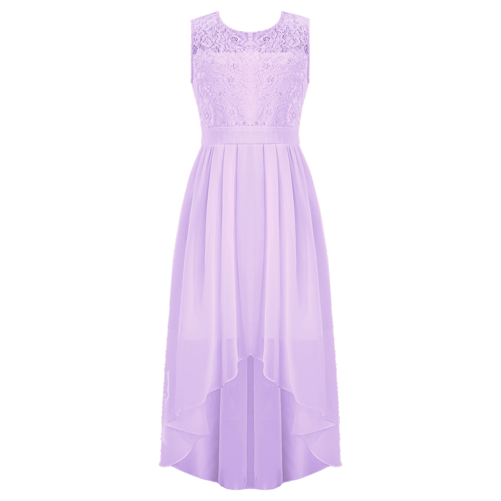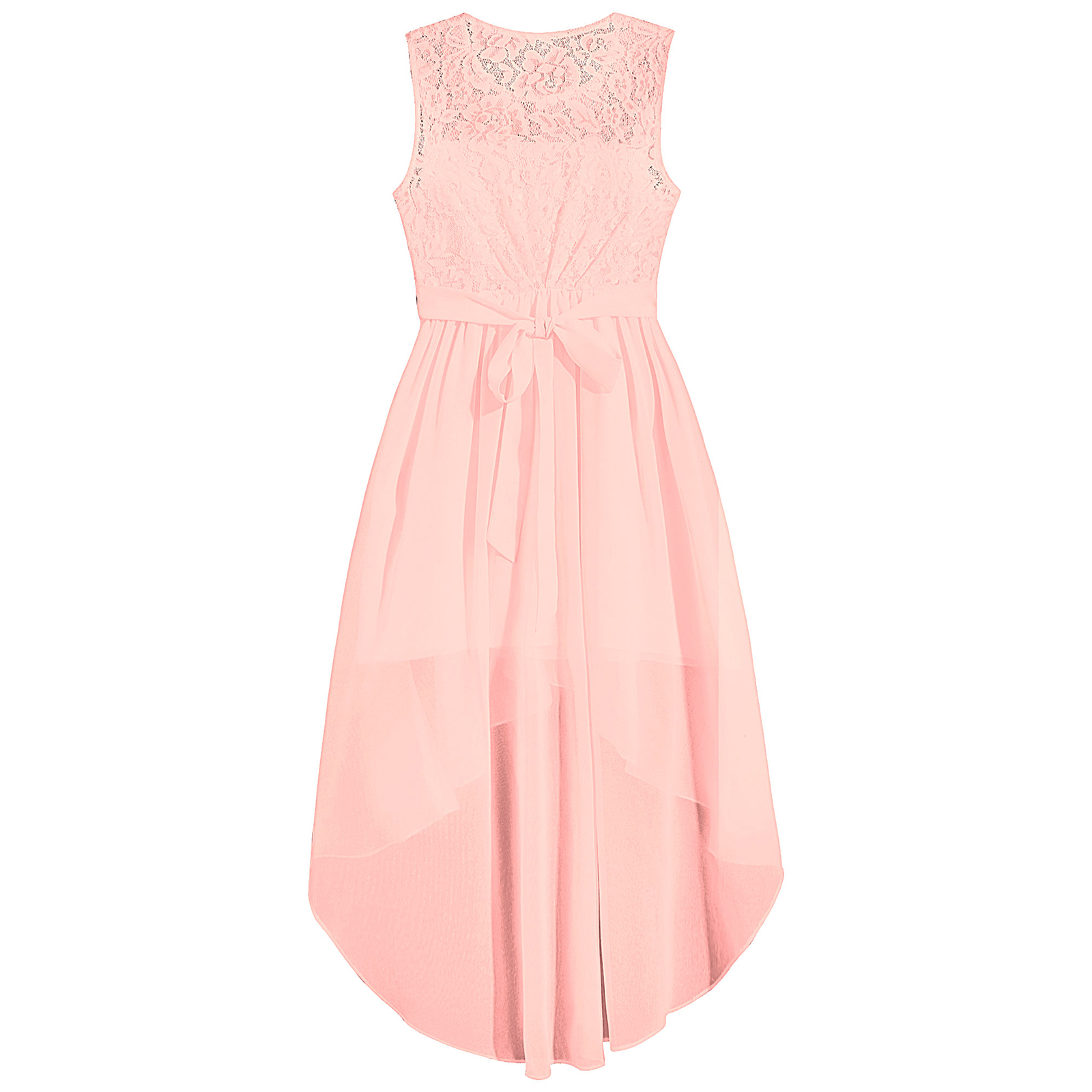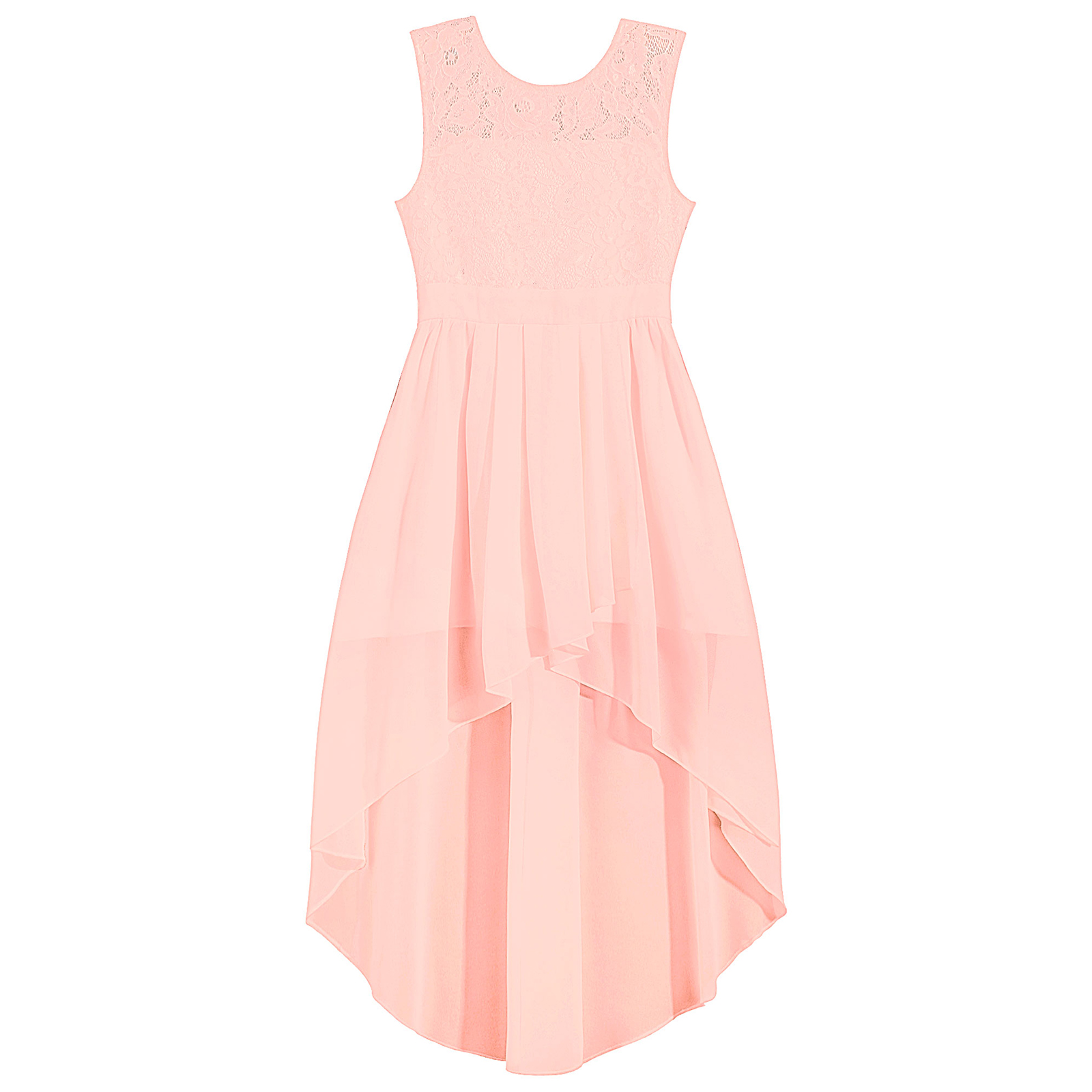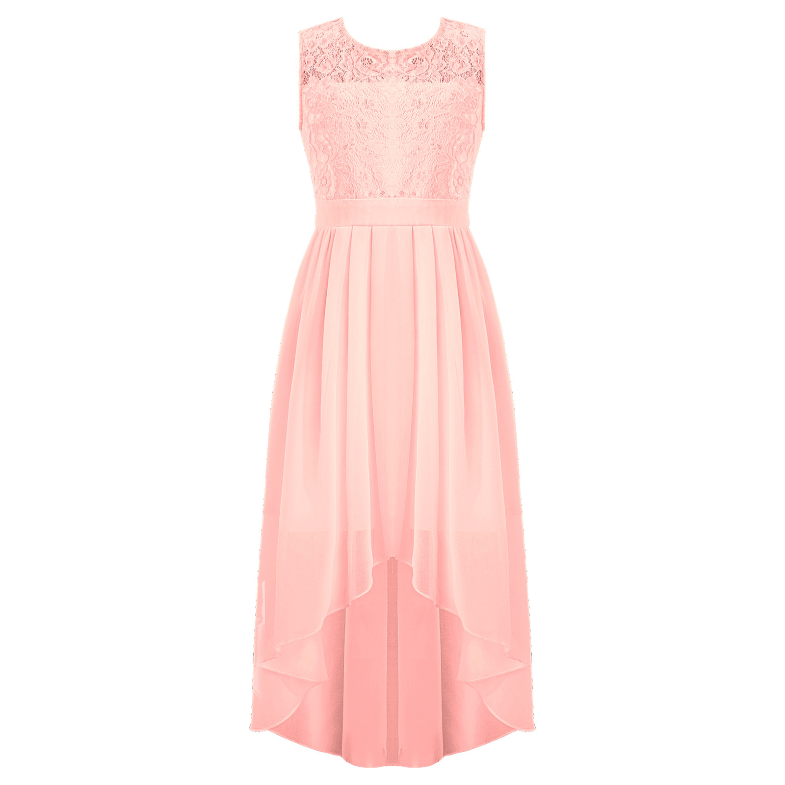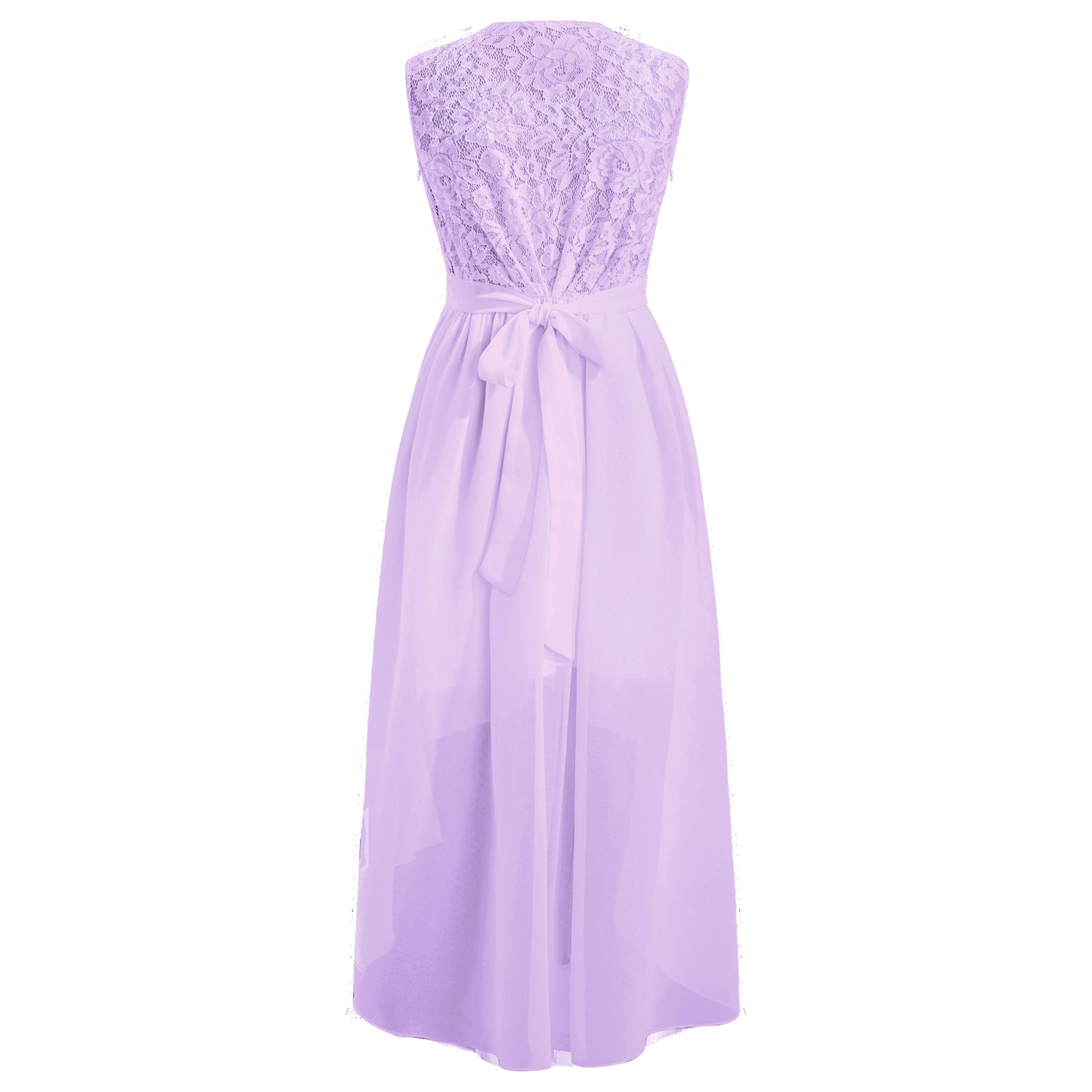 Детское элегантное кружевное шифоновое платье с цветочным рисунком для девочек; Асимметричное платье без рукавов с круглым вырезом и низким подолом для свадьбы, дня рождения.