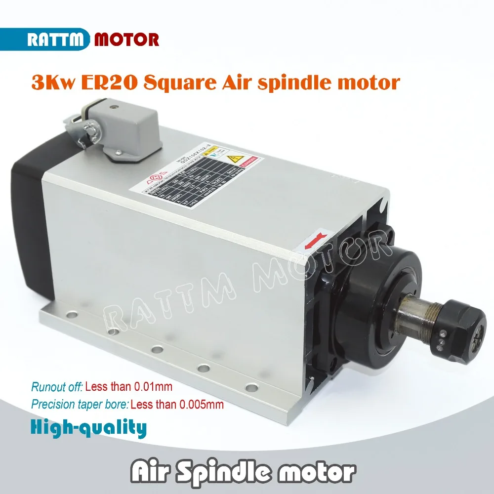 1 x3 кВтКвадратныйER20Двигатель шпинделя с воздушным охлаждением (220V,18000 об/мин, 4 подшипника, 300 Гц)