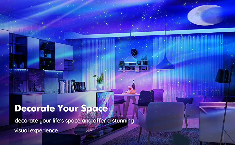 Проектор Aurora может мигать с ритмом музыки. И может регулировать скорость изменения Авроры (4 уровня)