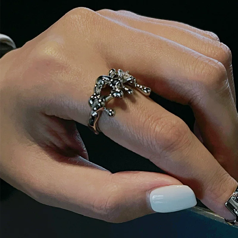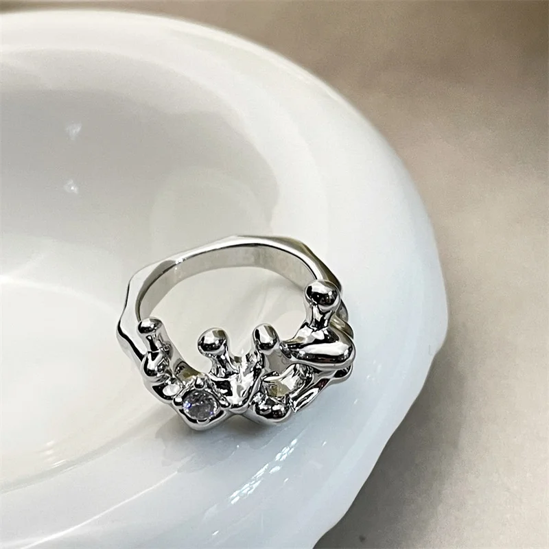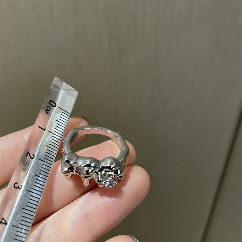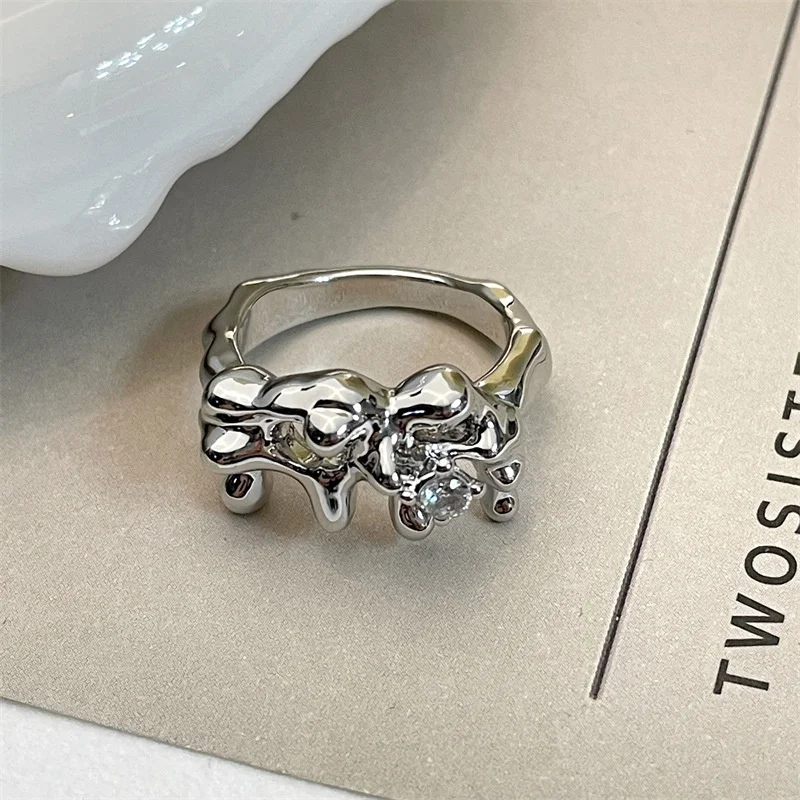 Необычное серебряное жидкое металлическое кольцо с указательным пальцем, женское уникальное дизайнерское кольцо с цирконием, женские модные аксессуары для рук