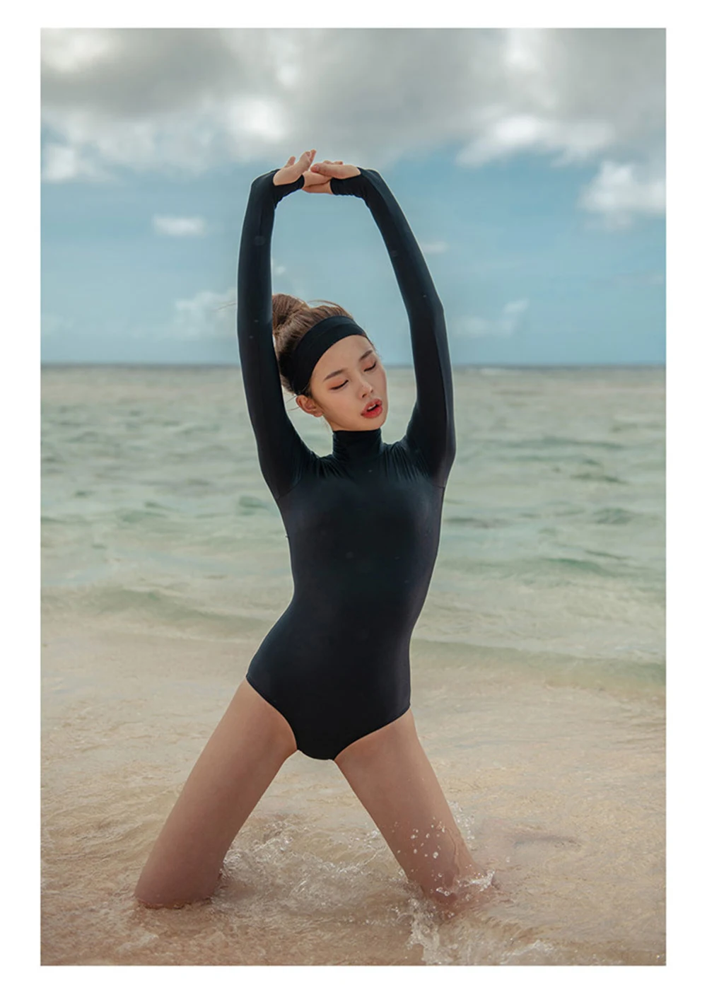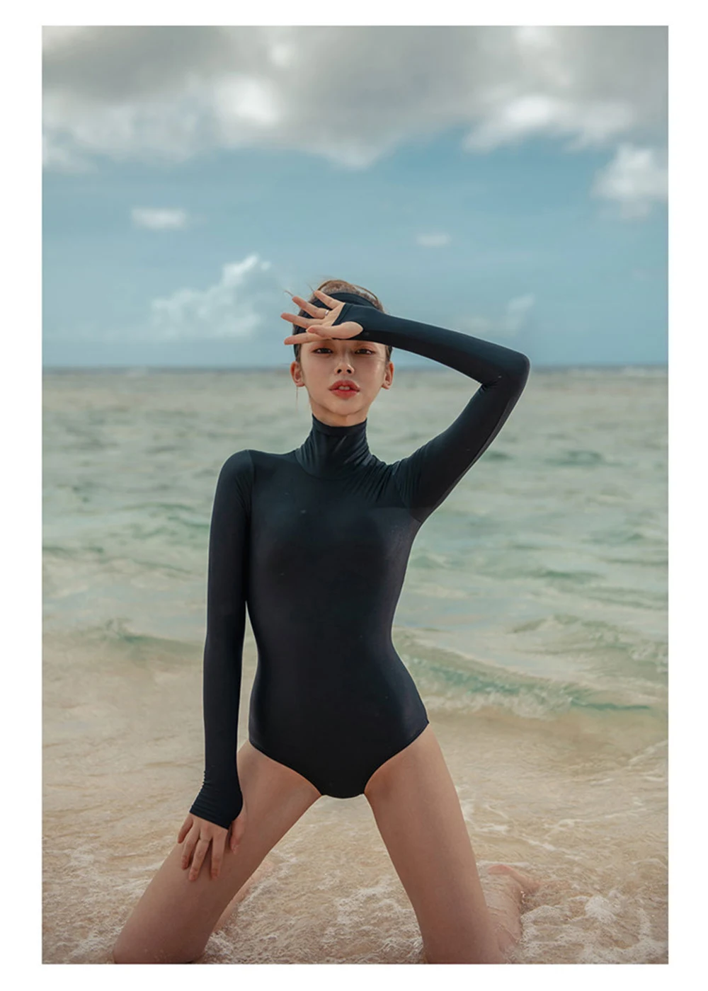 Женский Цельный купальник с длинным рукавом, Цельный купальник с высокой горловиной, черный купальник для серфинга, пляжная одежда
