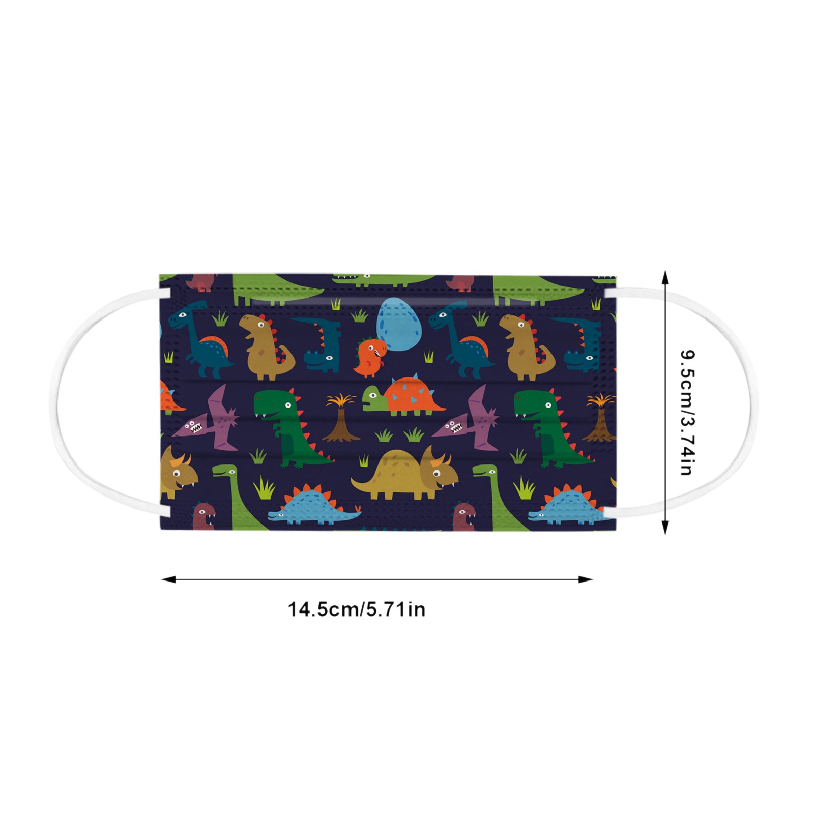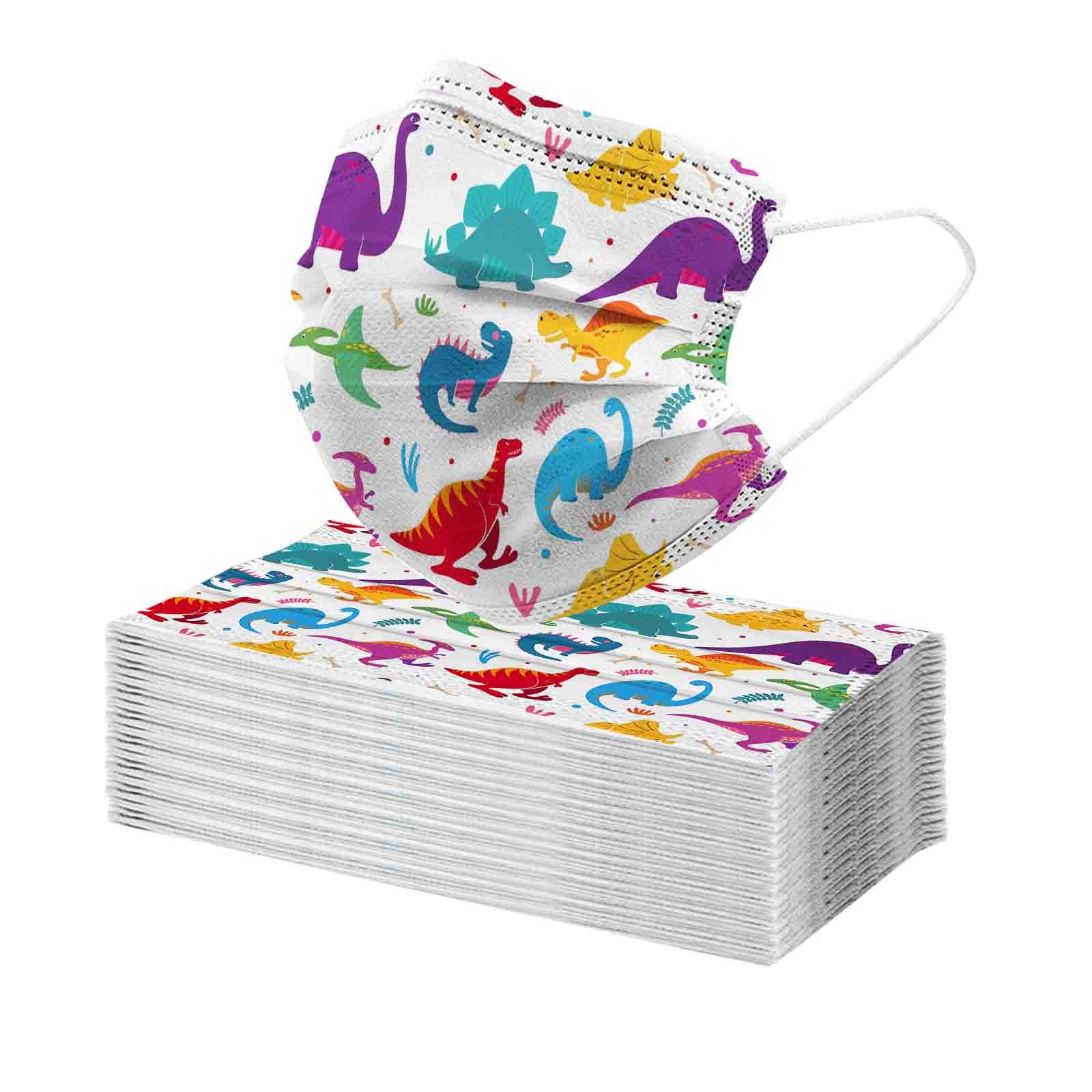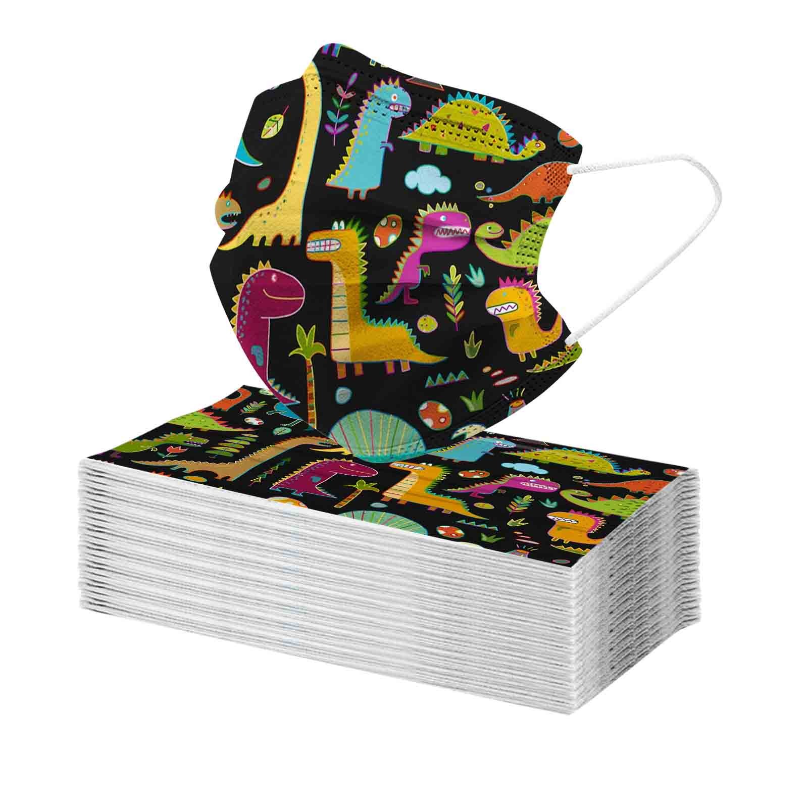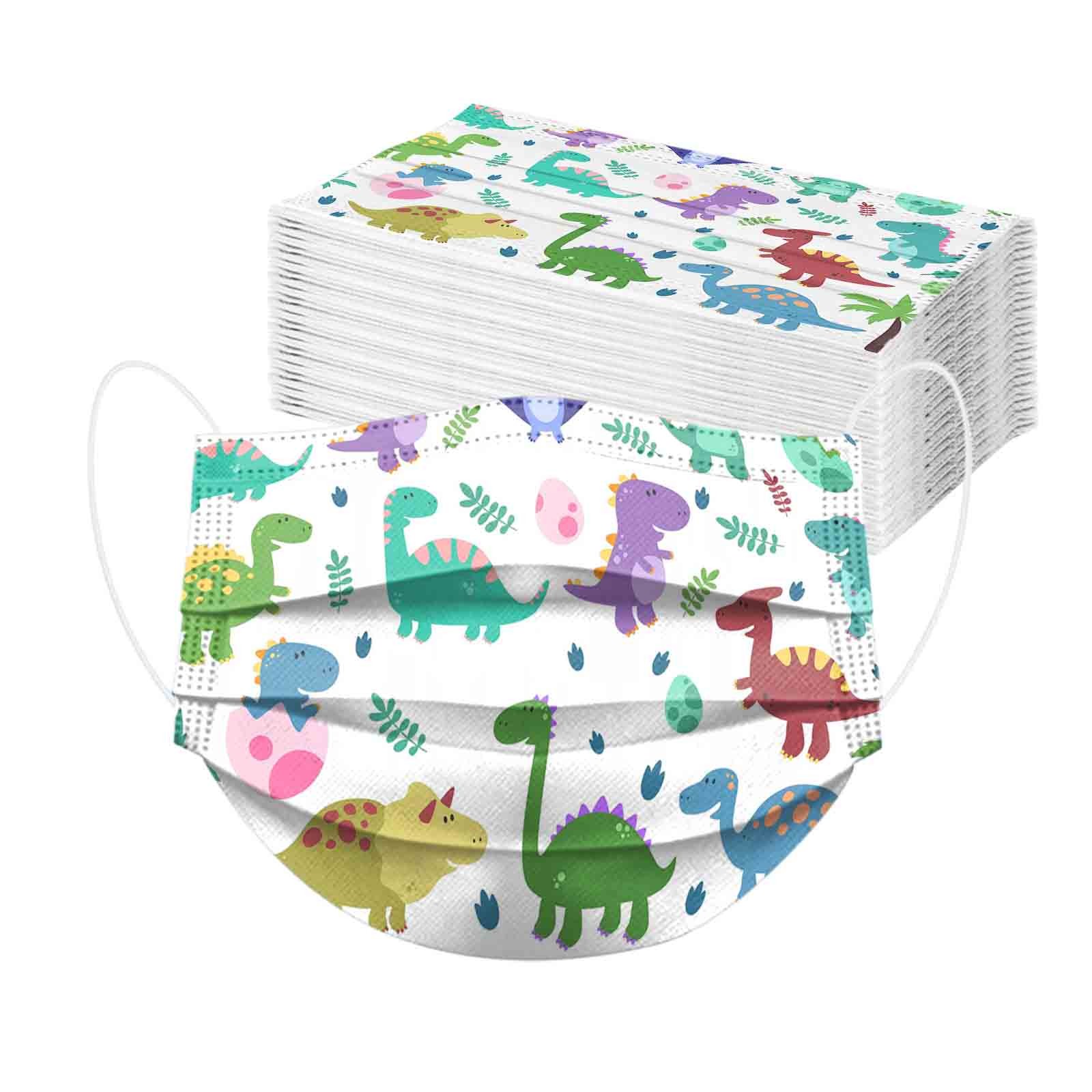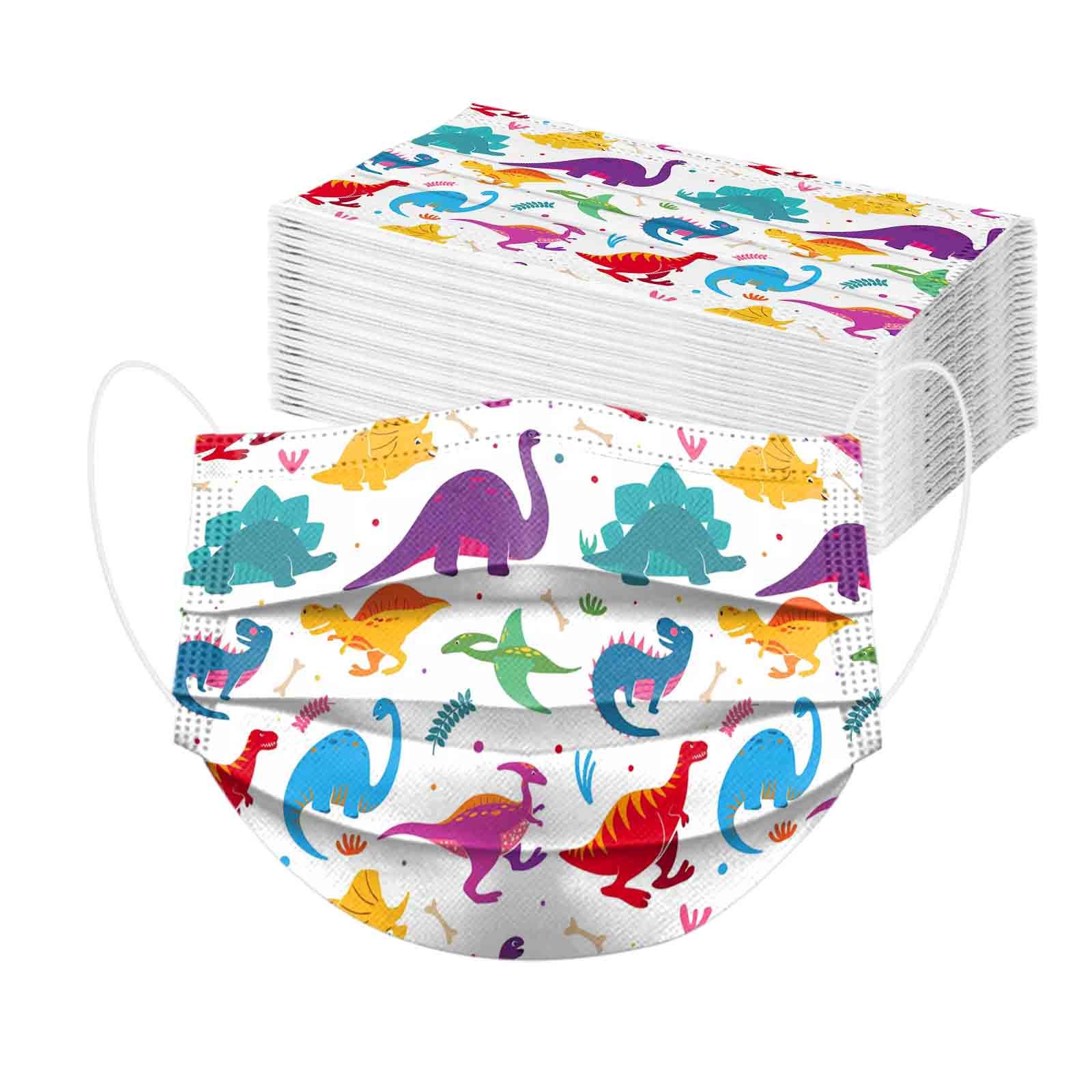 50PCS Children Kids Colorful Dinosaur Prints 3 Layer Disposable Face Masks
