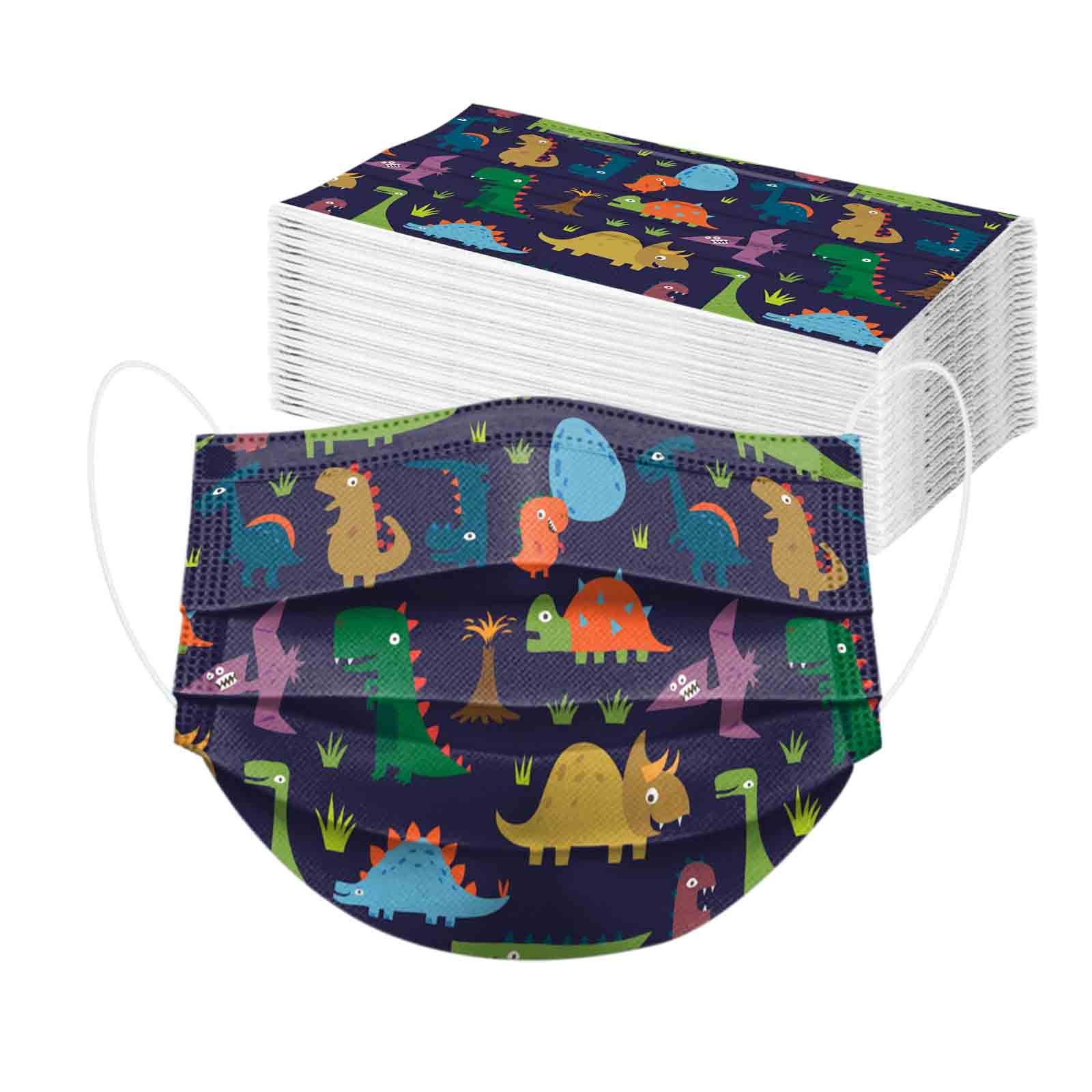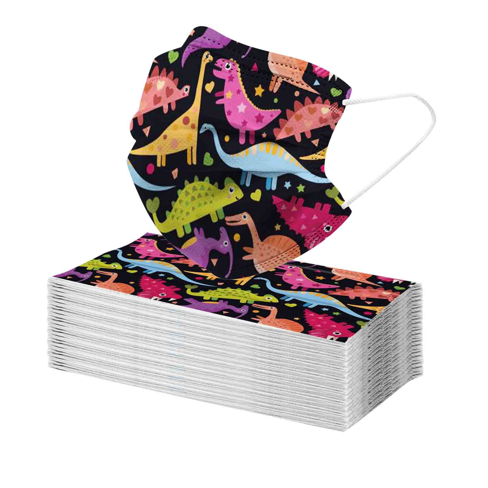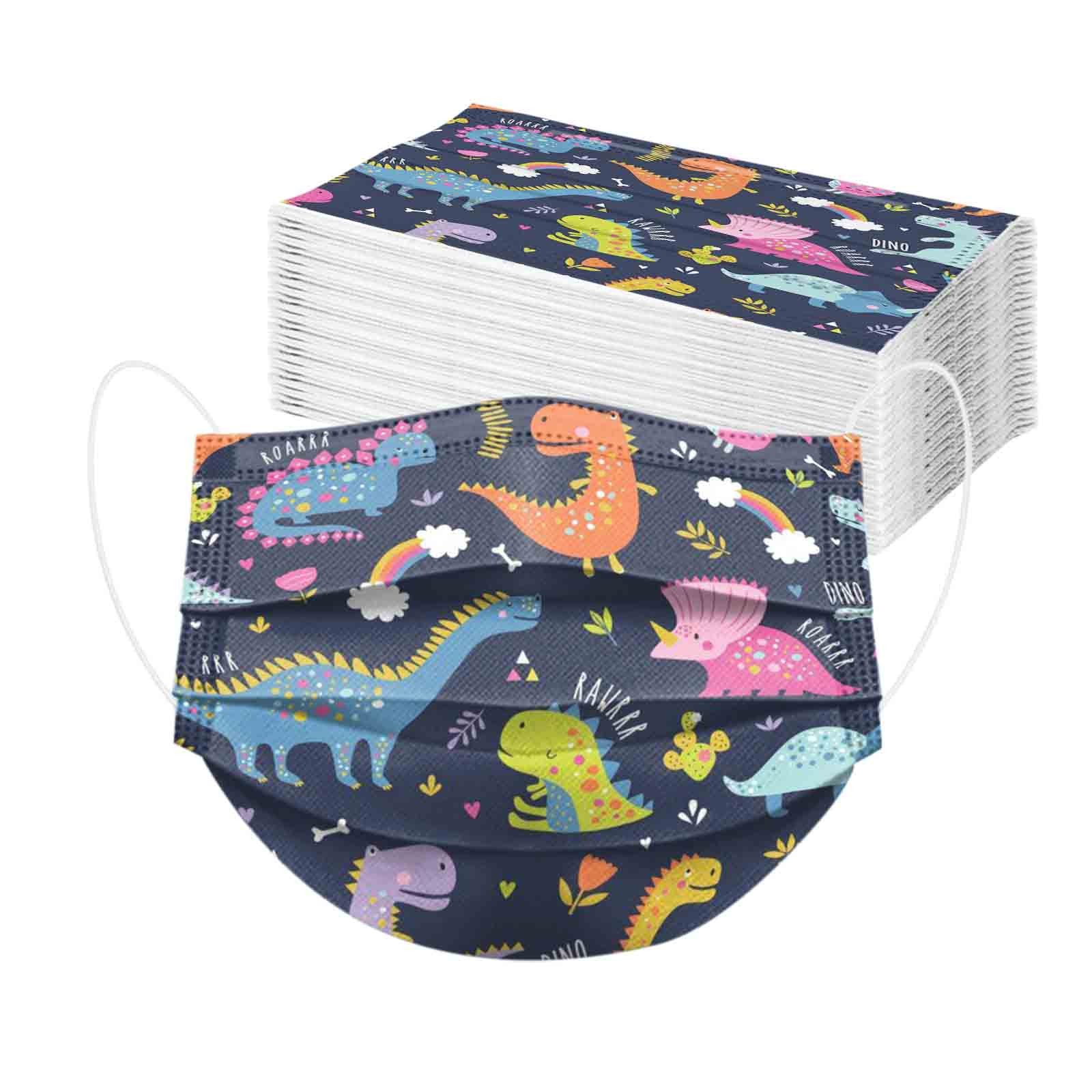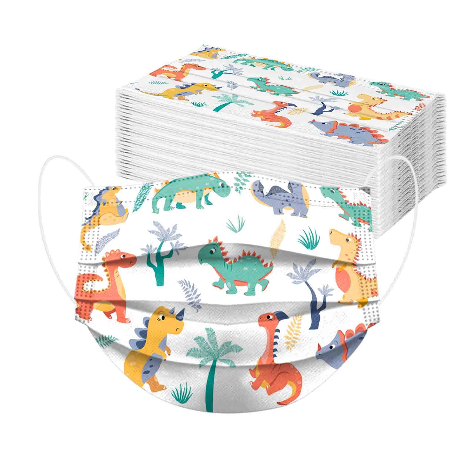 50PCS Children Kids Colorful Dinosaur Prints 3 Layer Disposable Face Masks