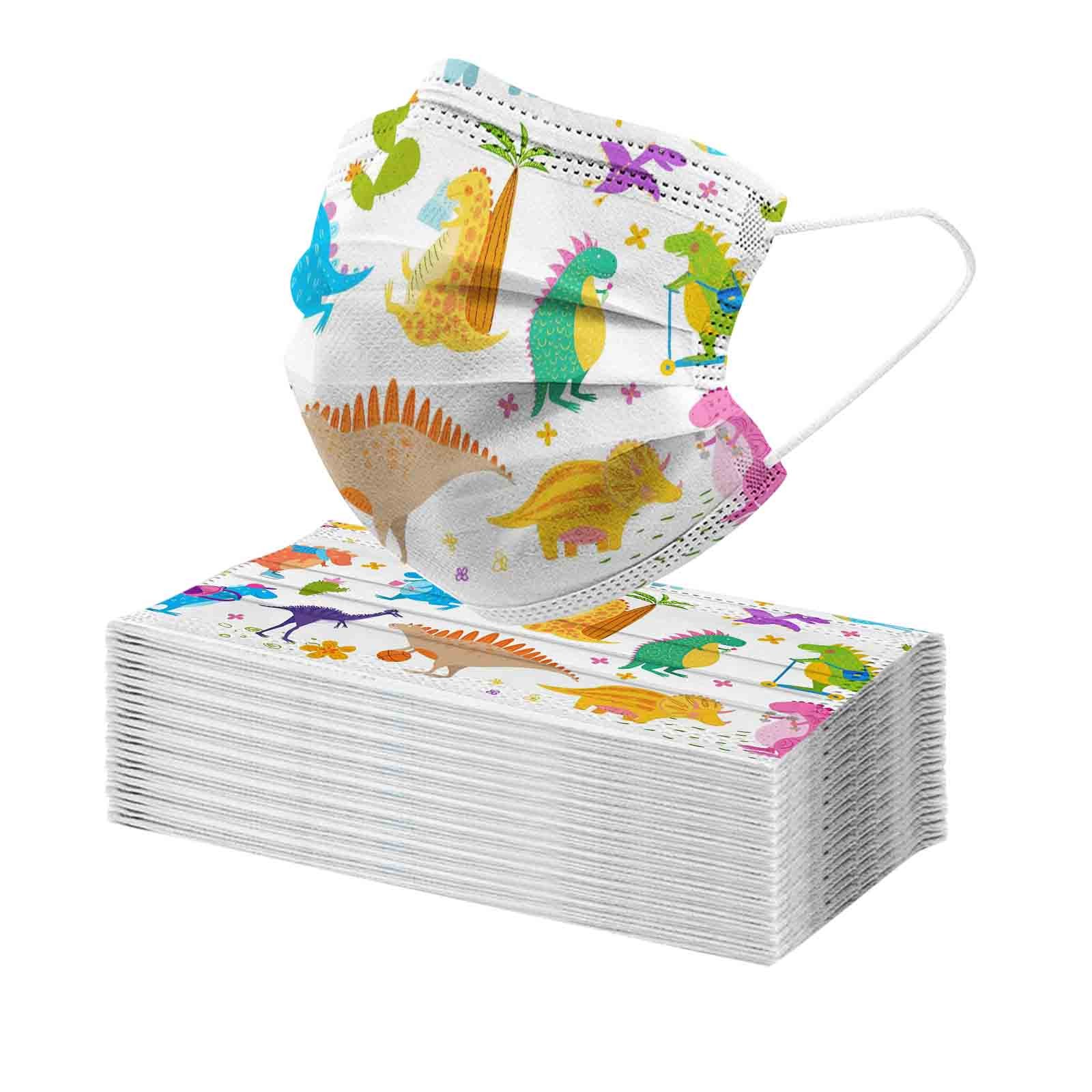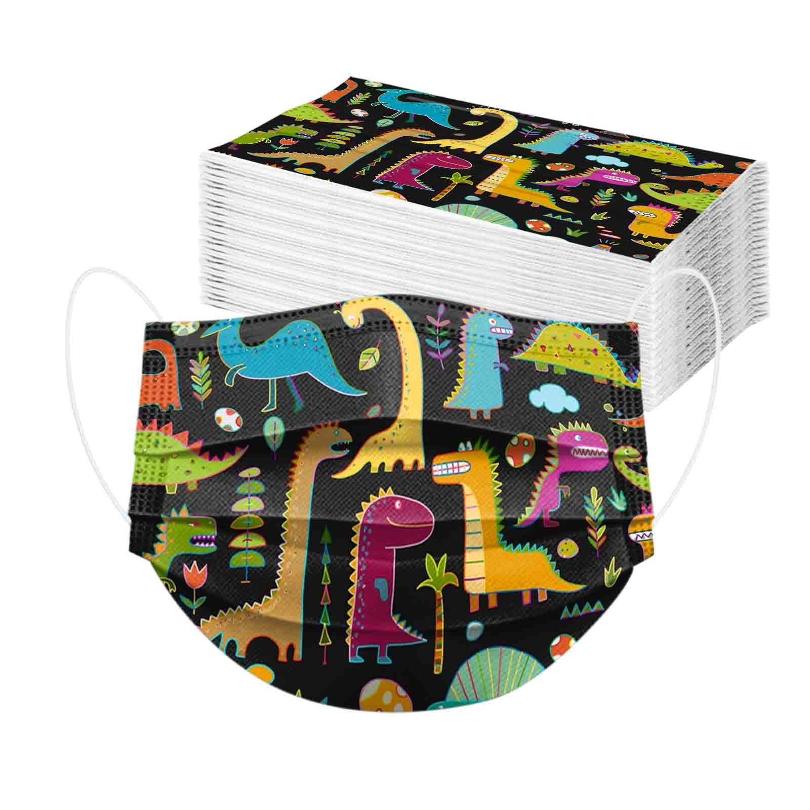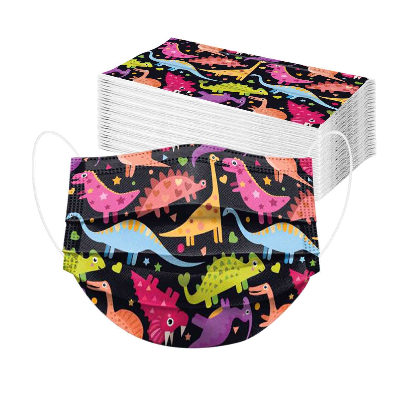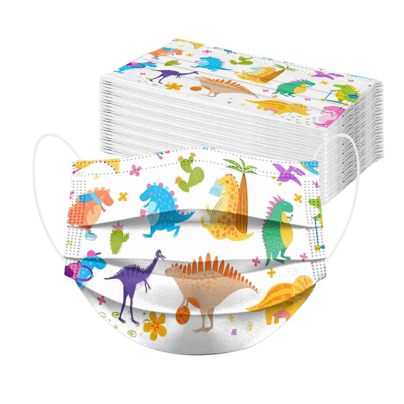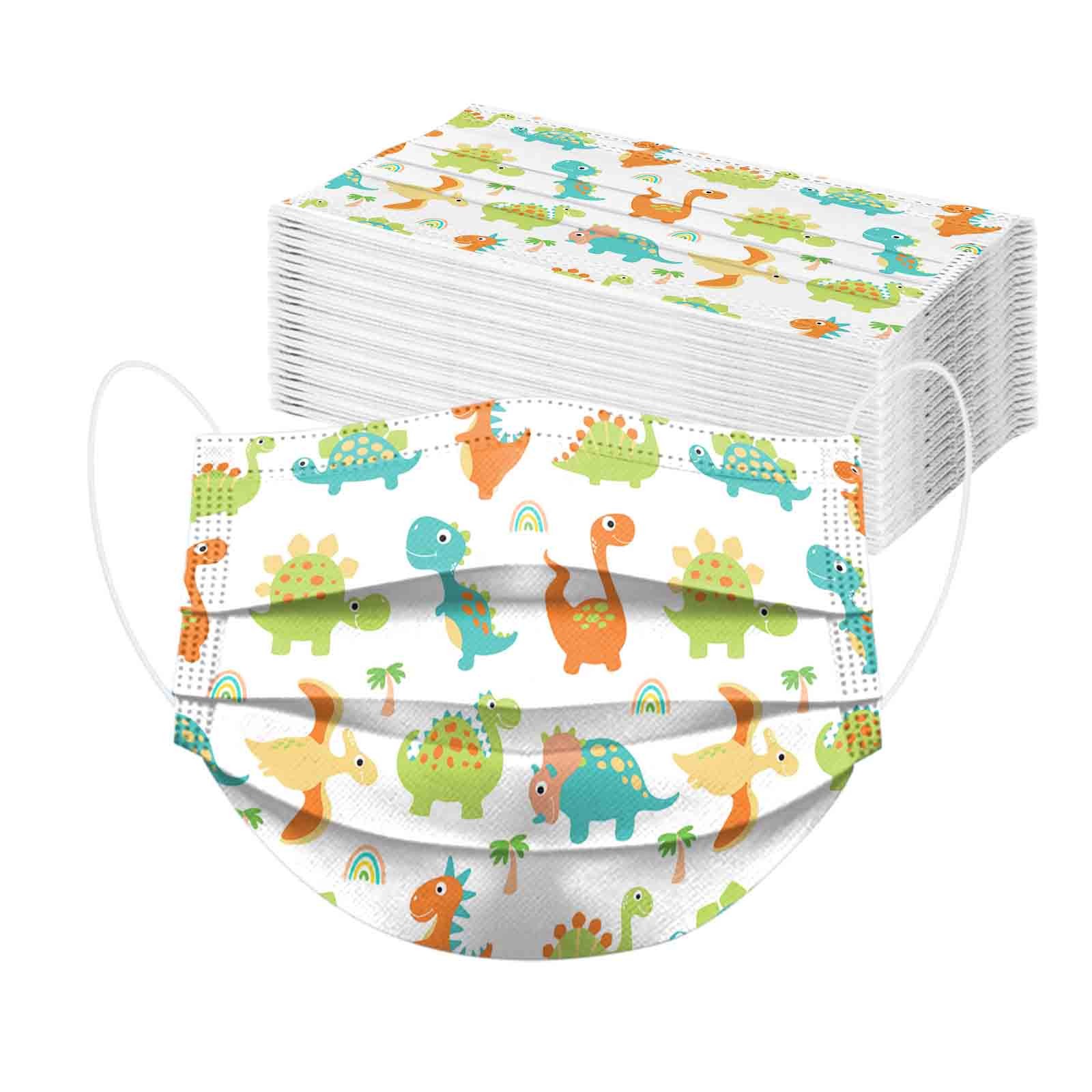 50PCS Children Kids Colorful Dinosaur Prints 3 Layer Disposable Face Masks