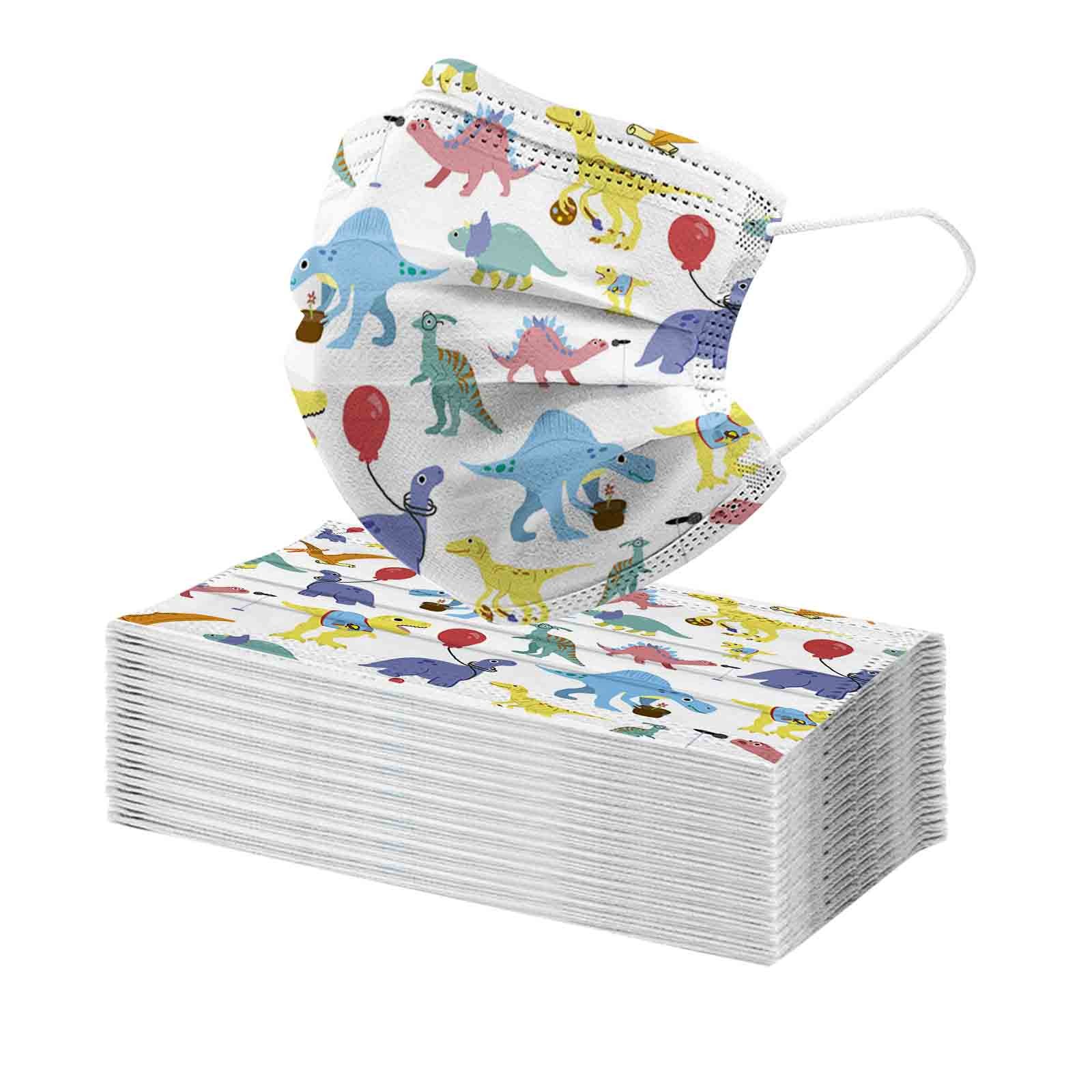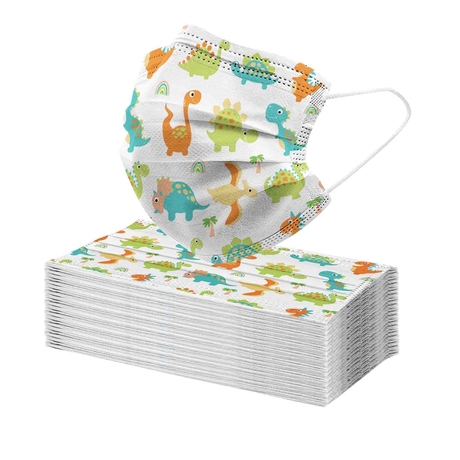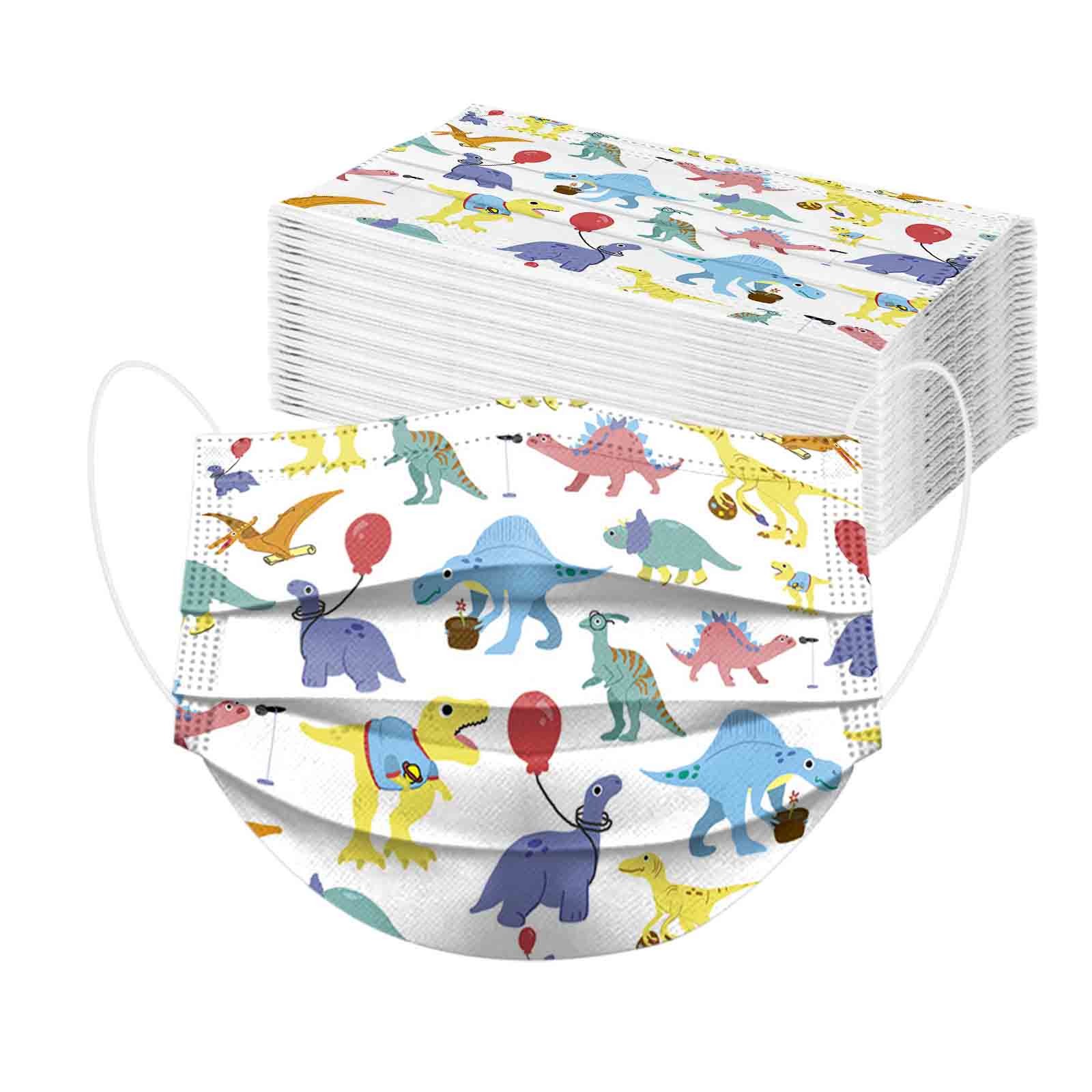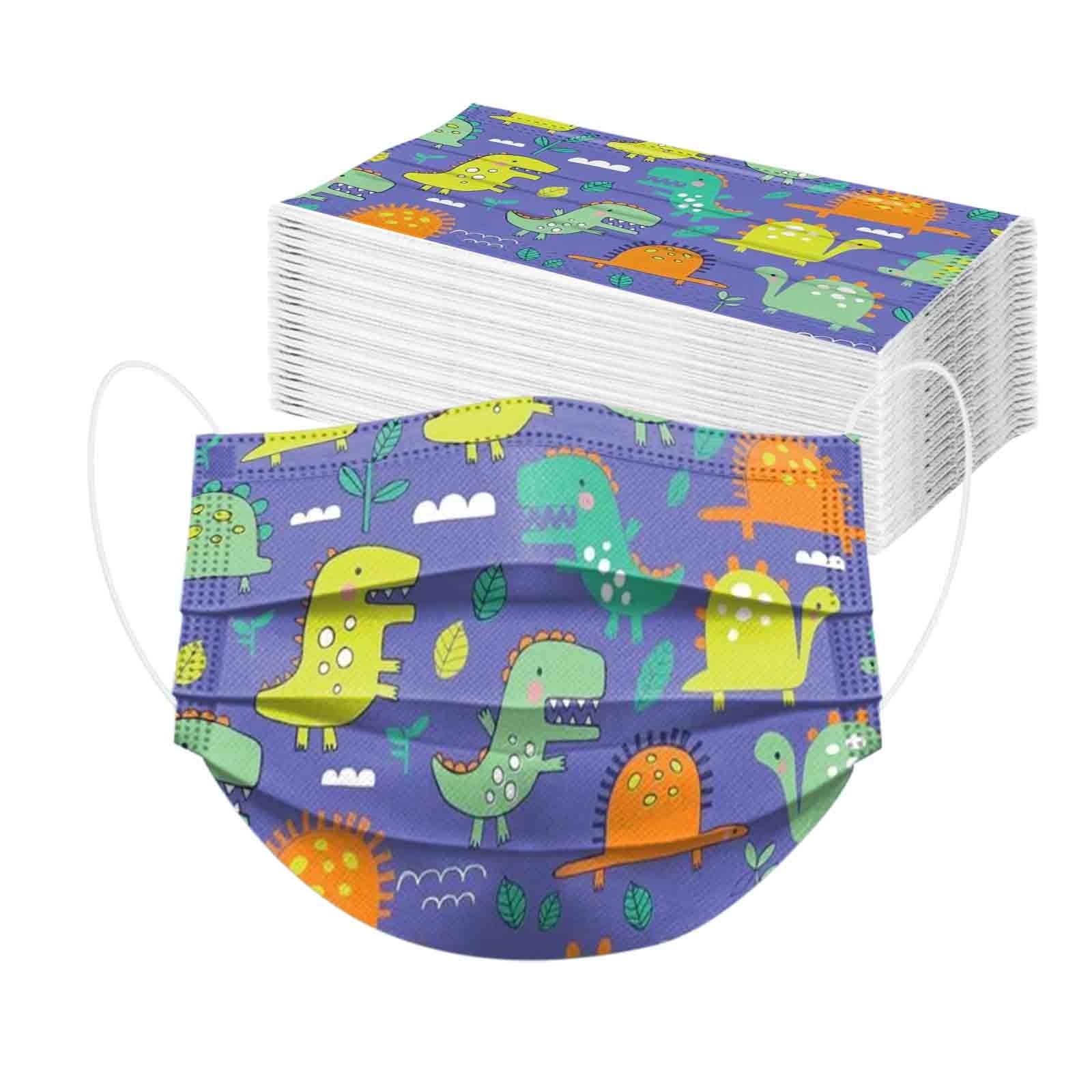50PCS Children Kids Colorful Dinosaur Prints 3 Layer Disposable Face Masks