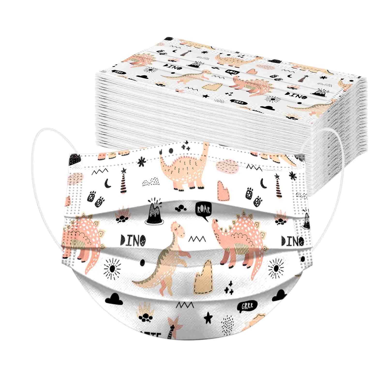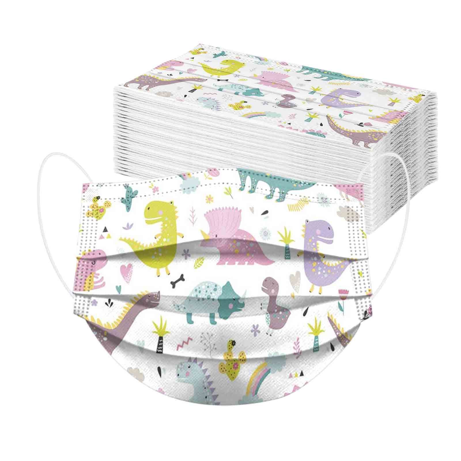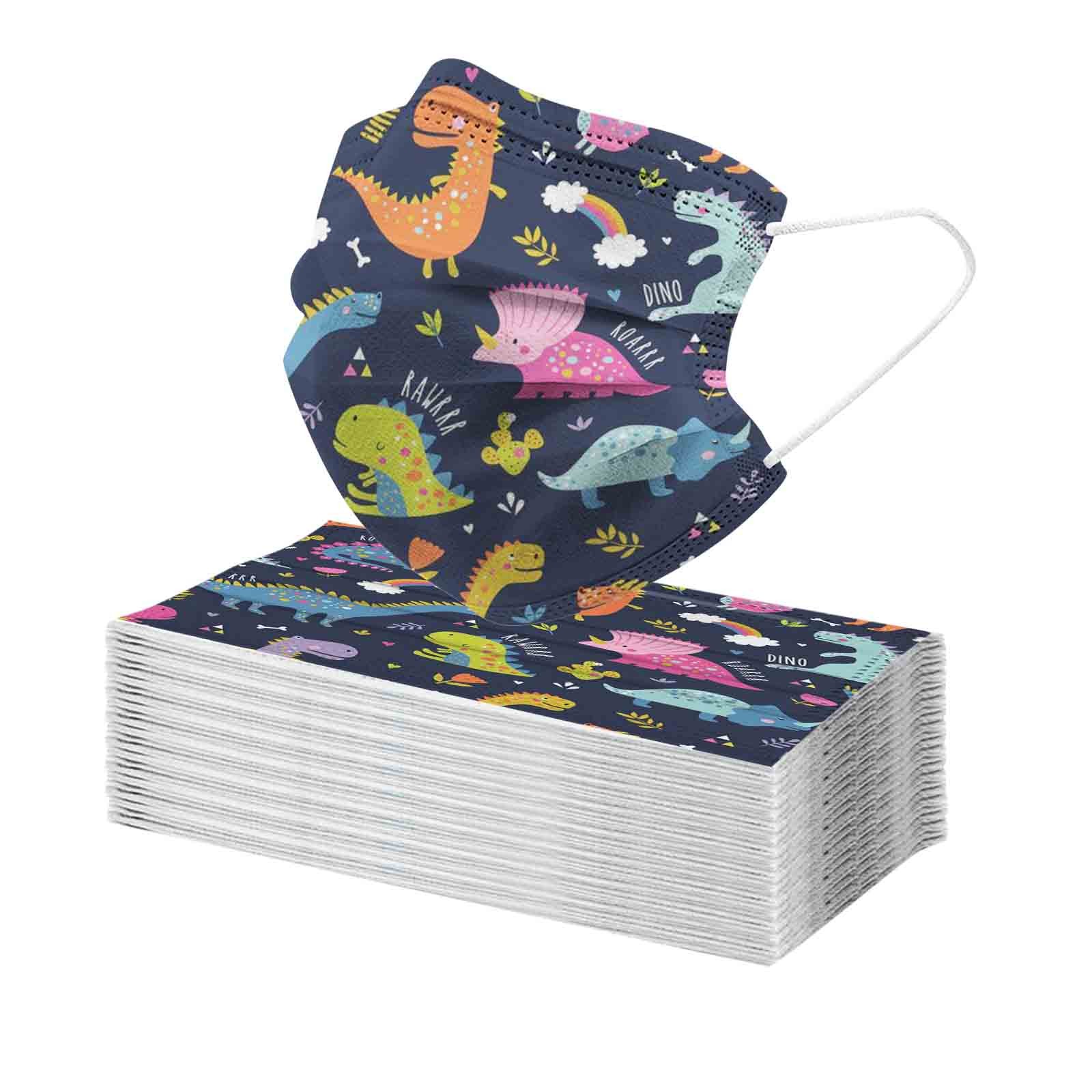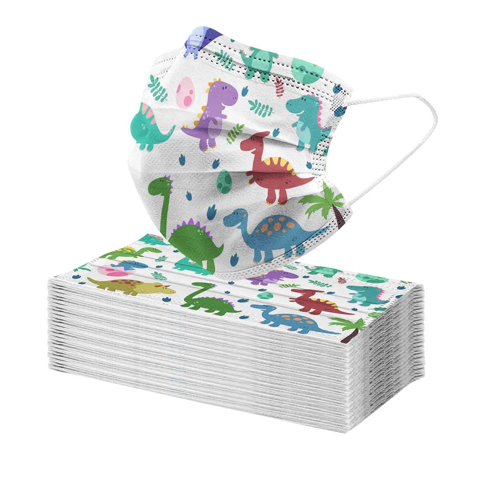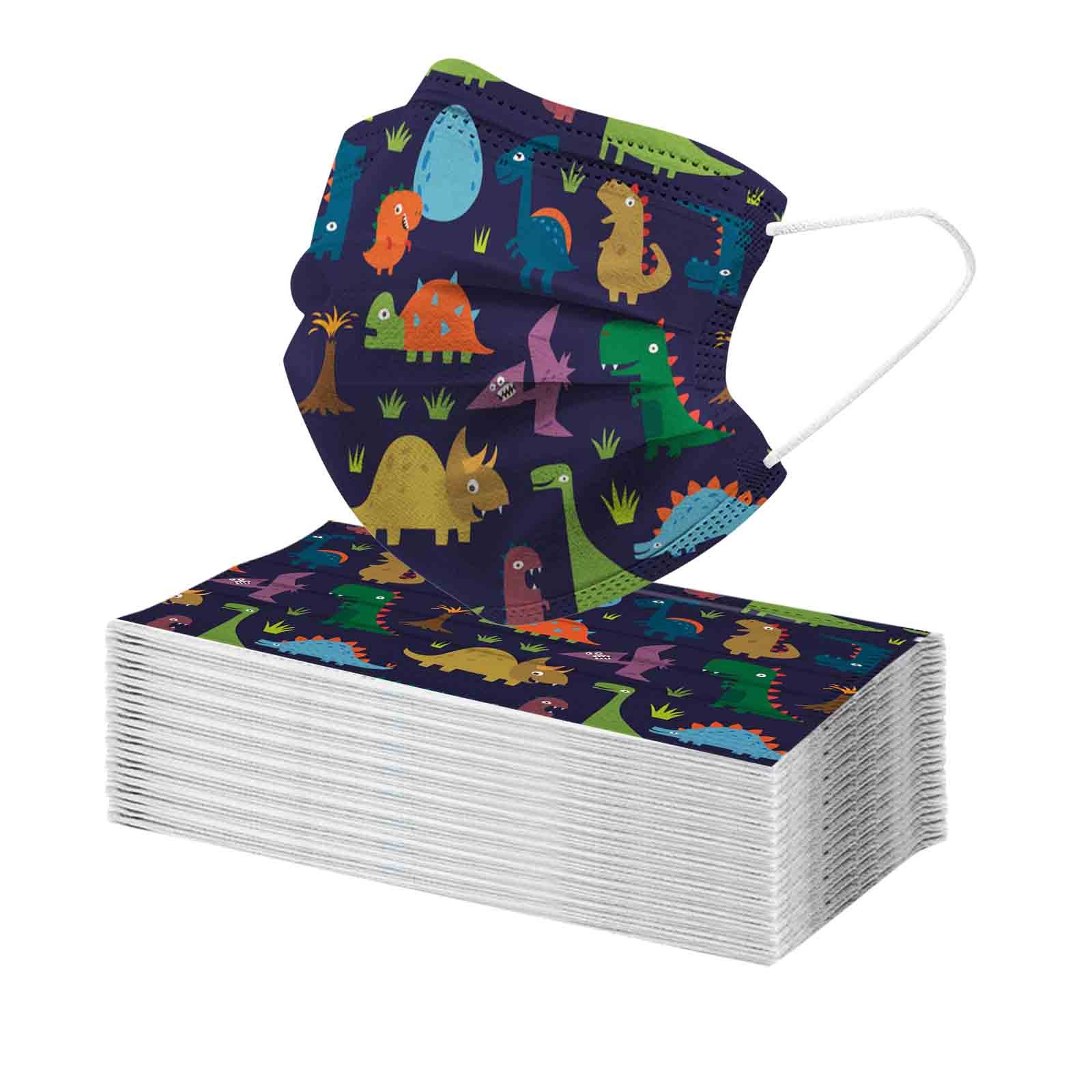 50PCS Children Kids Colorful Dinosaur Prints 3 Layer Disposable Face Masks