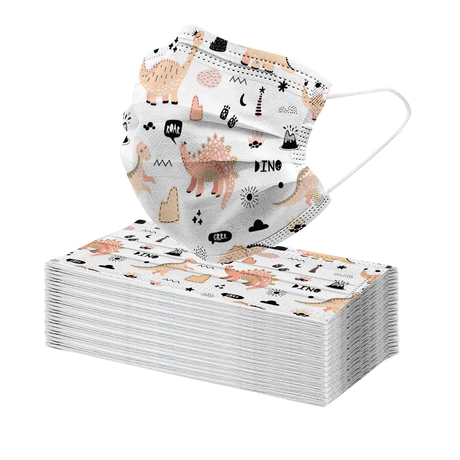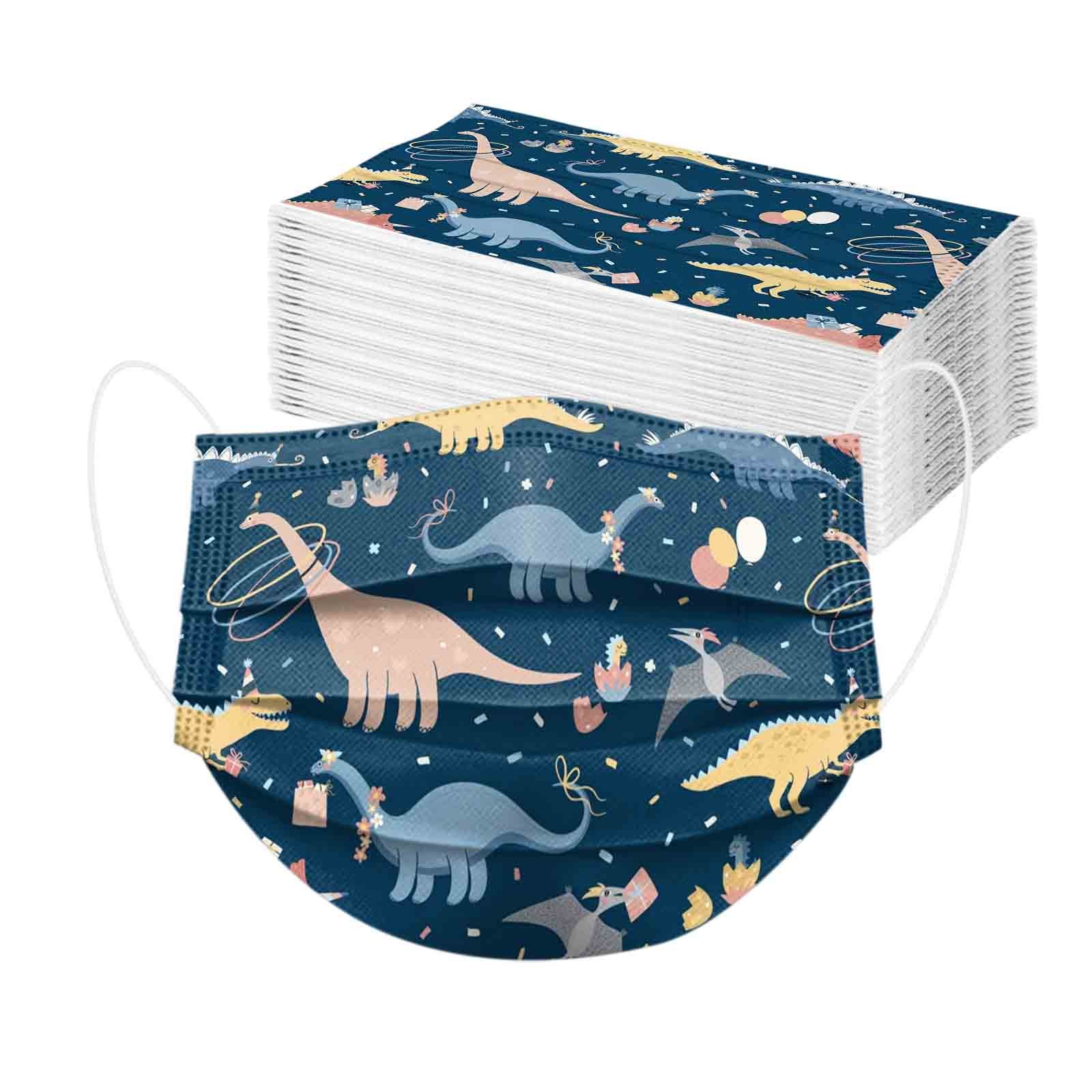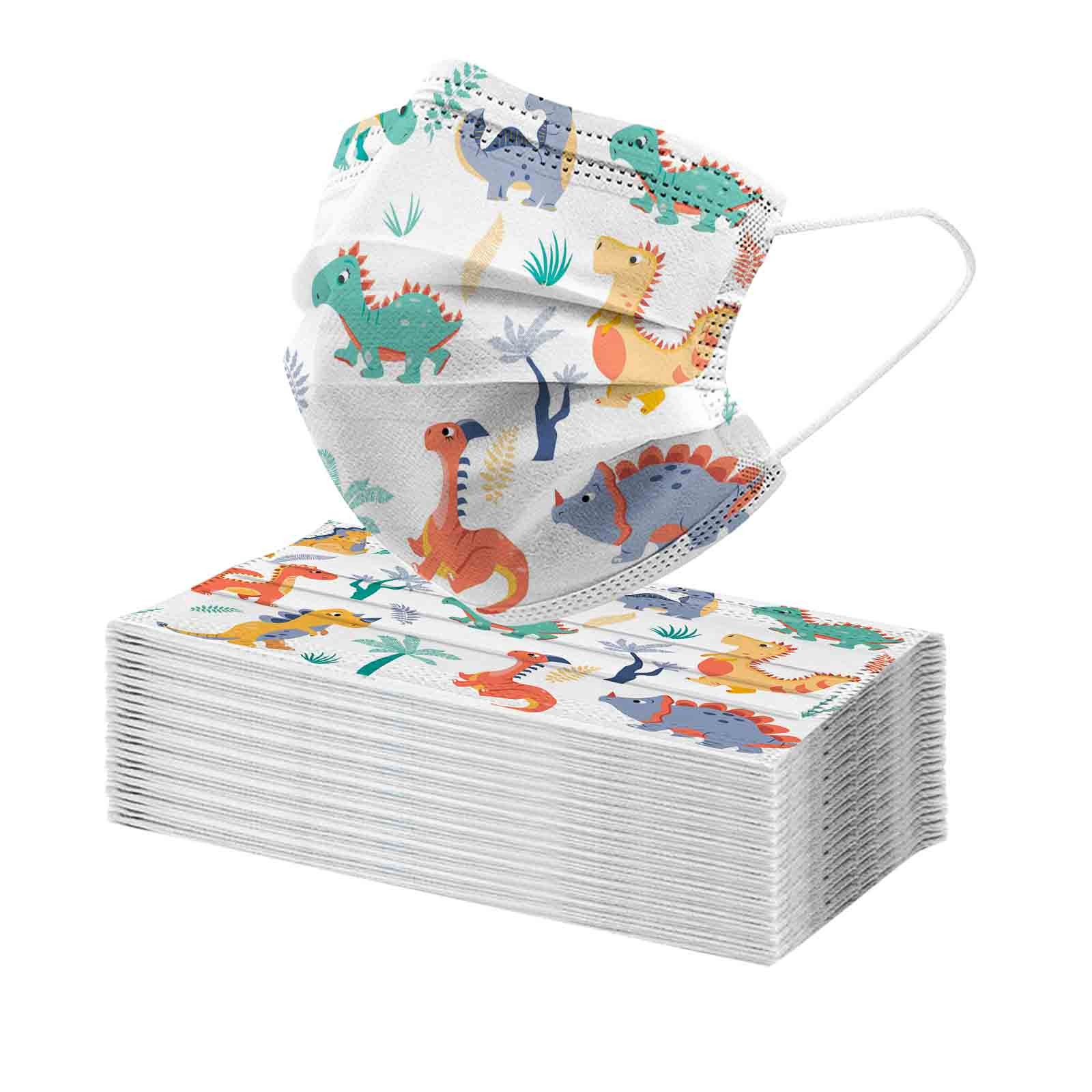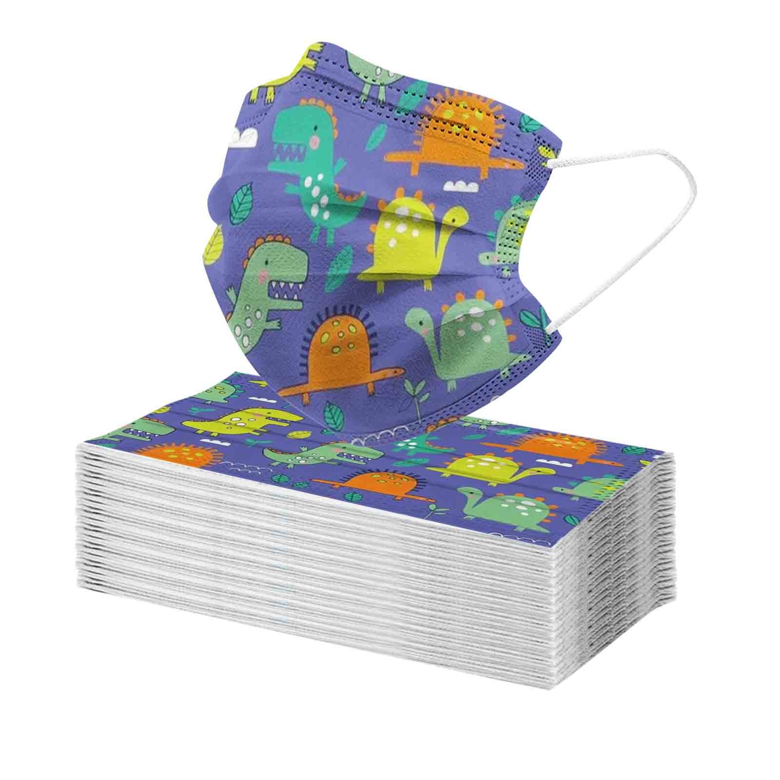 50PCS Children Kids Colorful Dinosaur Prints 3 Layer Disposable Face Masks
