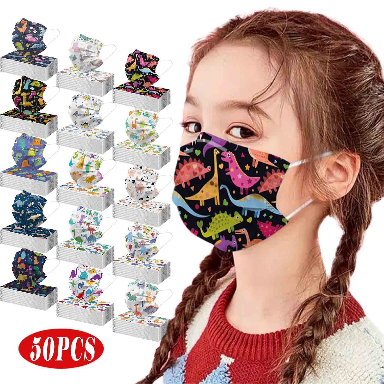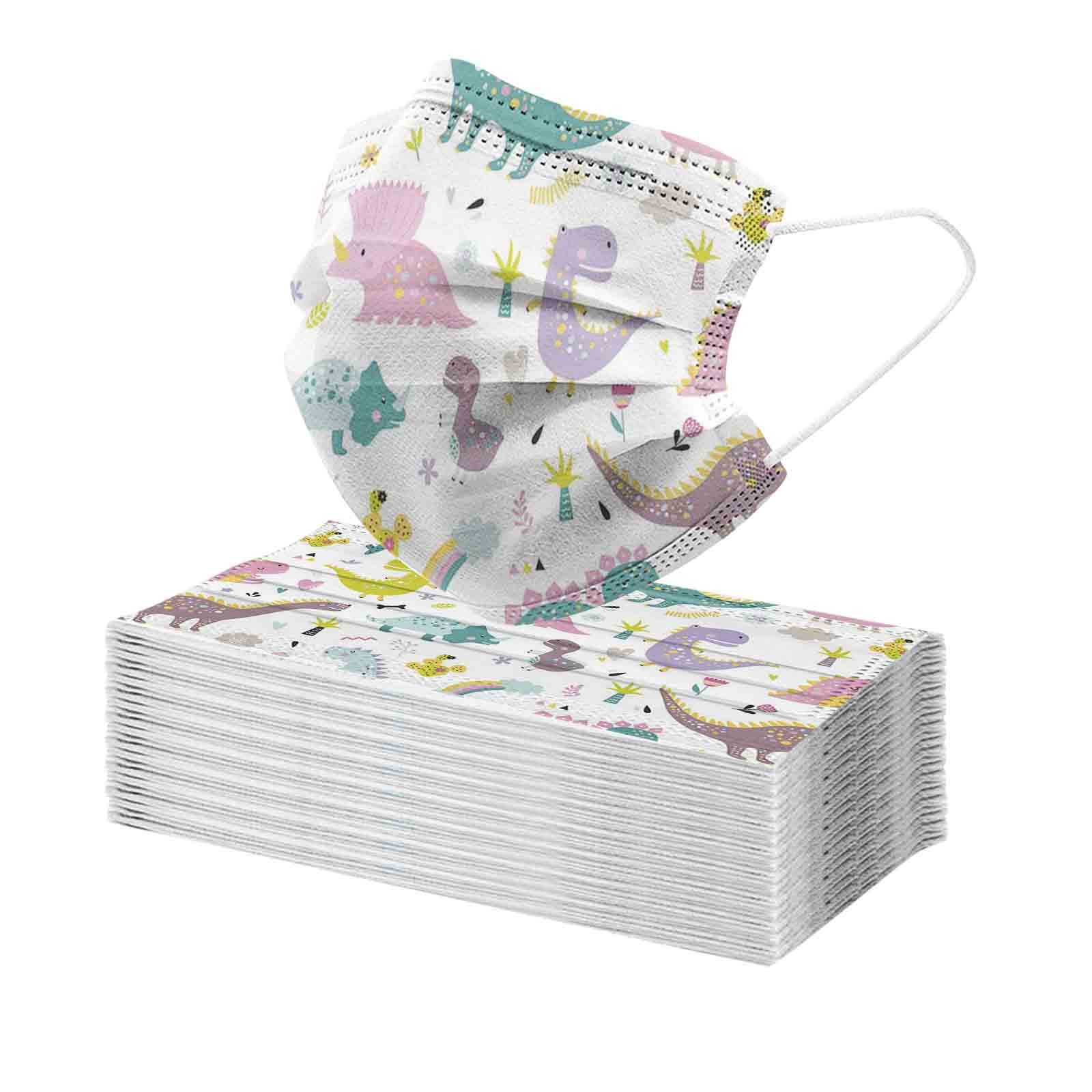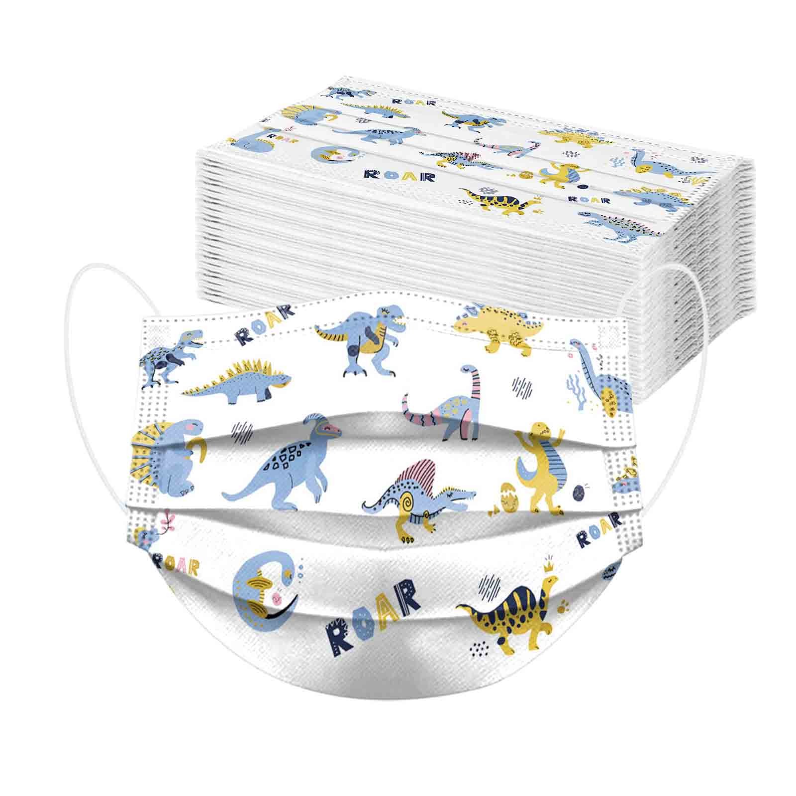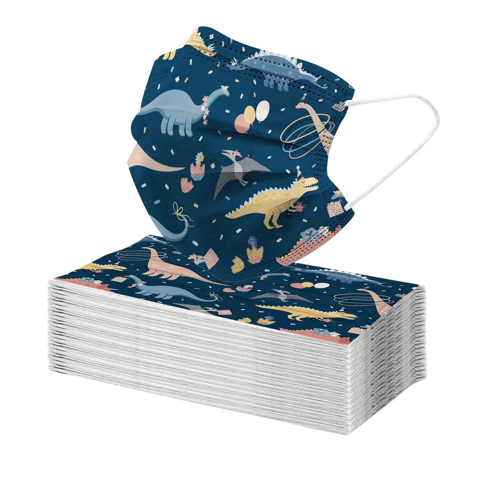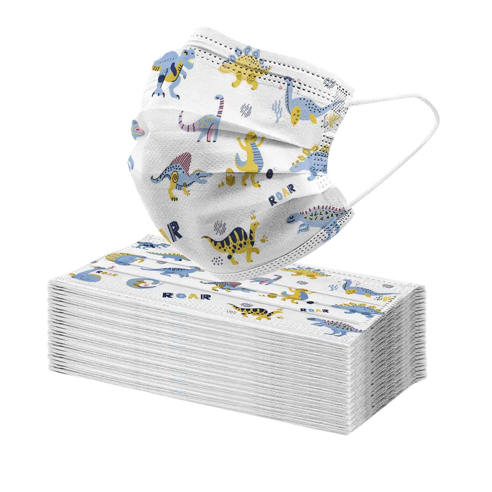 50PCS Children Kids Colorful Dinosaur Prints 3 Layer Disposable Face Masks