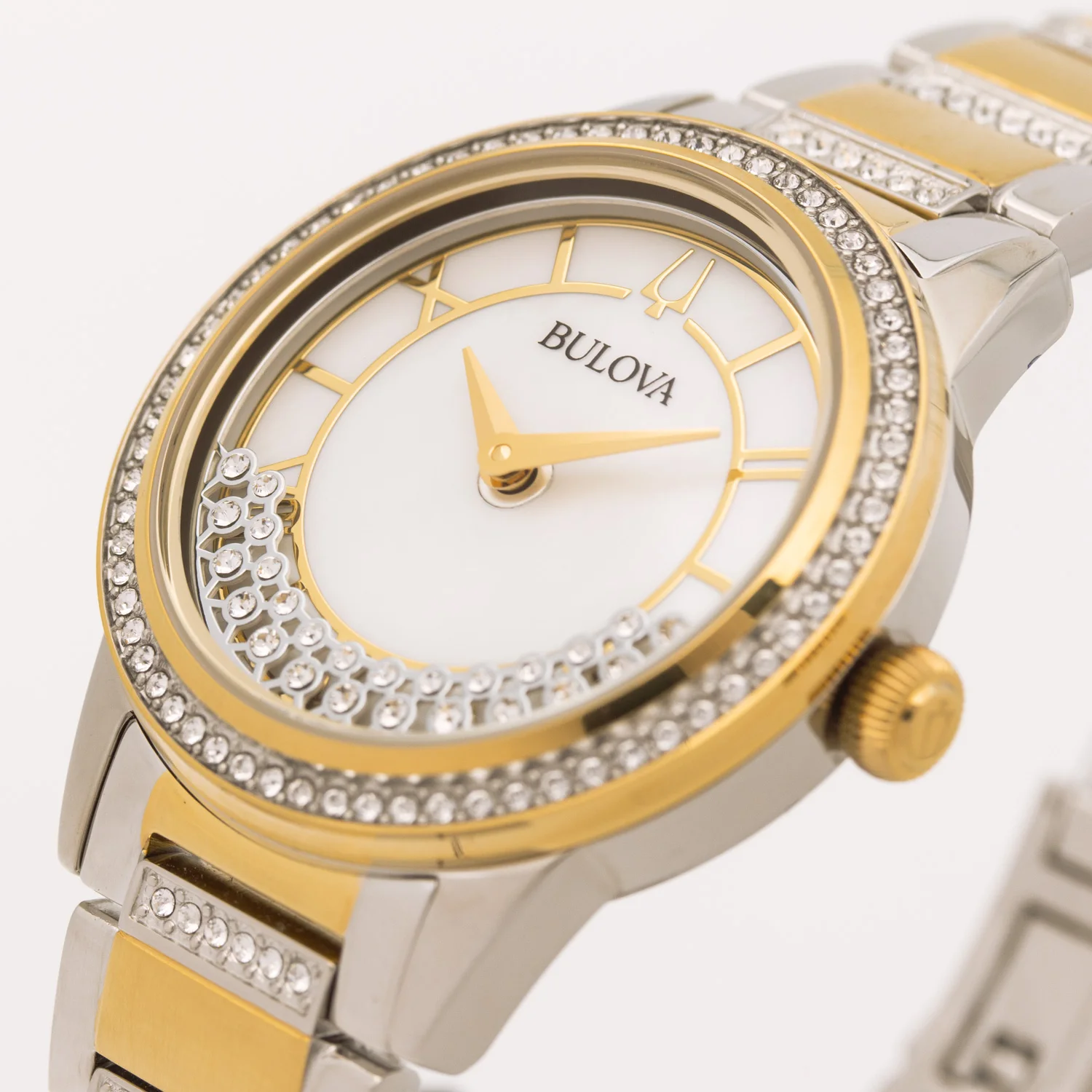 Кварцевые часы. Водостойкость WR 30. Часы, минуты. Корпус выполнен из нержавеющей стали с частичным IP покрытием. Диаметр корпуса 33 мм. Минеральное стекло. Браслет выполнен из нержавеющей стали с частичным IP покрытием. Часы украшены кристаллами.