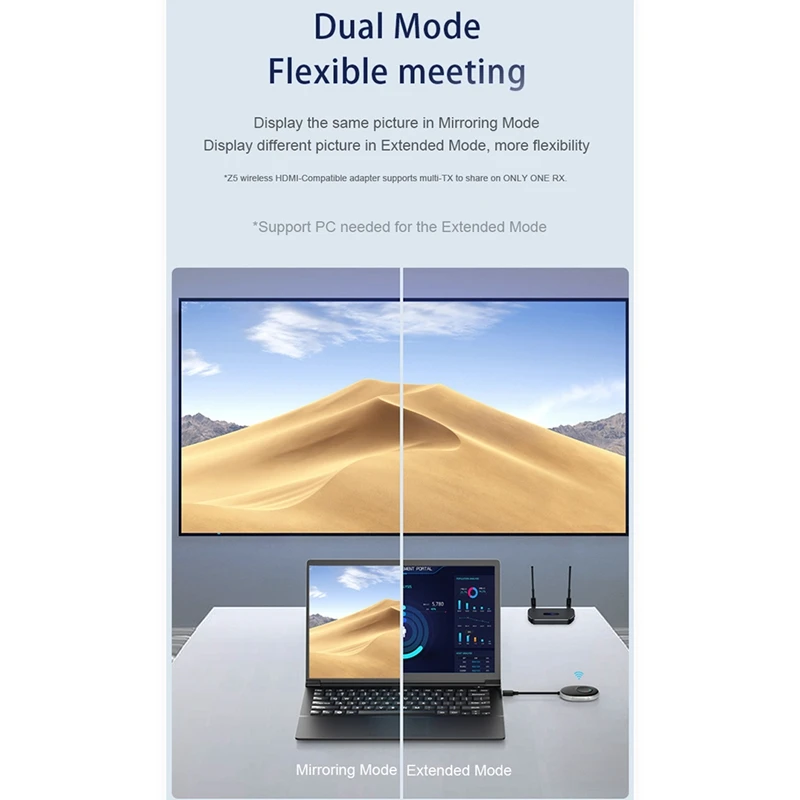 [Режим «много за один»] 8 передатчиков могут быть подключены к 1 приемнику одновременно, одним нажатием переключателя, не мешают друг другу, и несколько экранов могут быть разделены.