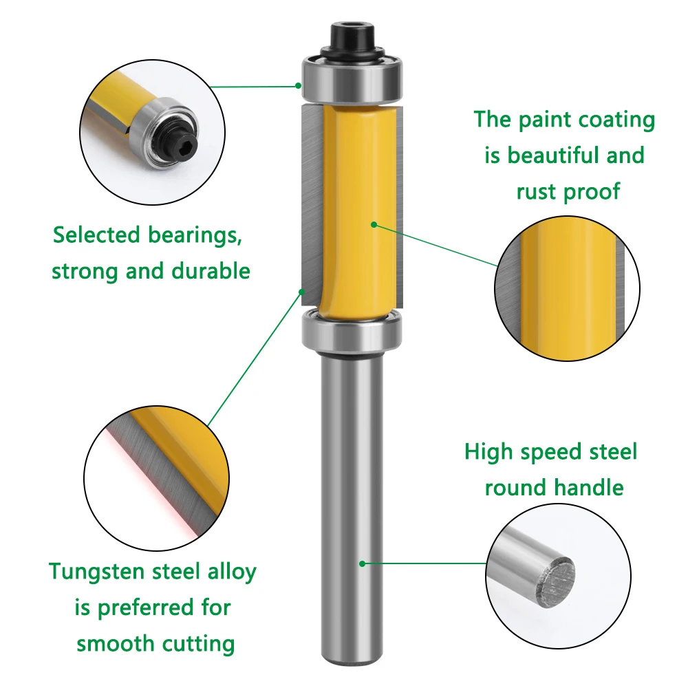 LAVIE 1 шт., 8 мм хвостовик, двойной подшипник, прямой, 1 дюйм, отделка, фрезы, Фрезерный нож, резак, карбид, флеш, деревообработка