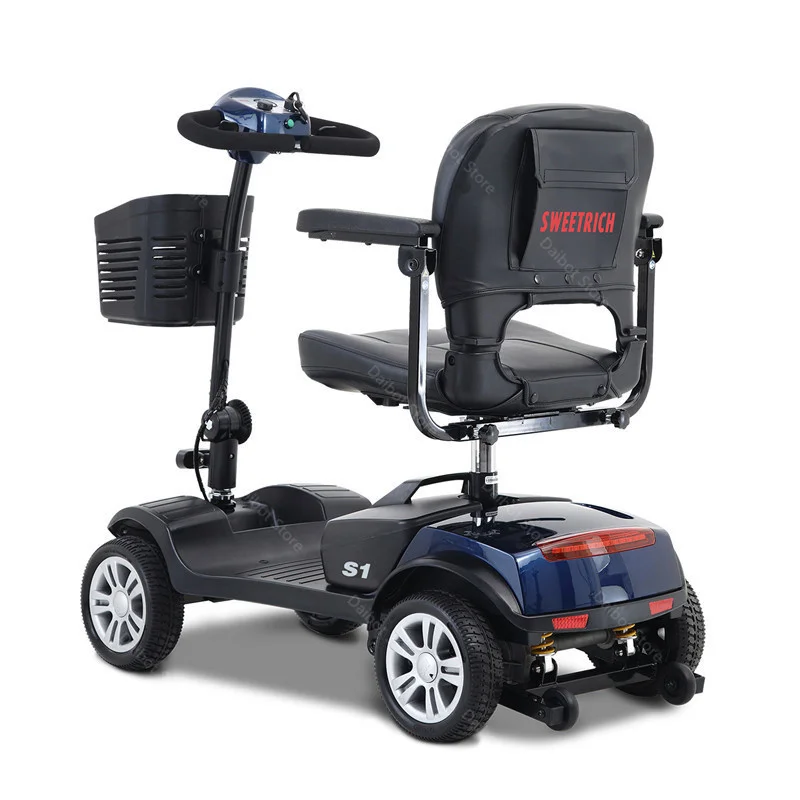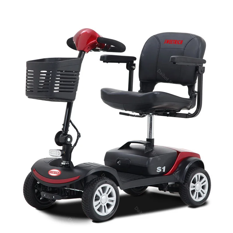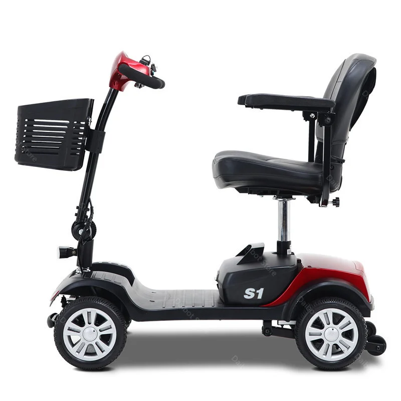 Электрический скутер для пожилых людей с 4 колесами, S1-Red/Синий, 24 В, 300 Вт, портативный складной электрический скутер
