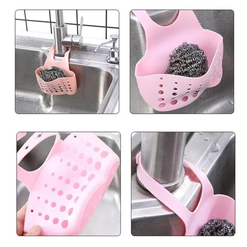 It can be hung on the faucet in the kitchen or bathroom to prevent sponges, towels, razors, etc. The bottom is hollowed out and drained, which is not easy to breed bacteria.