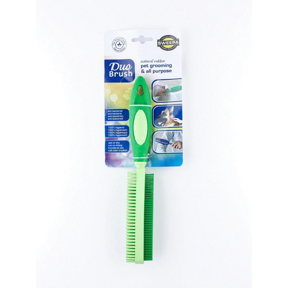 Щетка «Двуликий Янус» изготовлена из экологически чистого, натурального и гипоаллергенного каучука. Специалисты компании SWEEPA разработали уникальную технологию, благодаря которой изделия из каучука обладают потрясающей износостойкостью и долговечностью. Кроме того, щетина из натурального каучука отлично притягивает пушинки, ворсинки, пыль и т.д. Одна сторона с коротким, жестким и толстым ворсом предназначена для быстрой очистки мягкой мебели и ковровых покрытий от шерсти животных, пыли и прочего мелкого мусора. Ею же можно почистить сидения в автомобиле. Другая сторона щетки с густым тонким и коротким ворсом прекрасно справится с очисткой одежды из меха и шерсти, мягкой мебели, изделий из замши, нубука и т.д. Она подходит и для расчесывания домашних любимцев с короткой шерстью, которым такая процедура доставляет большое удовольствие. Во влажном виде щетку можно использовать для мытья ванн, раковин и кафеля (для сложных загрязнений — с мылом или мягкими моющими средствами).