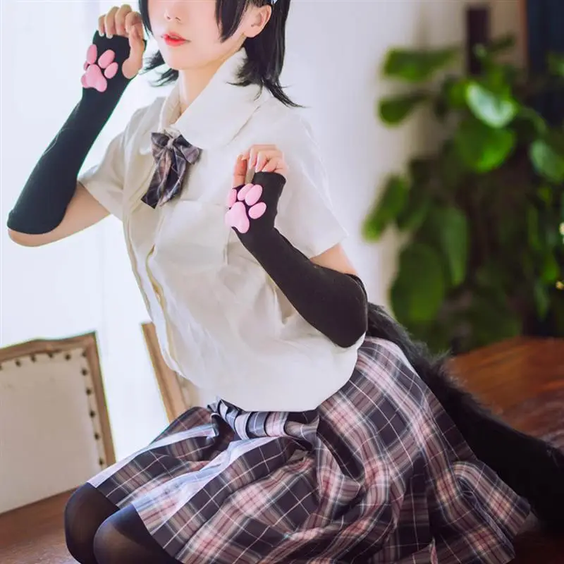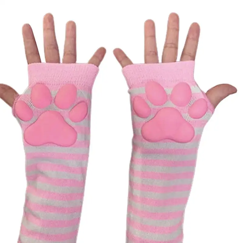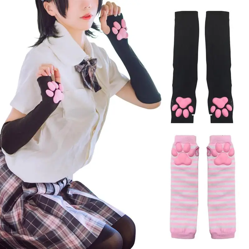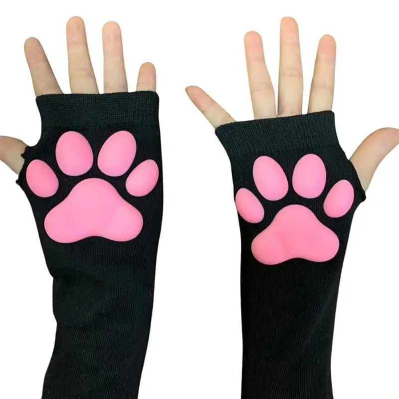 Kawaii, варежки с кошачьей лапой, перчатки с 3D пальцами, бобы, перчатки без пальцев, кошачьи лапы, накладки, рукава, кошки, аксессуары для косплея
