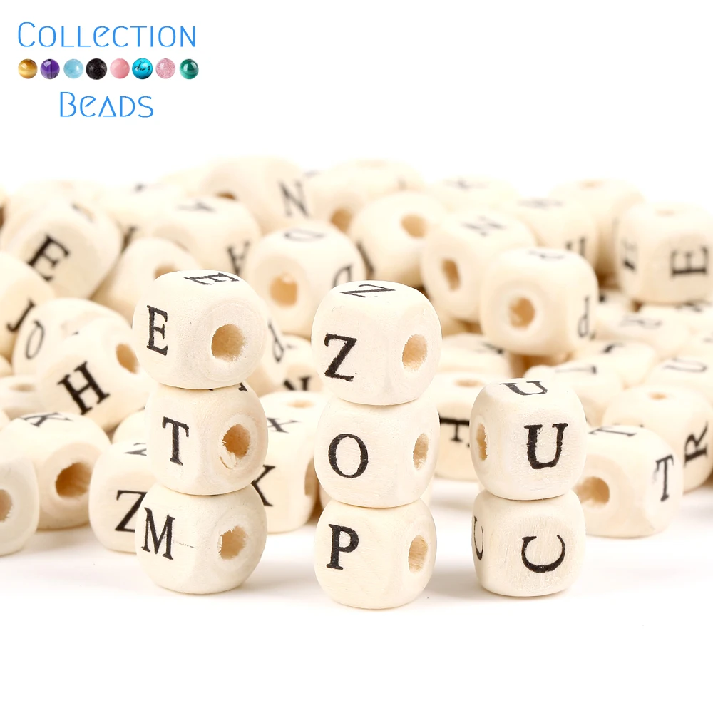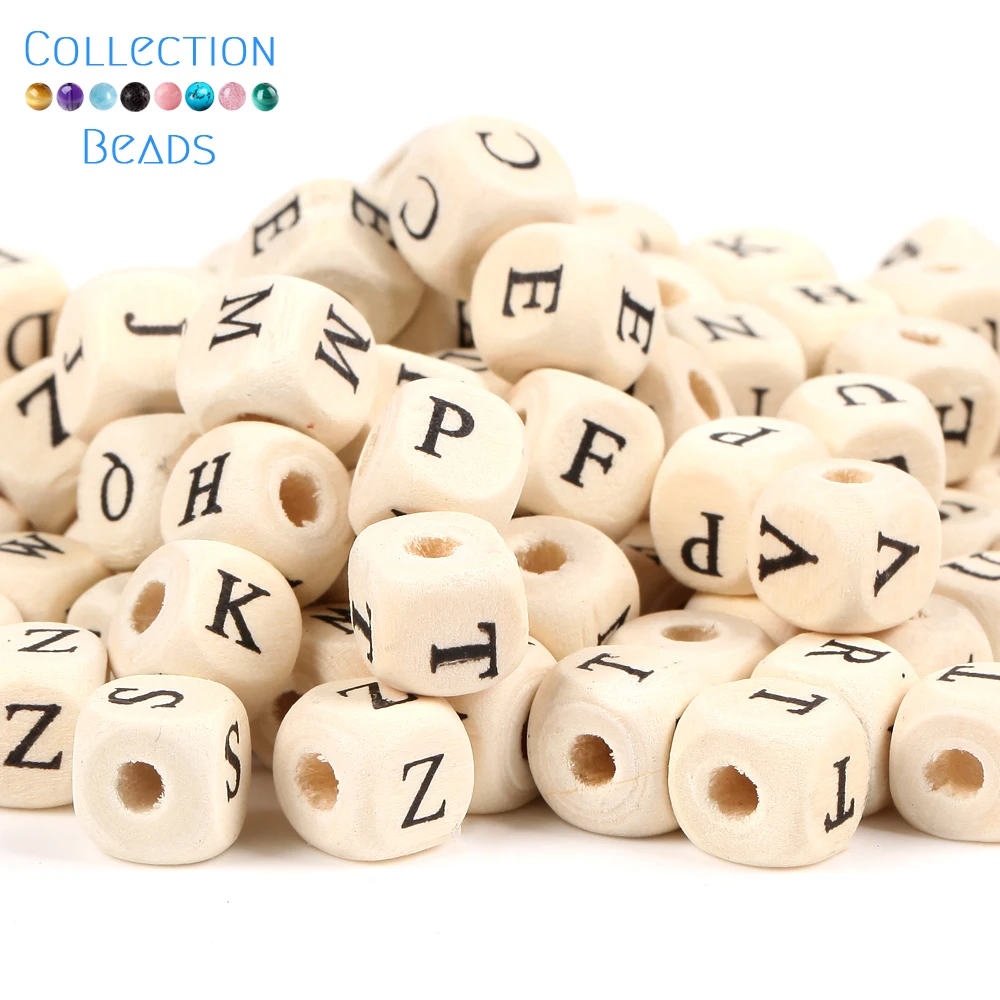 50-200 шт./лот, натуральные смешанные деревянные бусины с буквенным алфавитом, Квадратные бусины для DIY браслета, украшения, аксессуары для прорезывания зубов для малышей