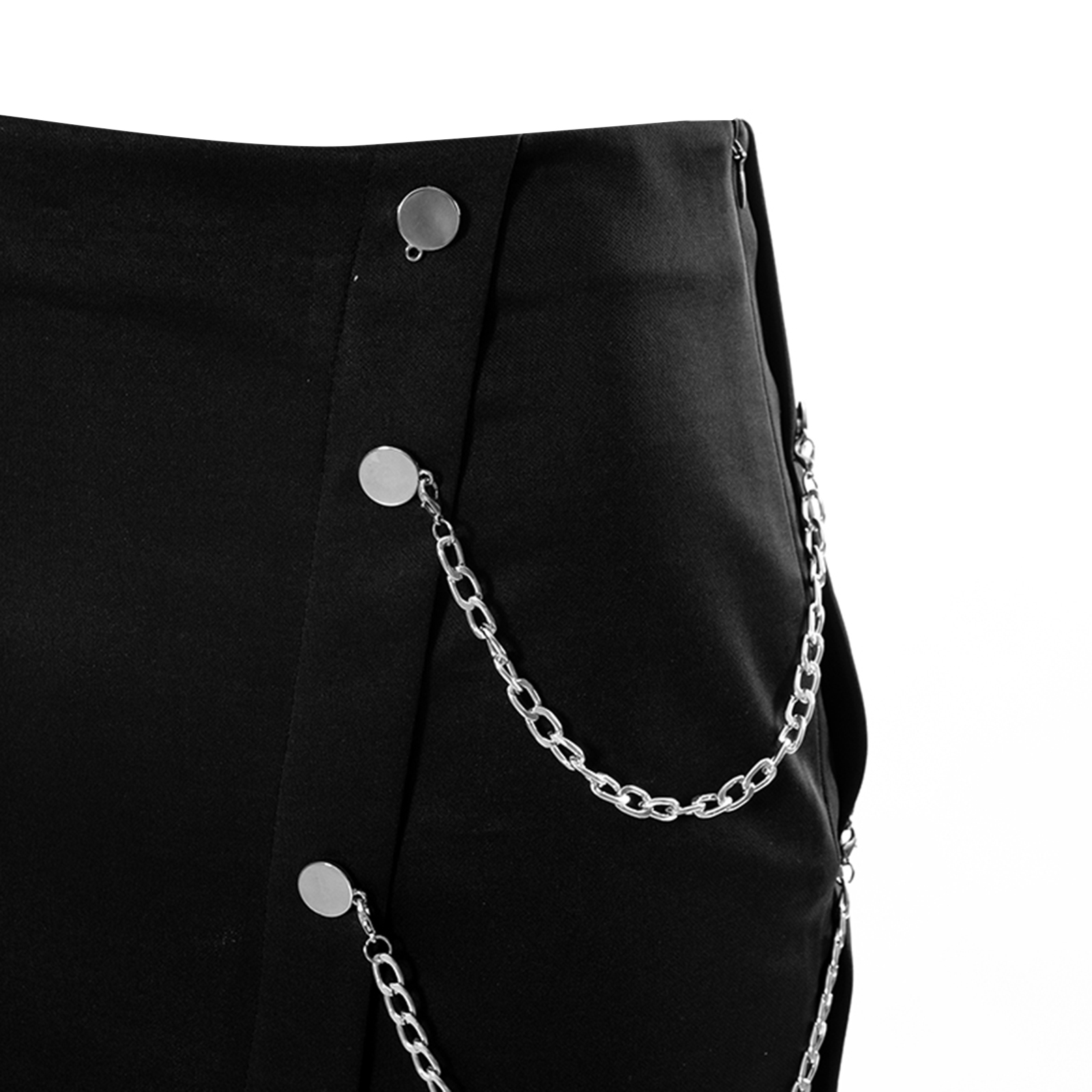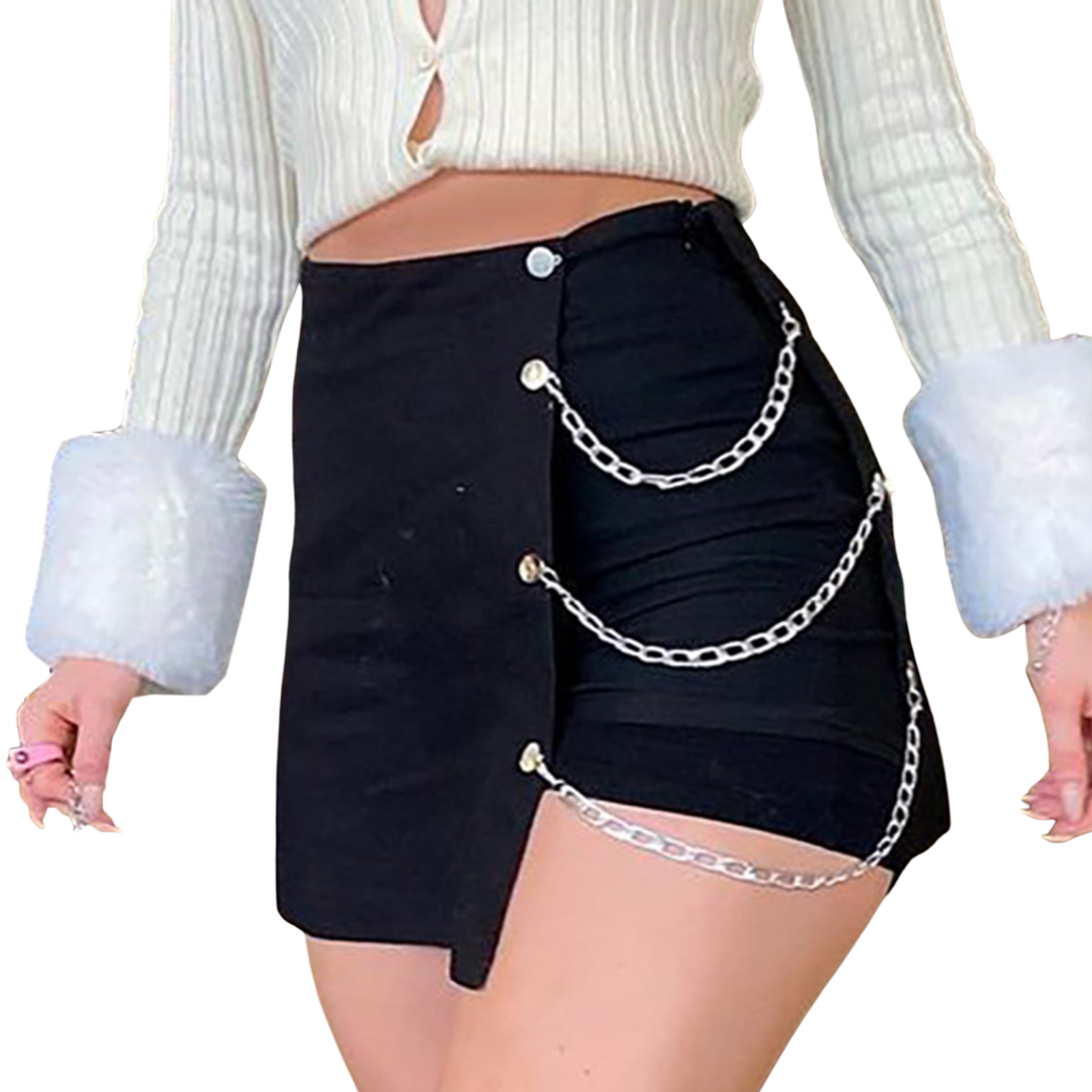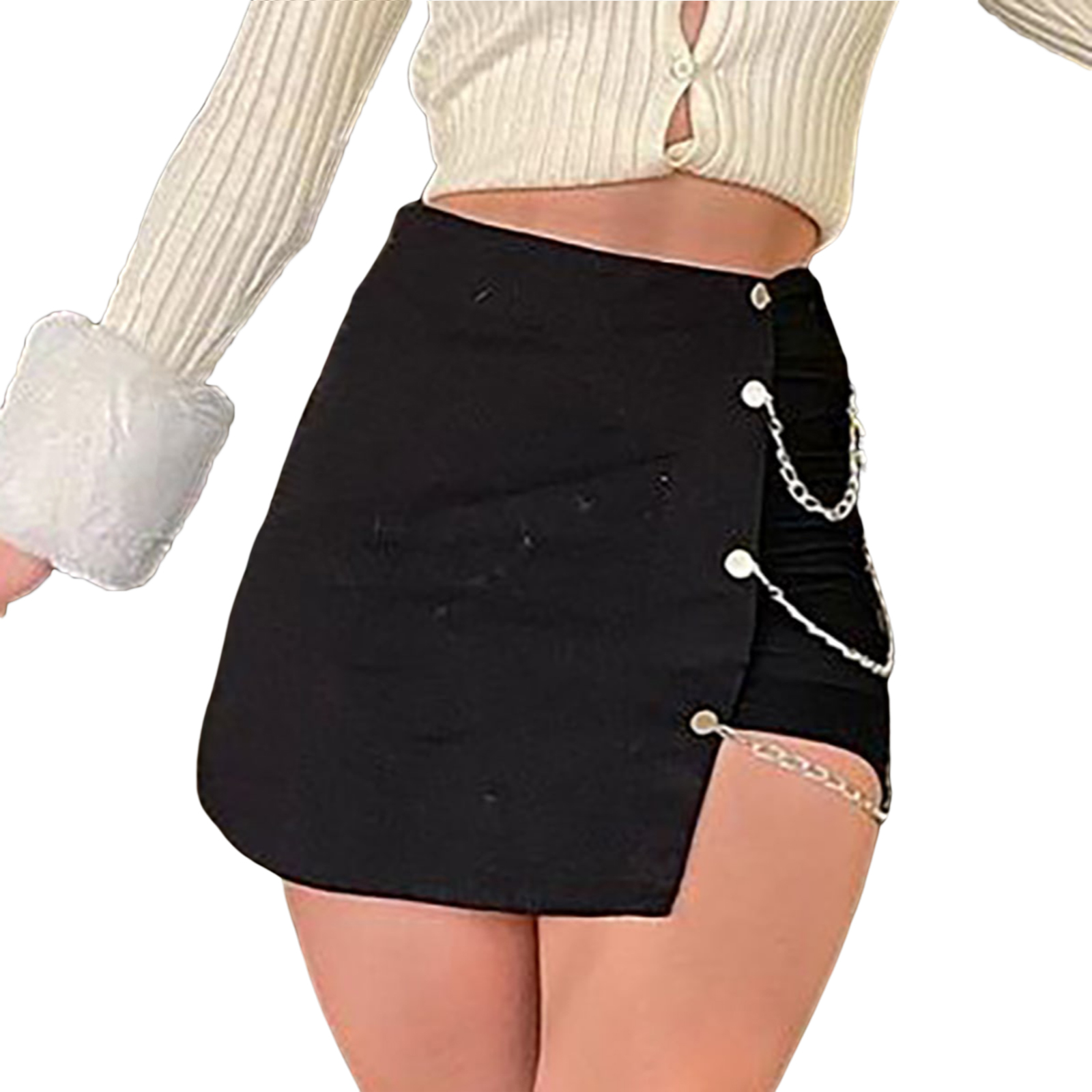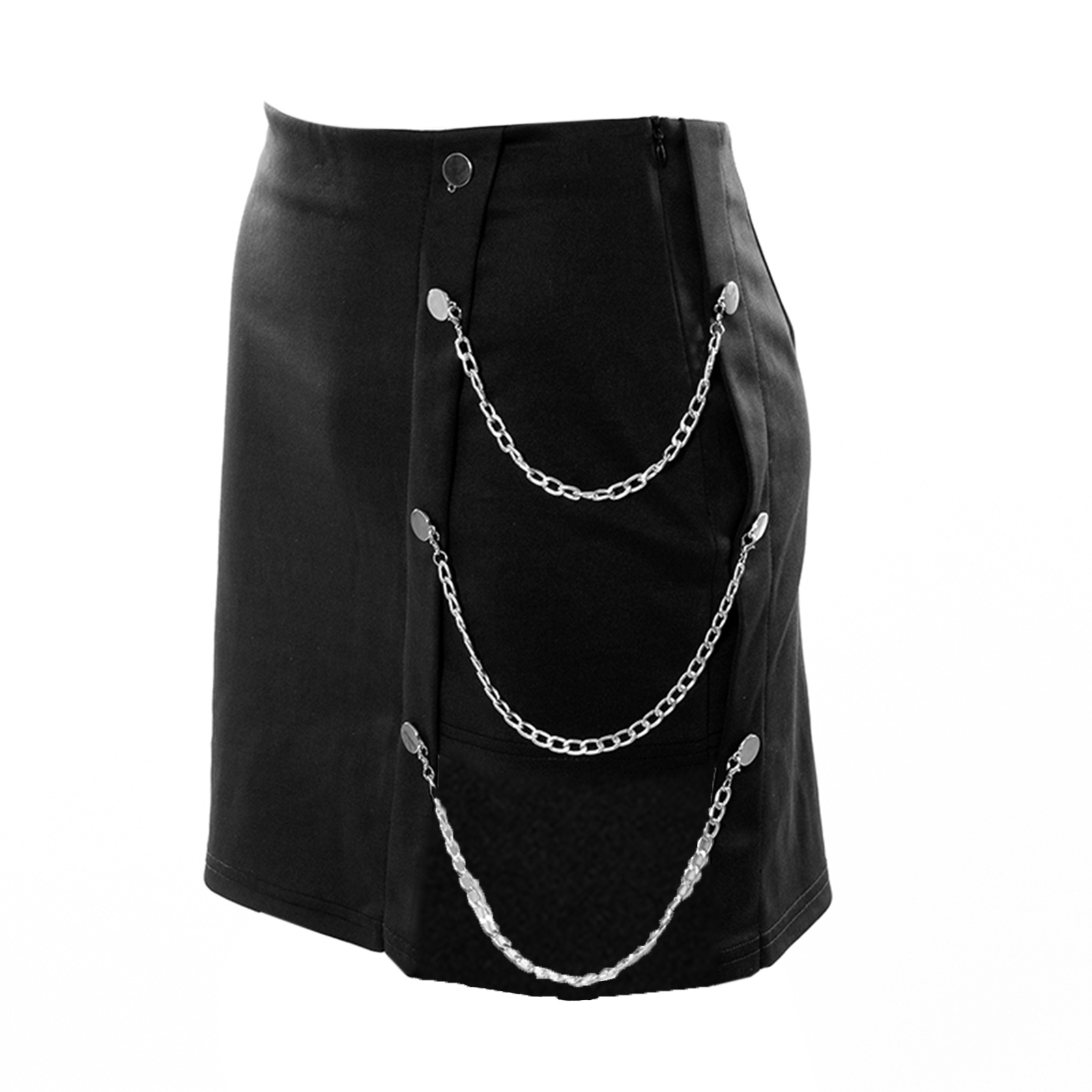 Женское платье средней длины, с высокой талией, в стиле ретро, с металлической цепочкой, повседневная, летняя, Весенняя юбка, Черная