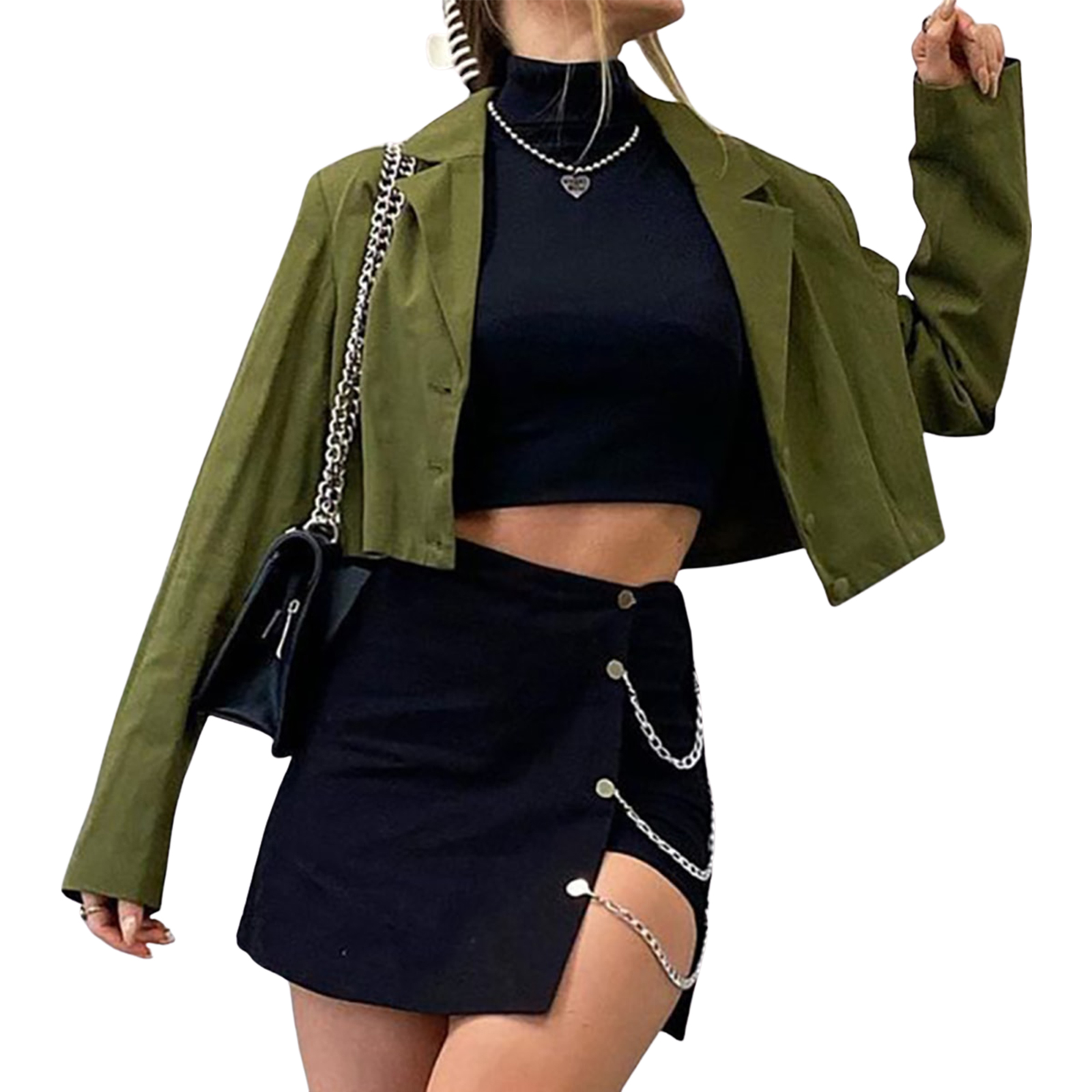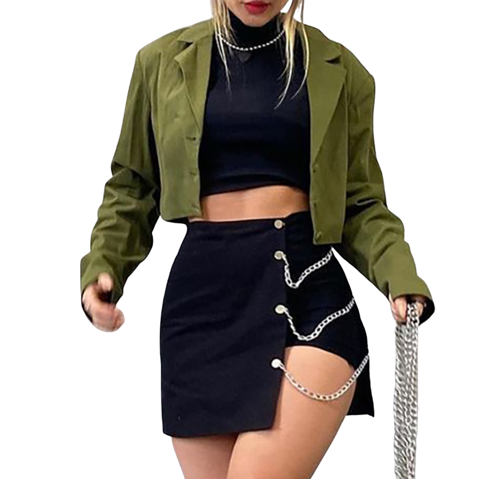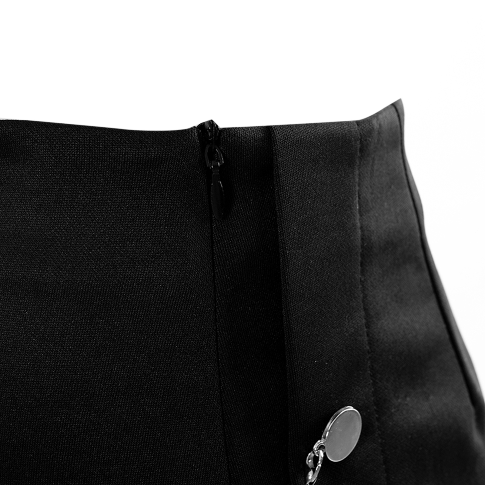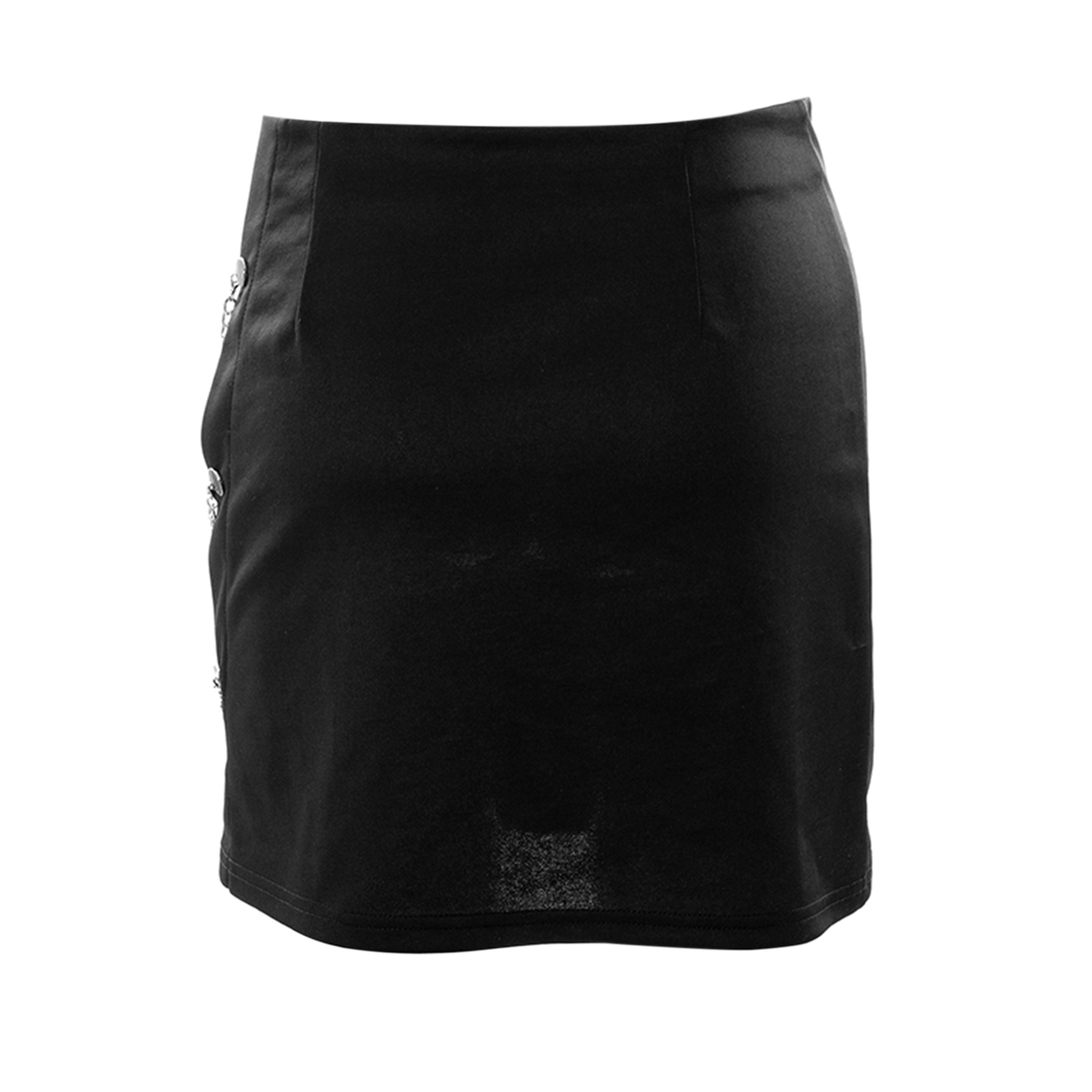 Женское платье средней длины, с высокой талией, в стиле ретро, с металлической цепочкой, повседневная, летняя, Весенняя юбка, Черная