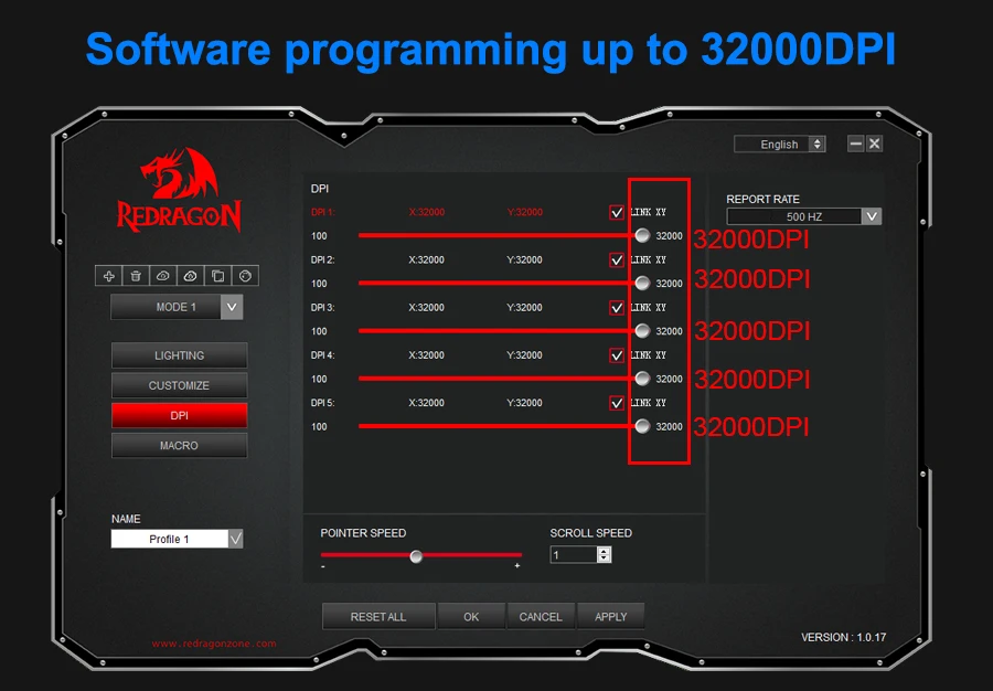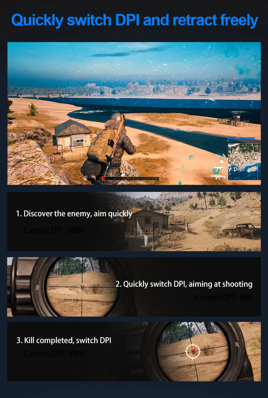 Чип обеспечивает 100 ~ 32000dpi DPI (пользовательский регулируемый)