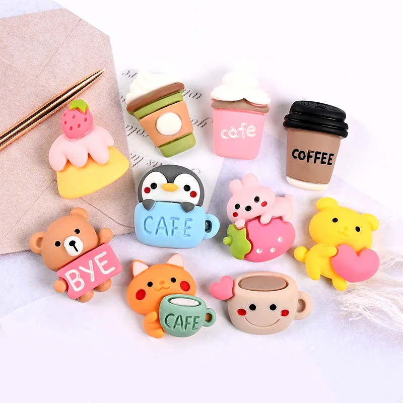 10/20 шт. Kawaii чашки медведь с плоской задней частью смолы DIY бант заколка для волос, поделки декор материалы патч-чехол для телефона