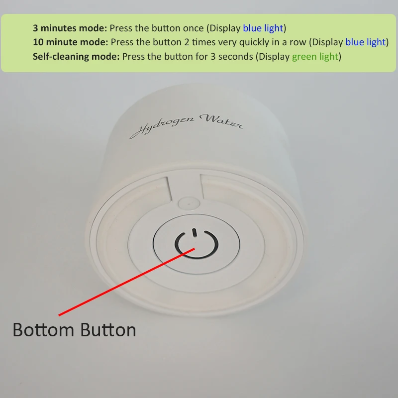 Остановка работы: когда генератор водородной воды работает, нажмите кнопку один раз, он перестанет работать, и светильник выключен.