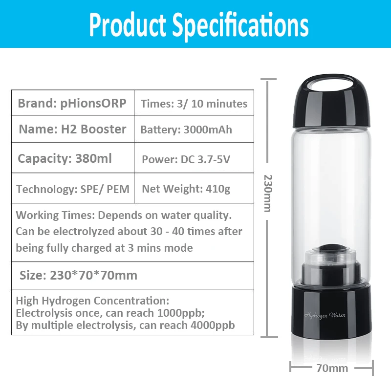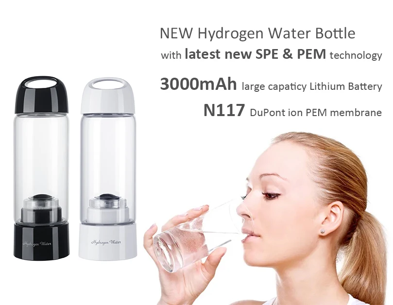SPE/PEM портативный богатый водородный генератор бутылка для воды стеклянная чашка 3000 мАч электролиз самоочищающаяся водородная колба H2 водонагреватель
