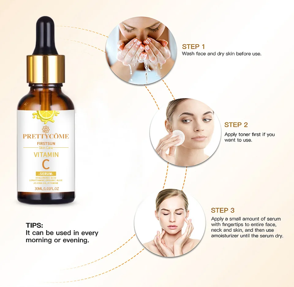 Advantage :Highly concentrated plant-based hyaluronic acid deeply hydrates skin cells,Fortified with Vitamin C & Vitamin E to add a powerful 1-2 anti-aging punch,Potent & effective natural ingredients absorb fast without clogging pores, irritating sensitive skin, or leaving that sticky residue that other serums do.Vitamin C provides your skin with the antioxidants it needs to defend itself from the aging effects of invisible aggressors.