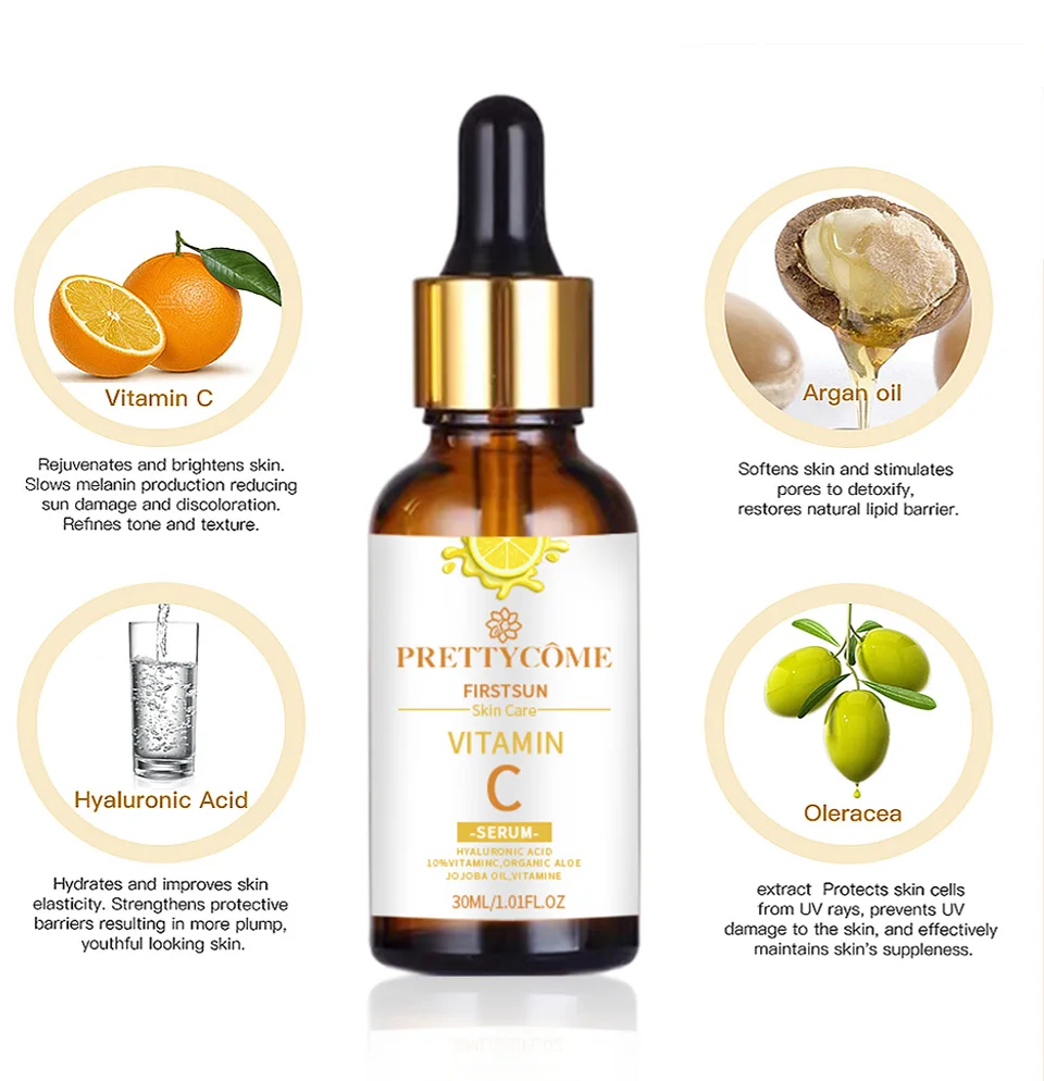 PRETTYCOME Vitamin C Face Serum Whitening Hyaluronic Acid Anti-Wrinkle Anti-Aging Moisturizing Fade Dark Spot Facial Care Serum