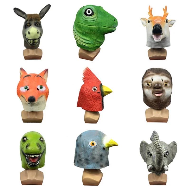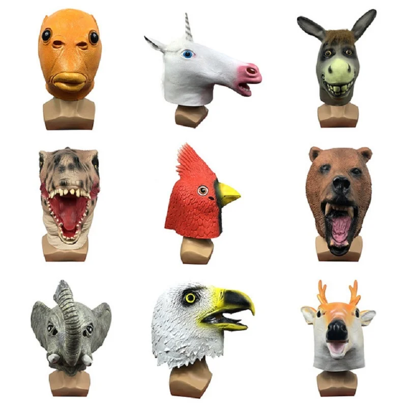 Смешной, латексный животное головной убор Маскарадная маска с милым принтом «Лев "Слон" Ослик Орел альпака "Панда" головной убор маска Хэллоуин вечерние реквизит
