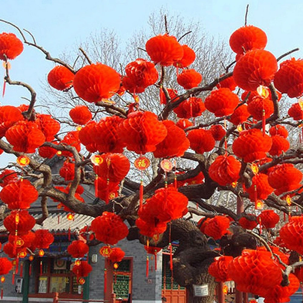 Традиционные Пластиковые Китайские красные бумажные Сотовые Фонари многоразовые весенние фестивальные подвесные украшения для дома на новый год