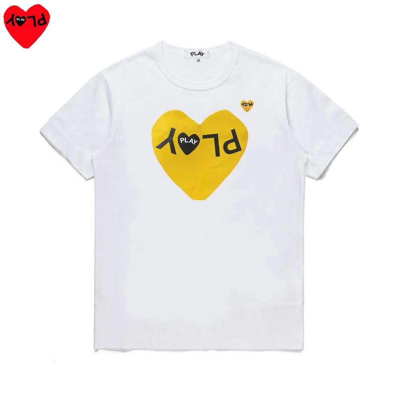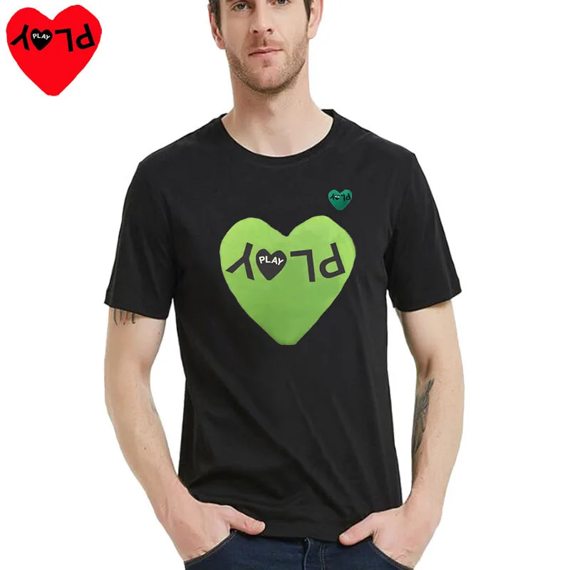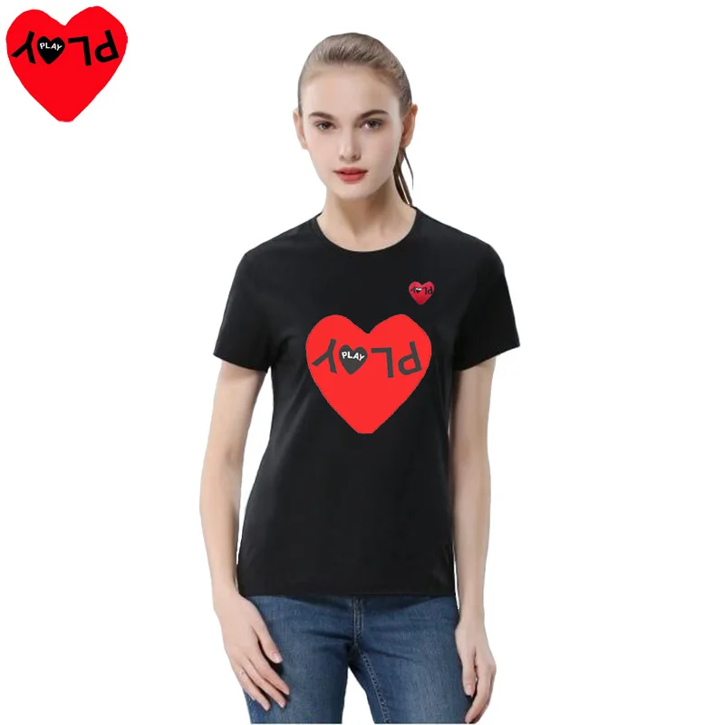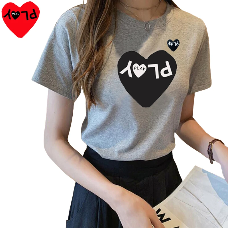 PLAY, мужская и женская футболка, хлопок, с буквенным принтом, с сердцем, с вышивкой, с круглым вырезом, с короткими рукавами, пуловер, летняя пара, свободная повседневная футболка