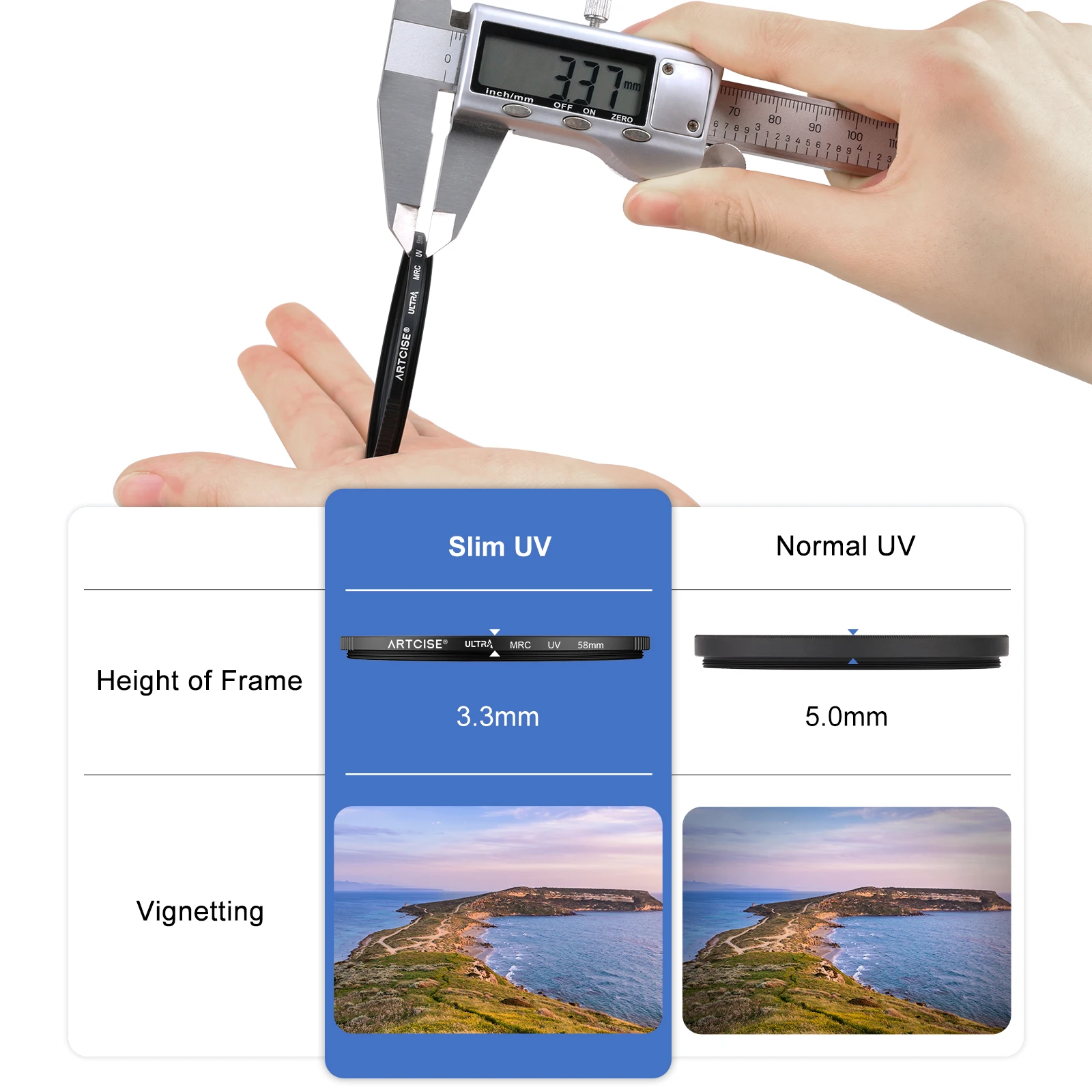 ARTCISE со сверхвысоким разрешением Ultra HD MC УФ фильтр с многослойным рамка только 3,3 мм без каширования и изображения по-прежнему четкости даже на телеобъективы объектива.