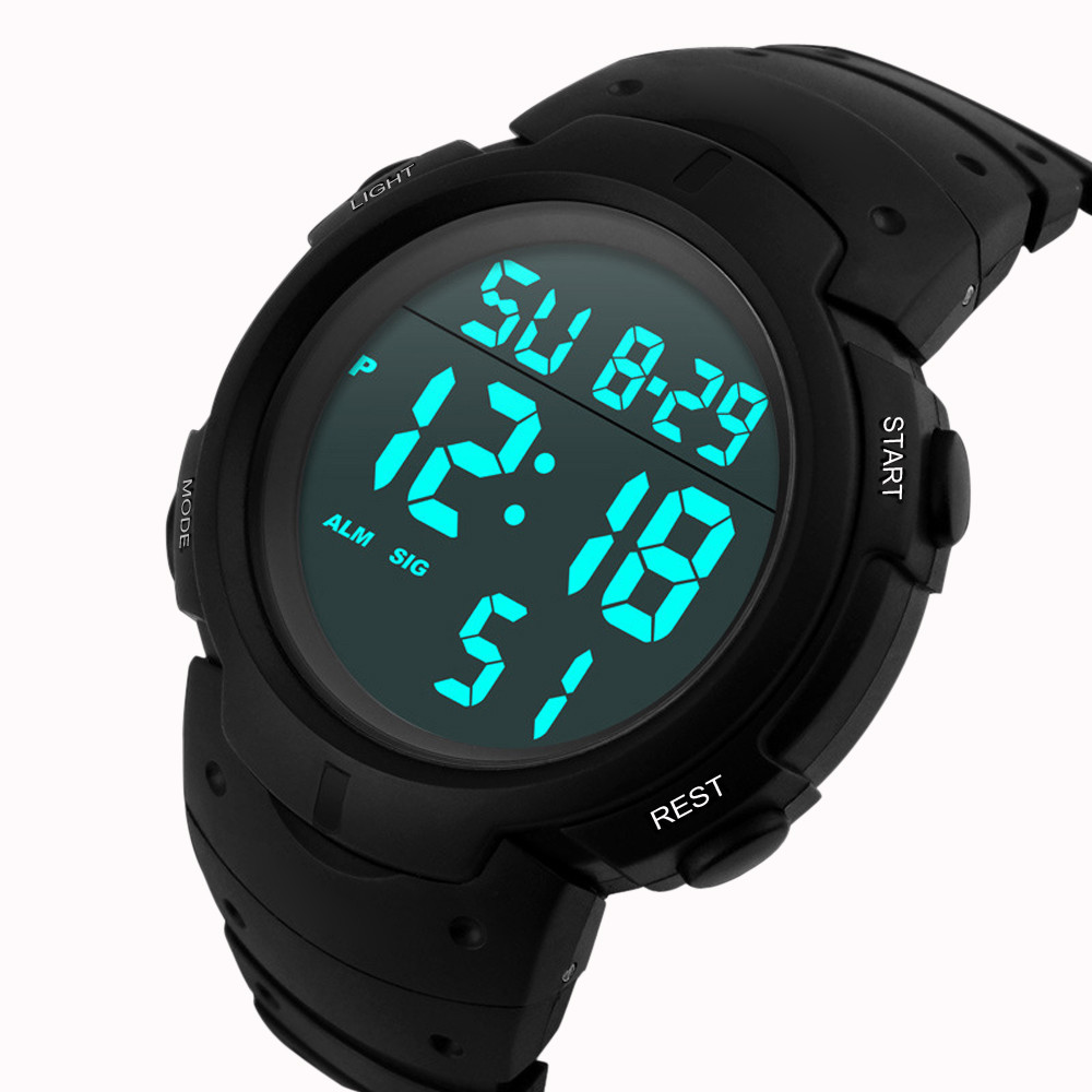 Модные водонепроницаемые мужские спортивные наручные часы для мальчиков с ЖК-дисплеем и цифровым секундомером