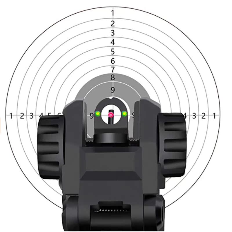 С видимой передней красной точкой зрения и задней зеленой точкой зрения обеспечивают самые яркие точки прицеливания в условиях низкий светильник.