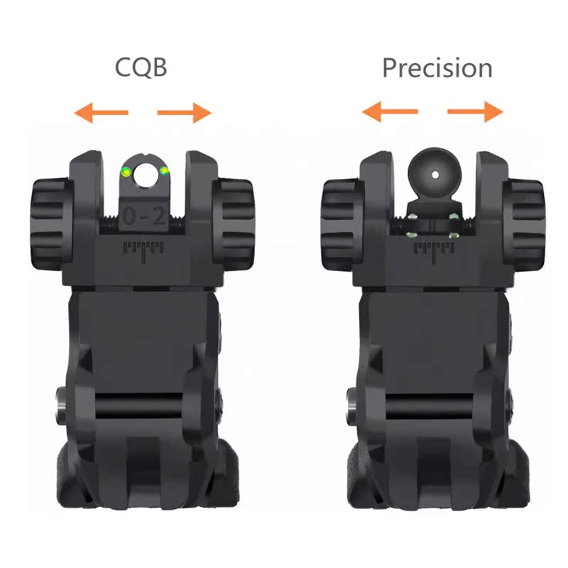 Двойной апертурный переключатель между CQB и точностью поставляется с опцией регулировки ветра.