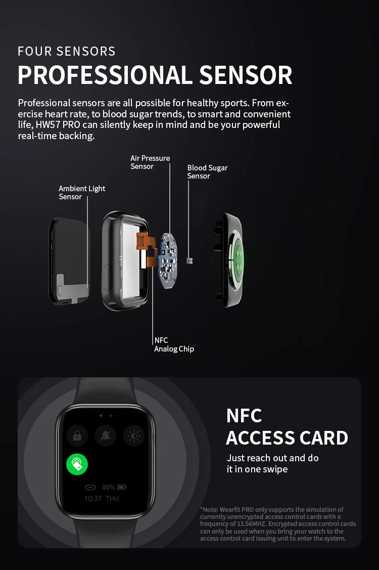 Все профессиональные датчики возможны для здорового спорта. От тренировки пульса, до трендов сахара в крови, до умной и удобной жизни, HW57 PRO может молча иметь в виду и быть вашей мощной поддержкой в реальном времени.