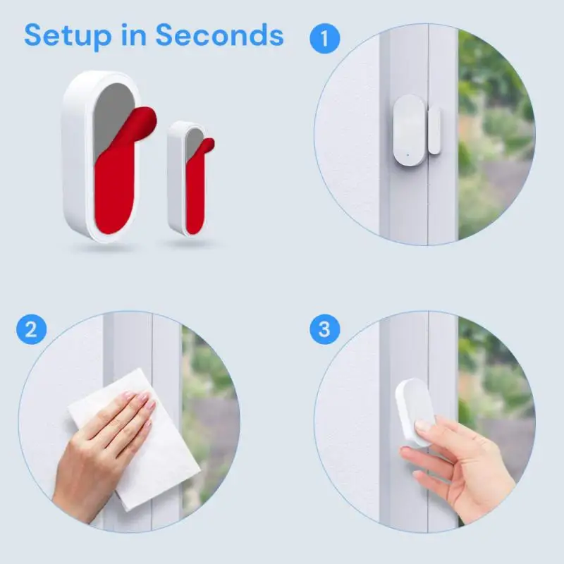5. Простая установка с двусторонней лентой, просто приклейте ее куда угодно, чтобы защитить безопасность вашего дома. Сделайте интеллектуальную связь с другими смарт-устройствами для достижения комплексной идеи интеллекта