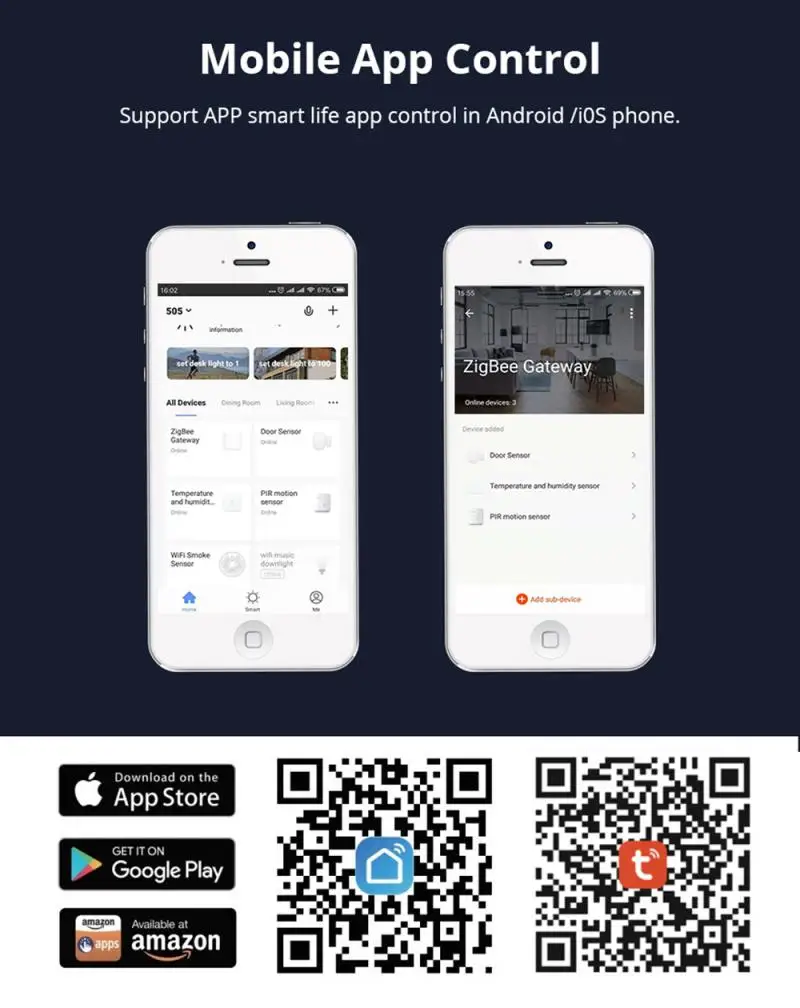 1. Умный датчик двери и окна Tuya ZigBee: беспроводной шлюз Tuya ZigBee должен работать с датчиком двери и окна, а также с различными интеллектуальными продуктами ZigBee, Который оказался центром управления мостами для умных домов и играет незаменимую роль для всех продуктов ZigBee и реализует всю интеллектуальную связь вашего дома. Просто добавьте датчик в концентратор ZigBee после добавления концентратора в приложение Smart Life/Tuya.