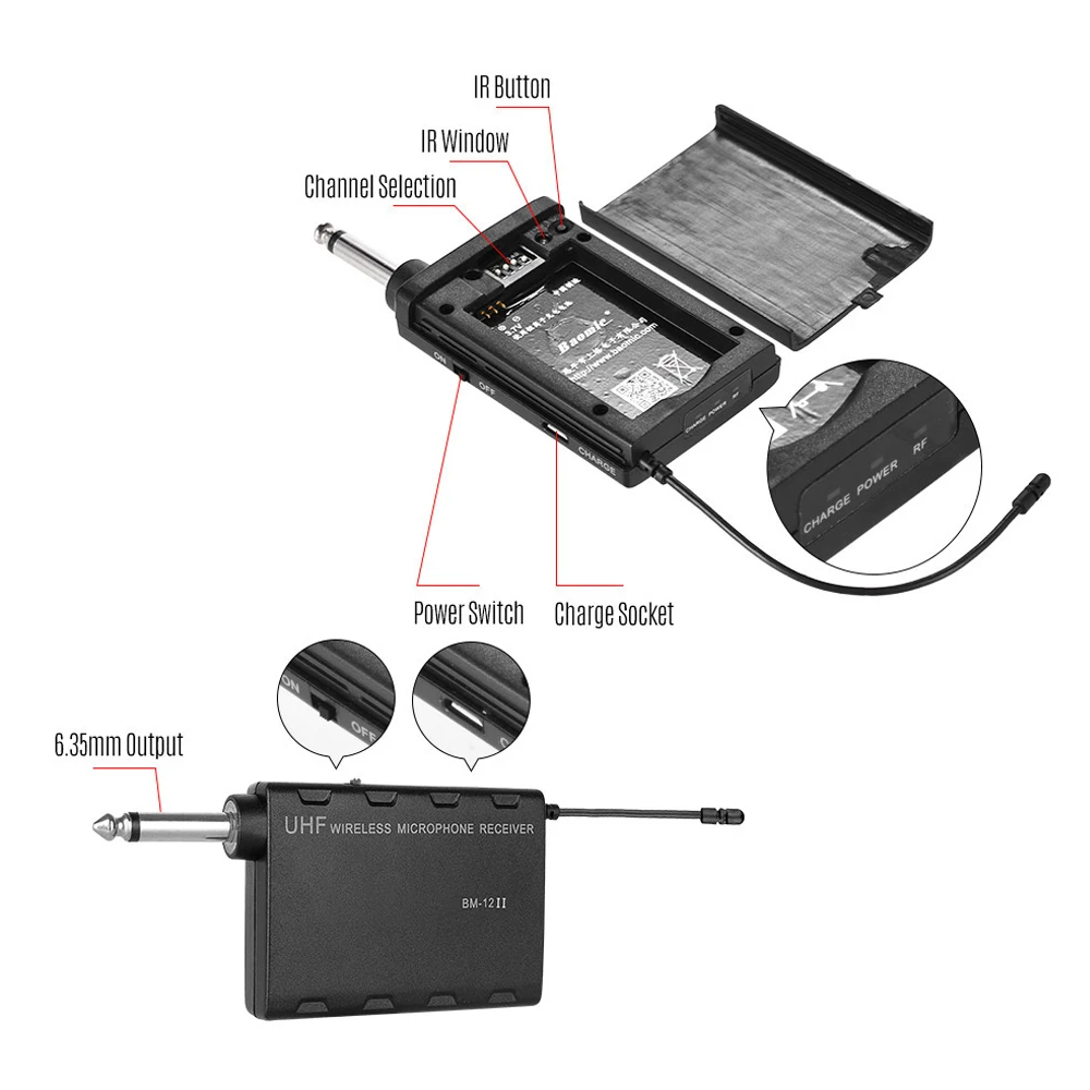 Профессиональная Беспроводная микрофонная система UHF специально разработана для саксофона и других духовых инструментов. Он простой в использовании, перезаряжаемый, со стабильной производительностью и превосходным качеством, подходит как для домашнего, так и для сценического использования.