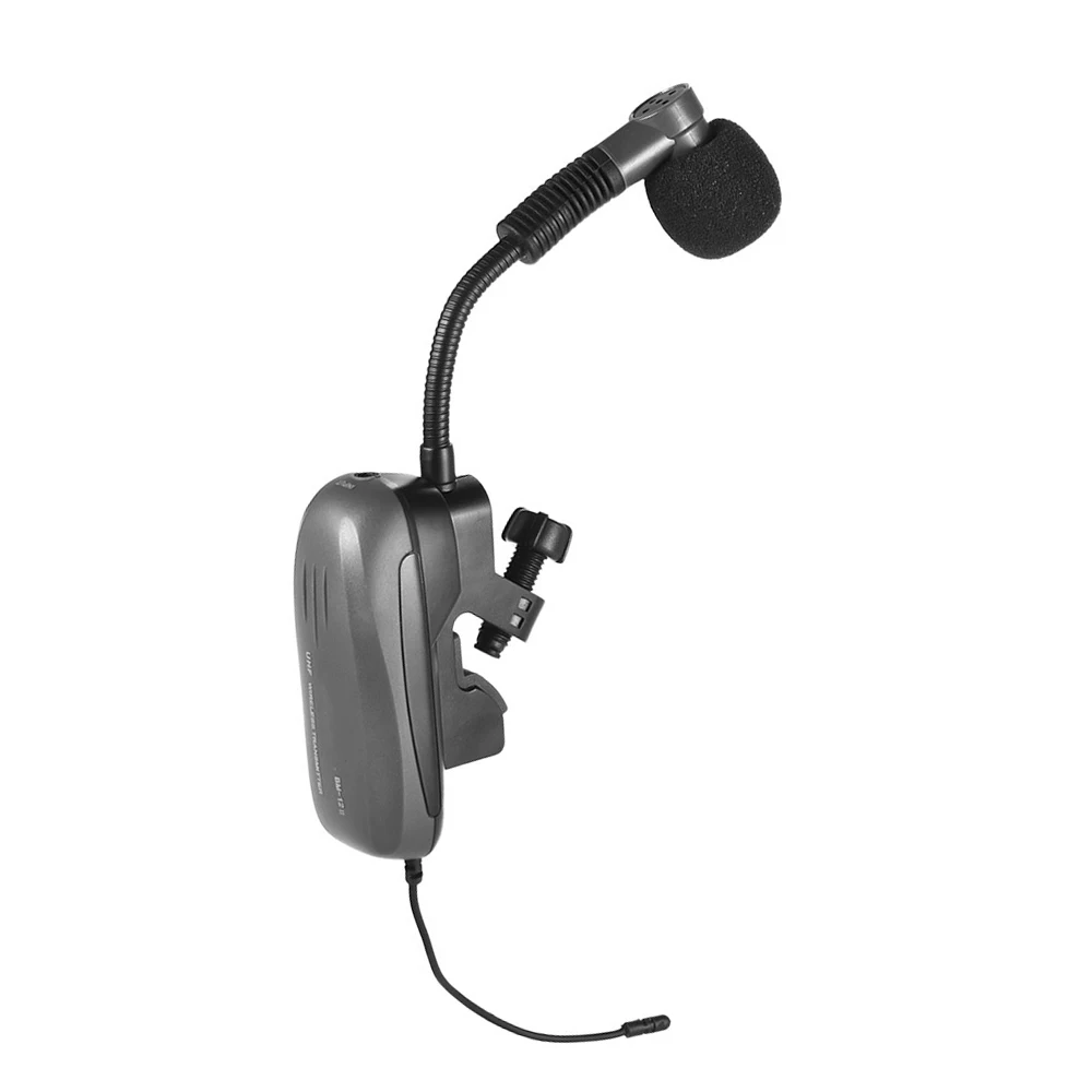 Профессиональный приемник и передатчик беспроводной системы с микрофоном специально разработан для саксофона, а также для других духовых инструментов, если размер клипа доступен.