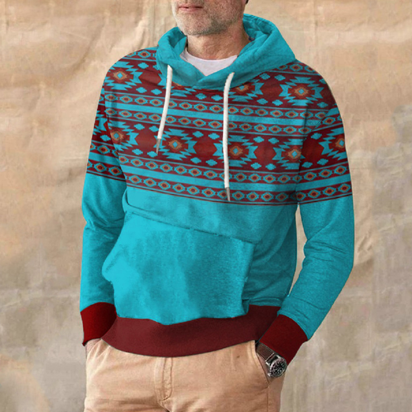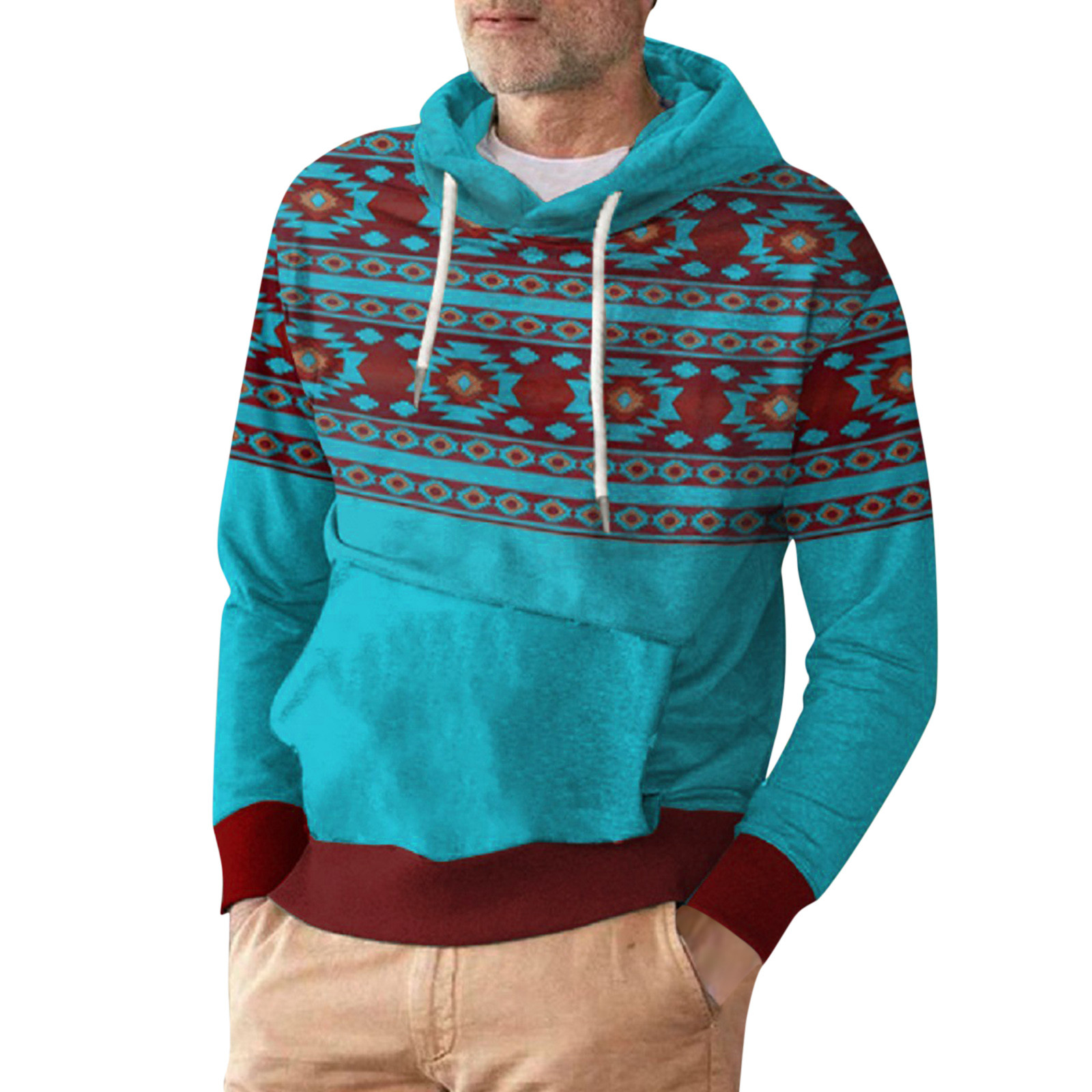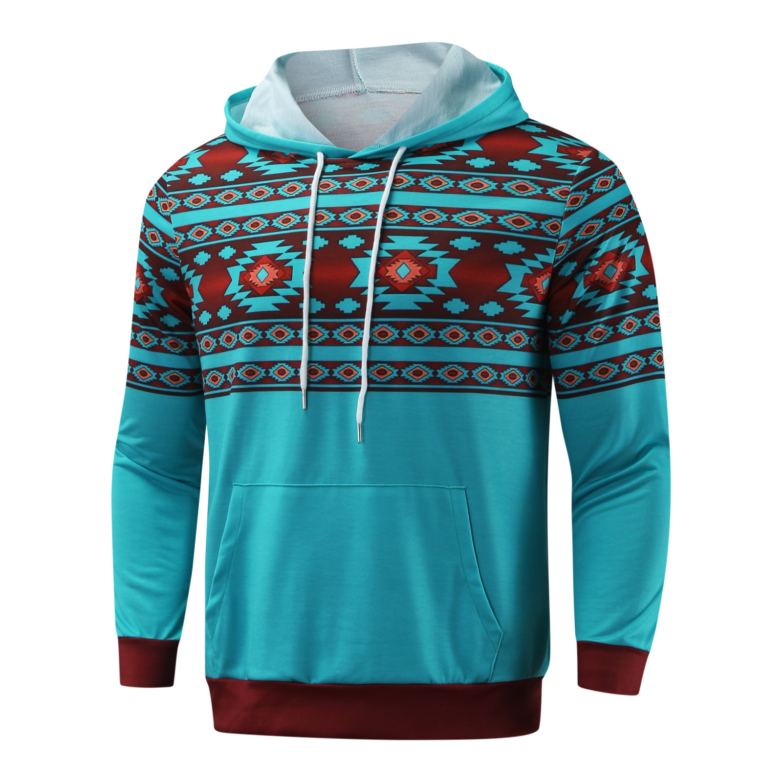 Мужские повседневные топы с геометрическим принтом с капюшоном, толстовки с длинным рукавом, блузка